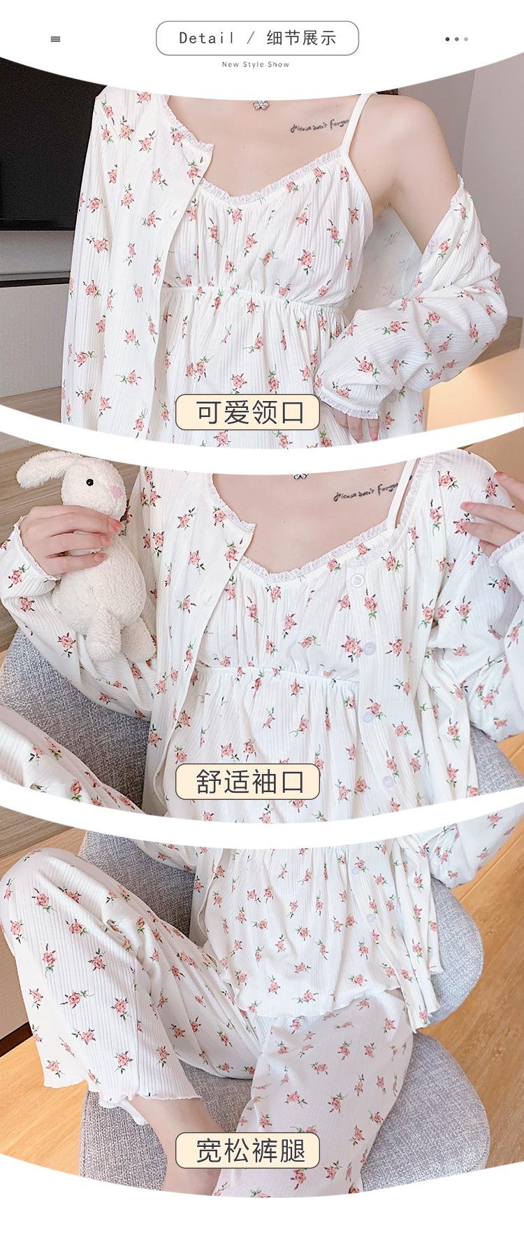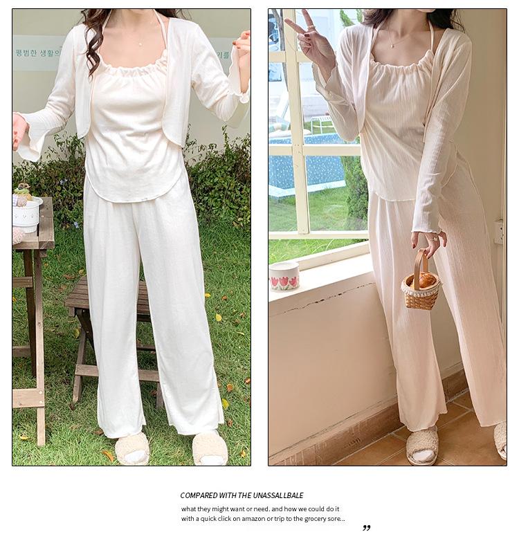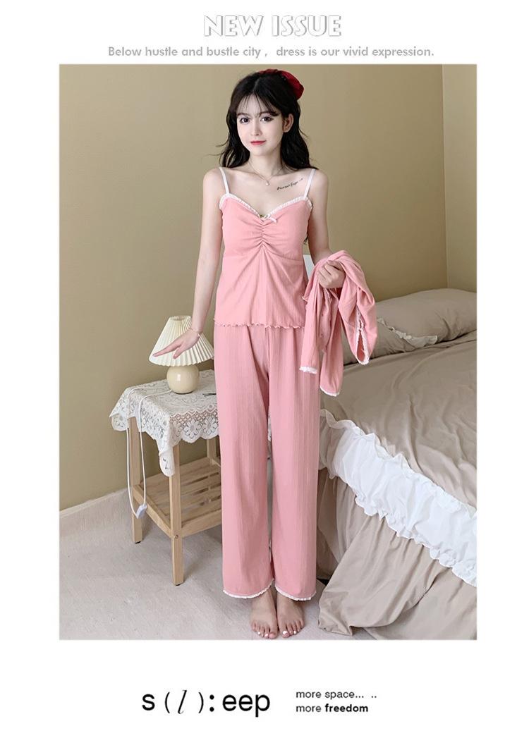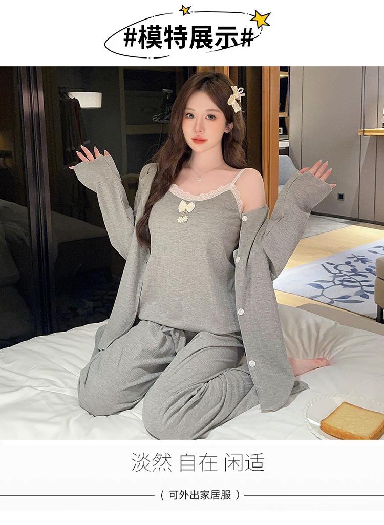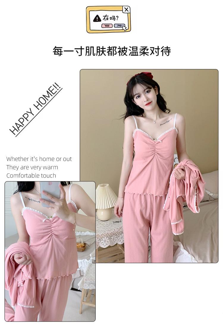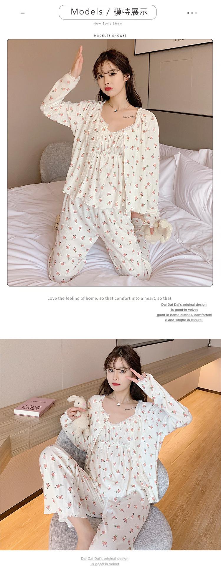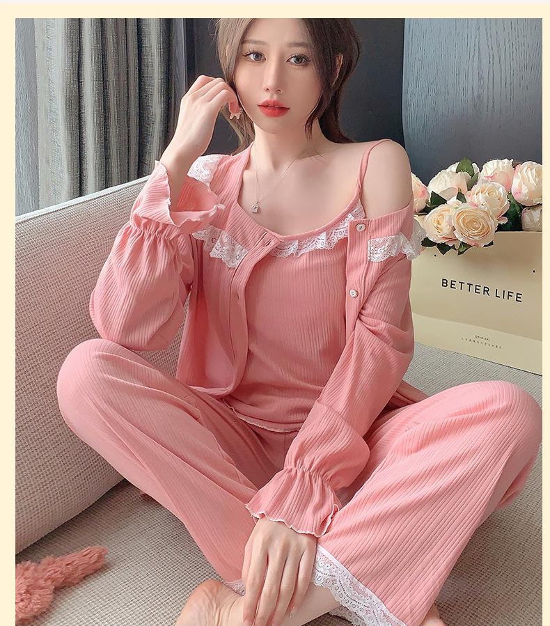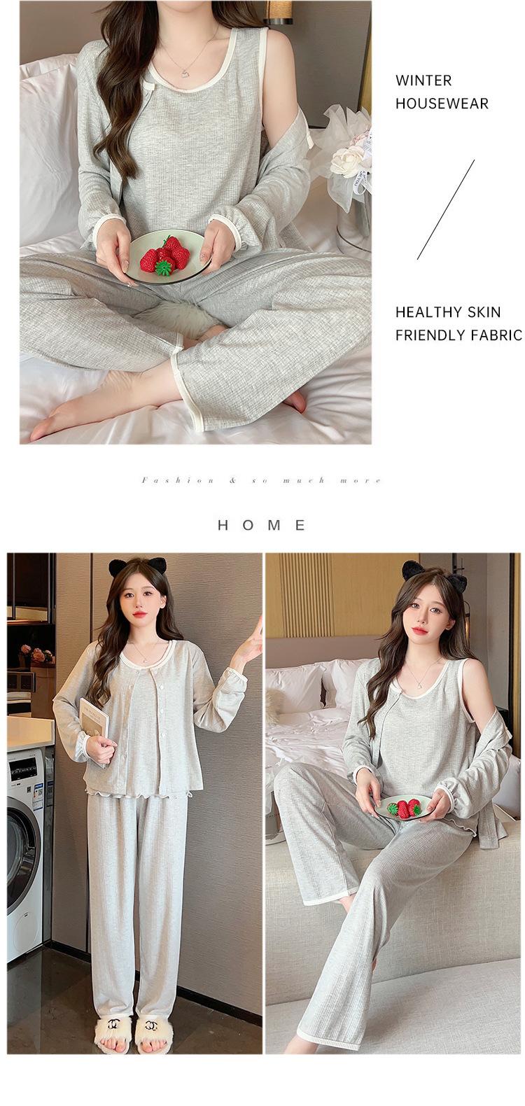Conjunto nuevo de tres piezas para primavera y verano 2025 6535 Algodón con chaleco desmontable con almohadilla en el pecho + mangas largas + pantalones Pijama de mujer