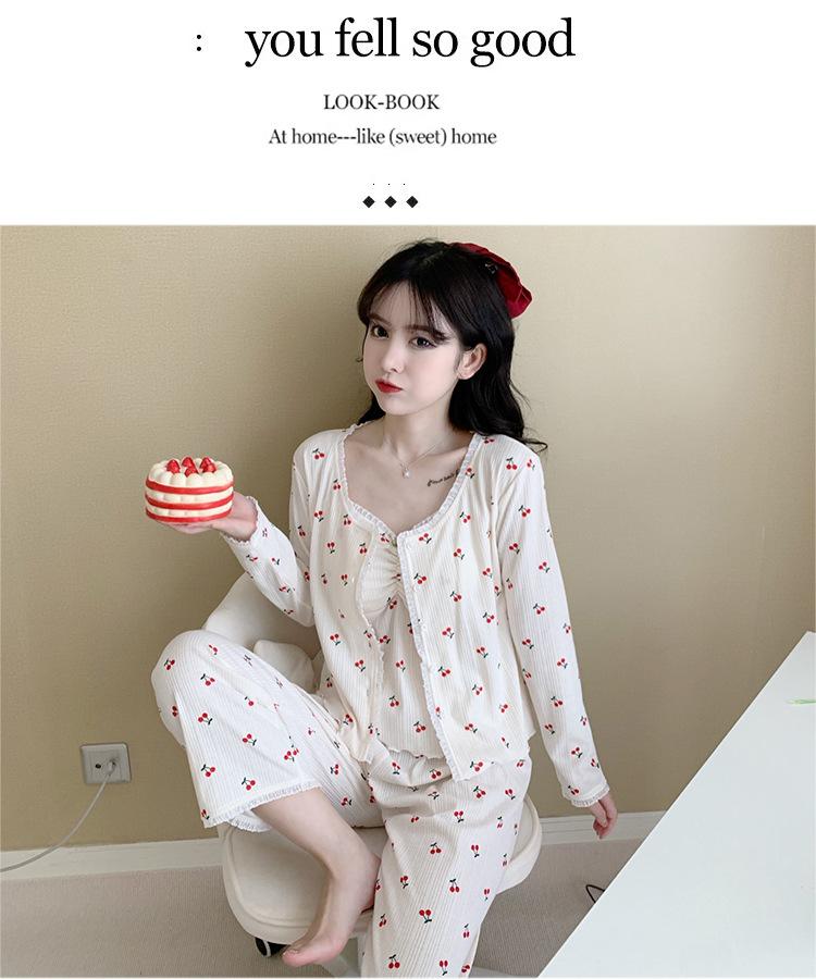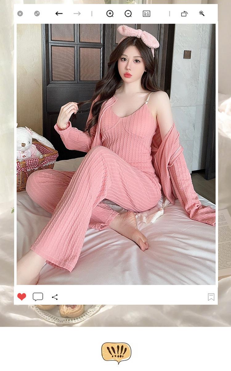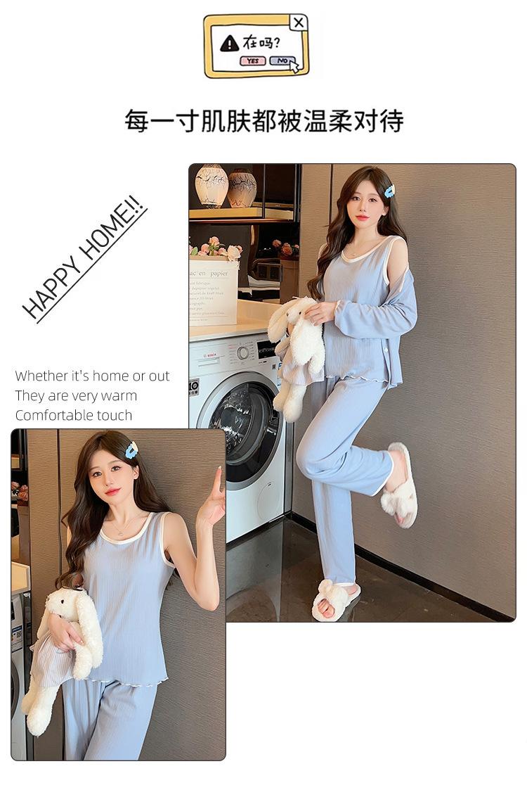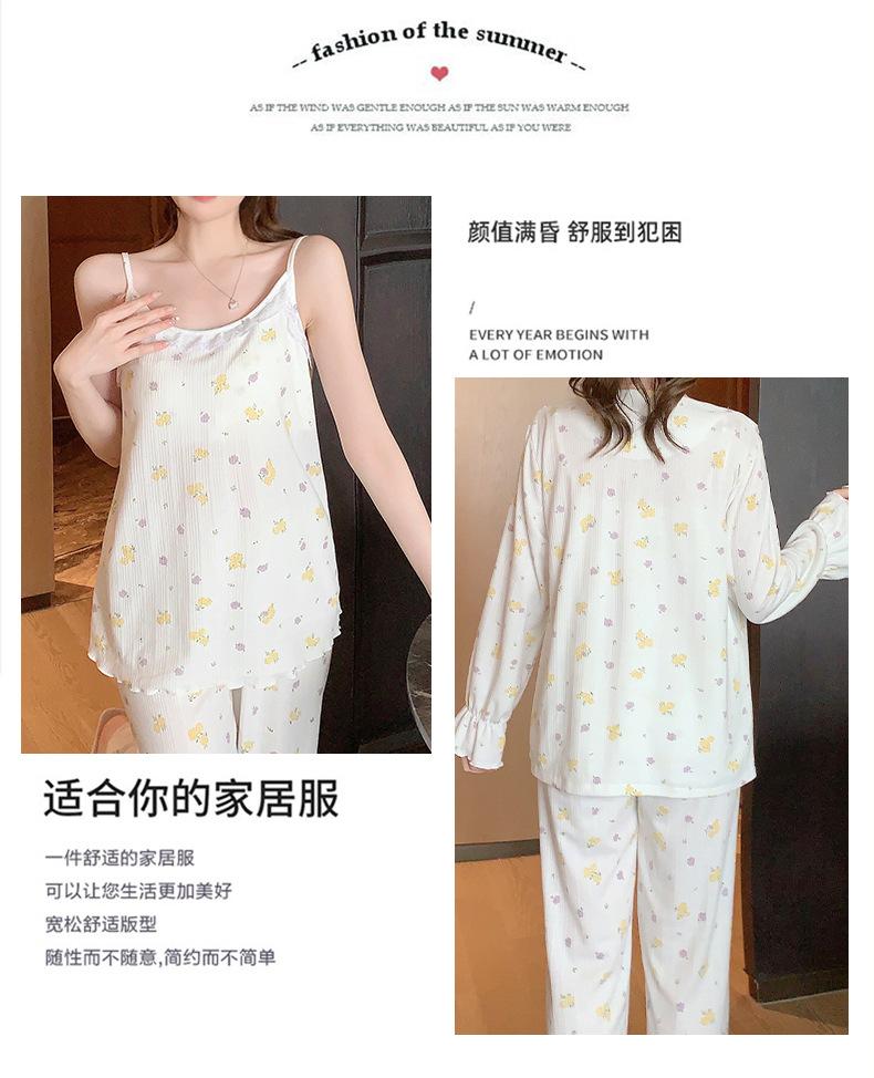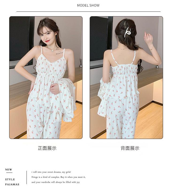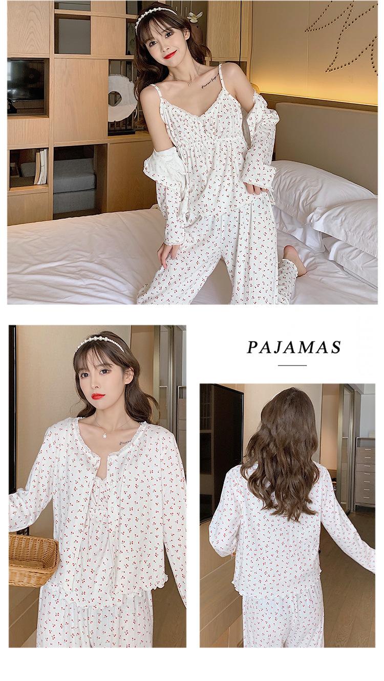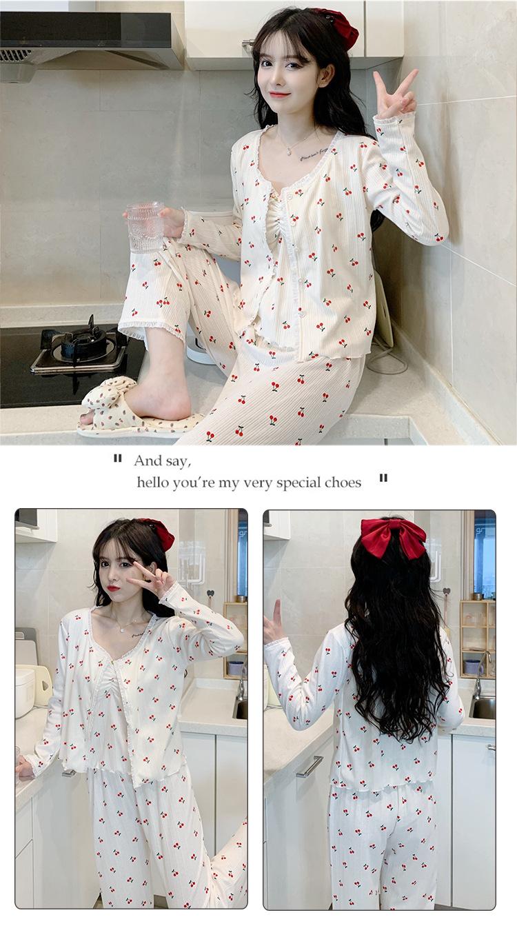 Conjunto nuevo de tres piezas para primavera y verano 2025 6535 Algodón con chaleco desmontable con almohadilla en el pecho + mangas largas + pantalones Pijama de mujer
