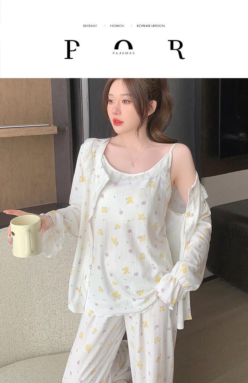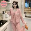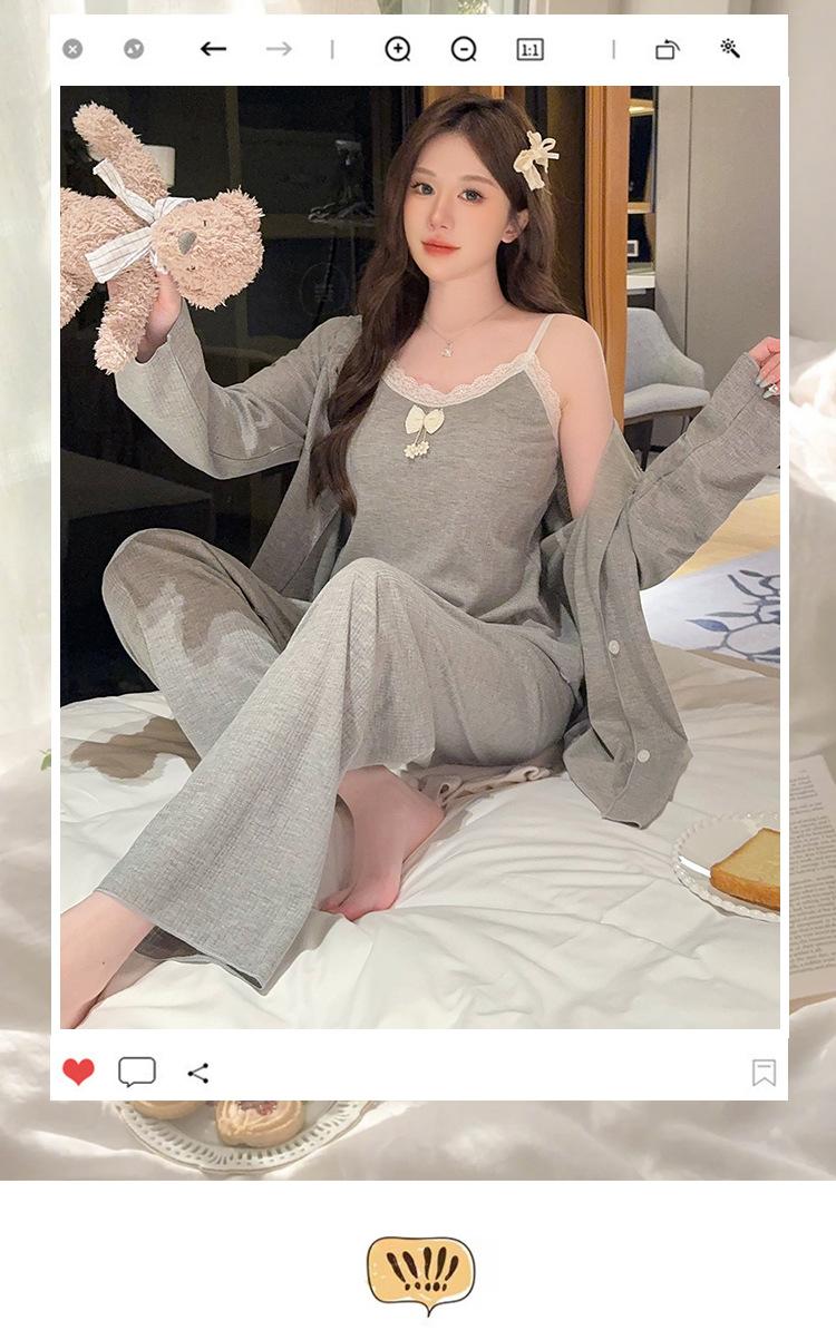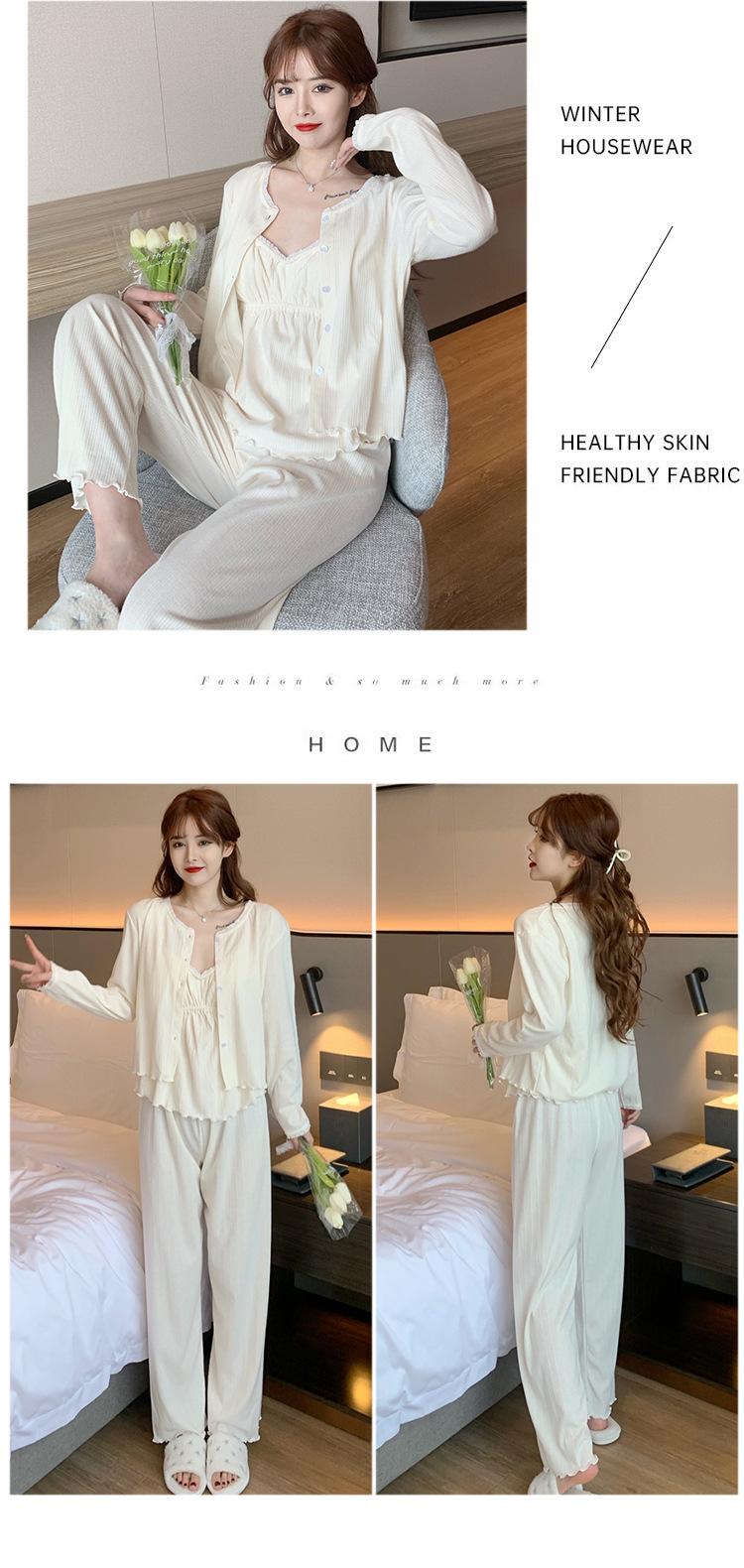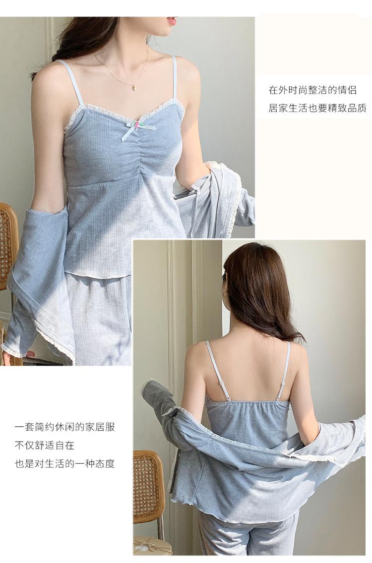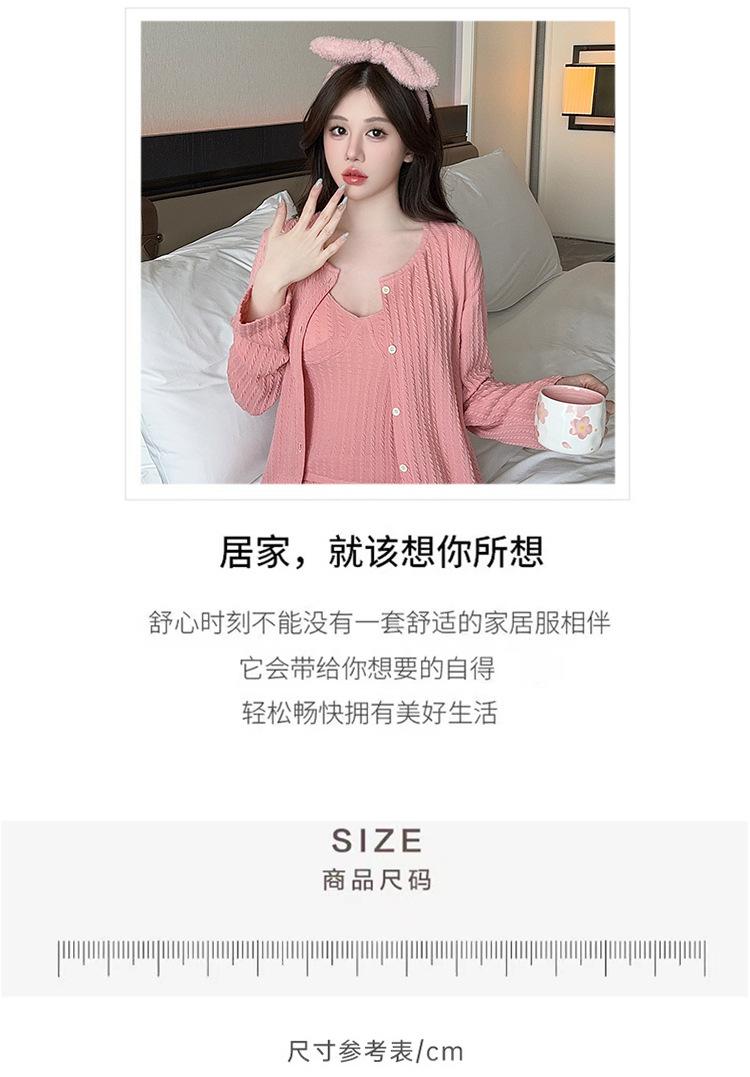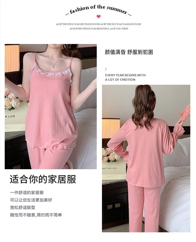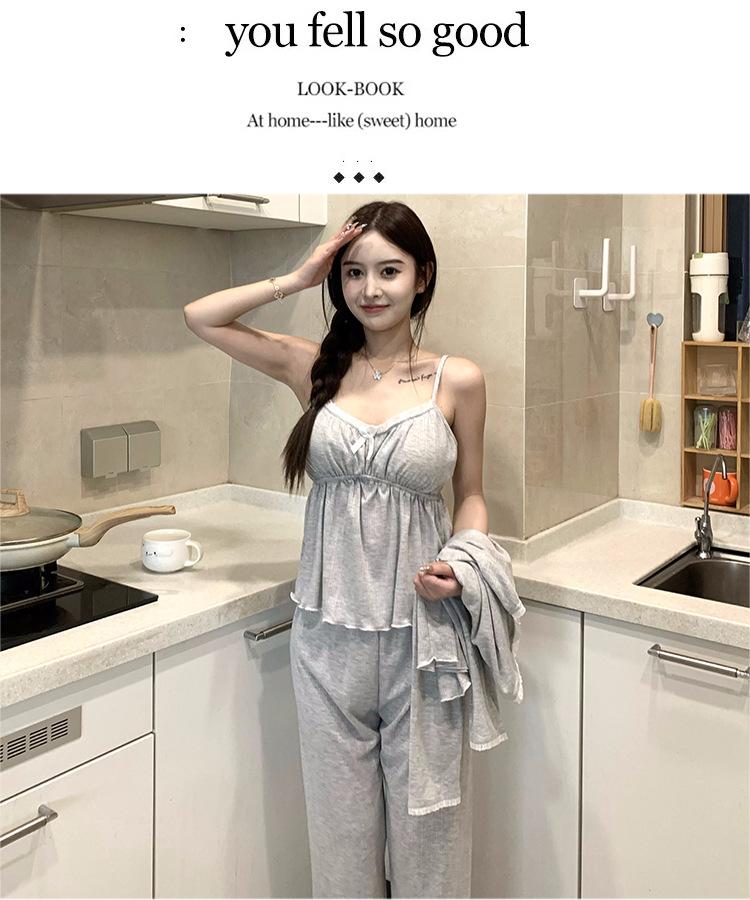 Conjunto nuevo de tres piezas para primavera y verano 2025 6535 Algodón con chaleco desmontable con almohadilla en el pecho + mangas largas + pantalones Pijama de mujer