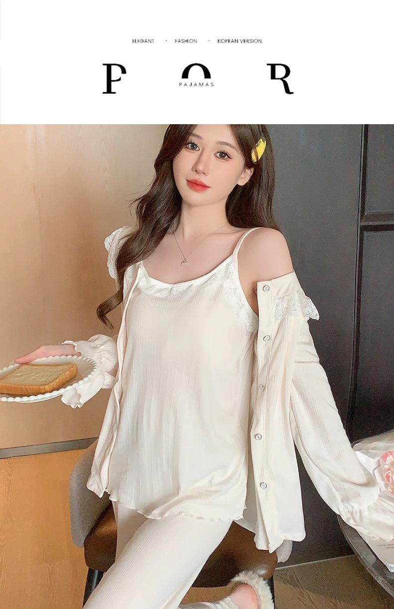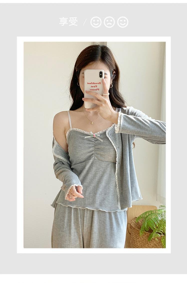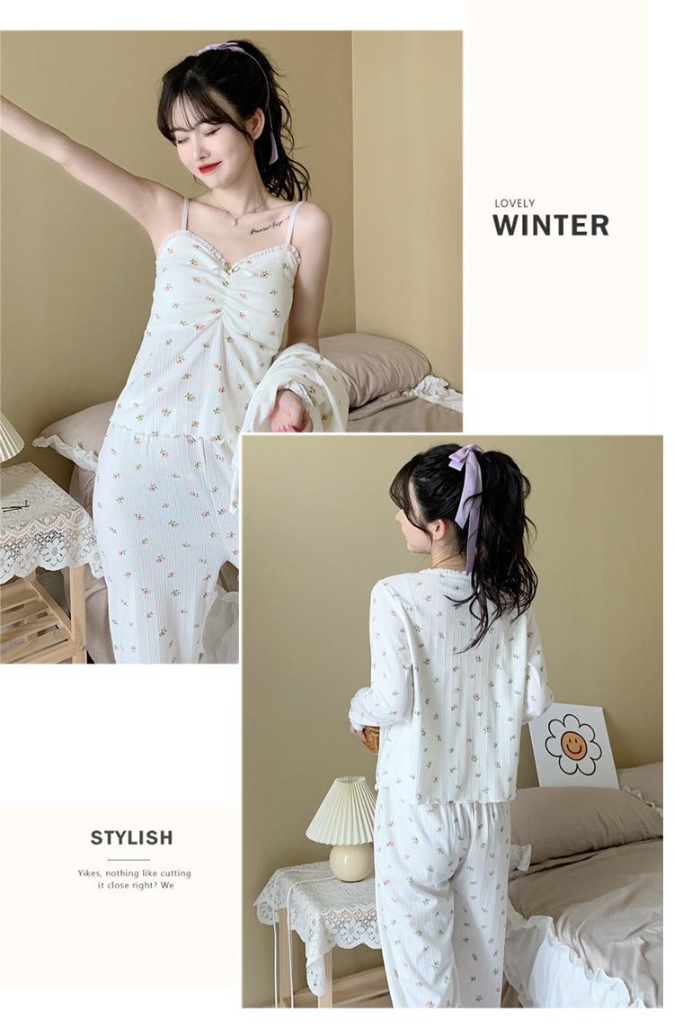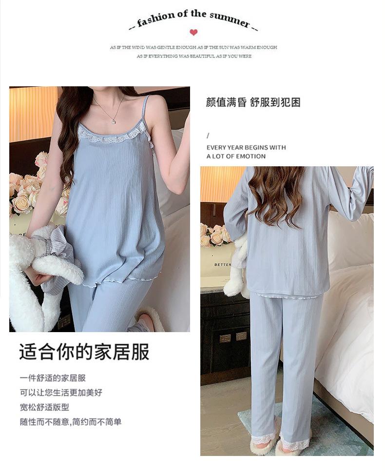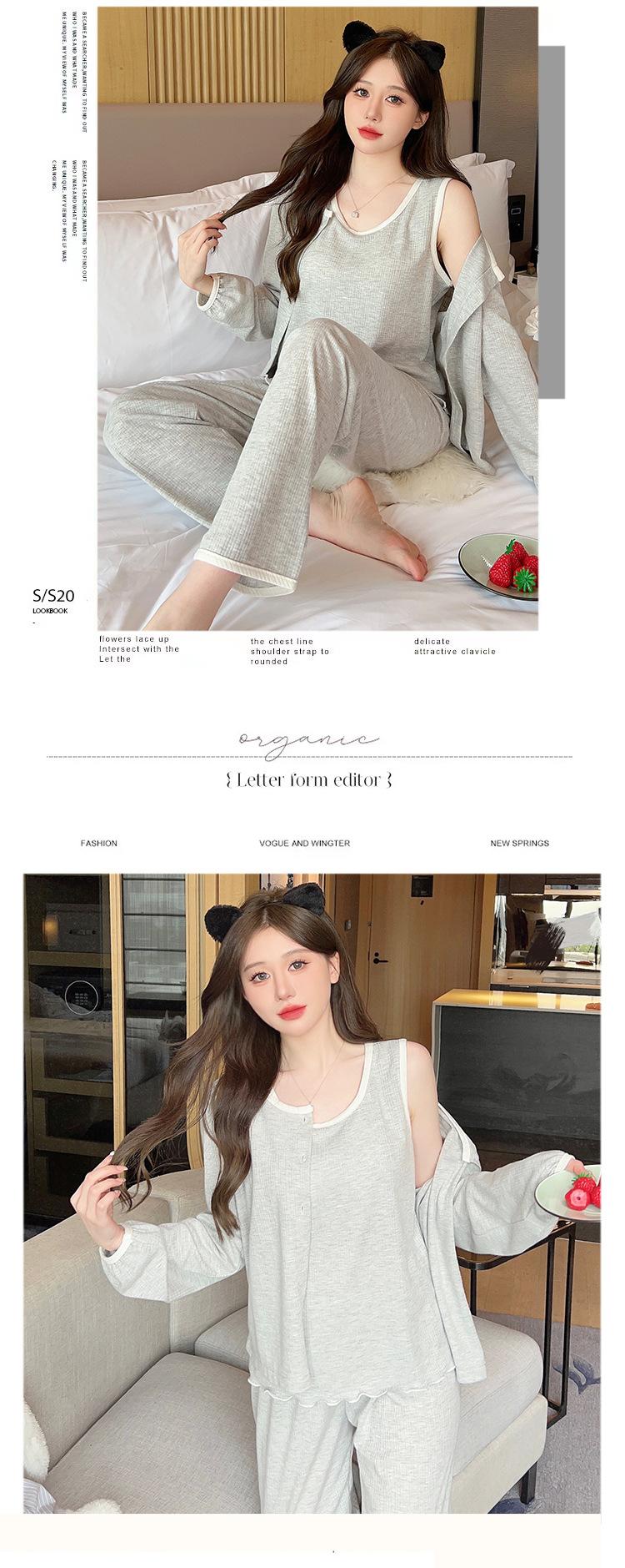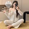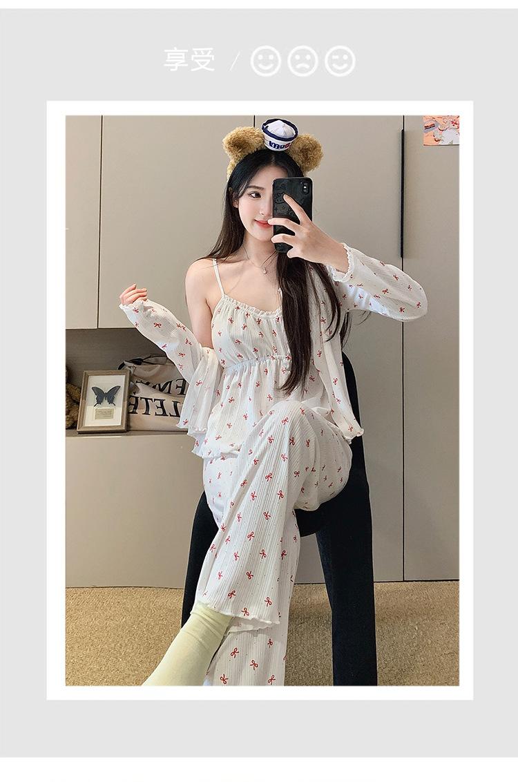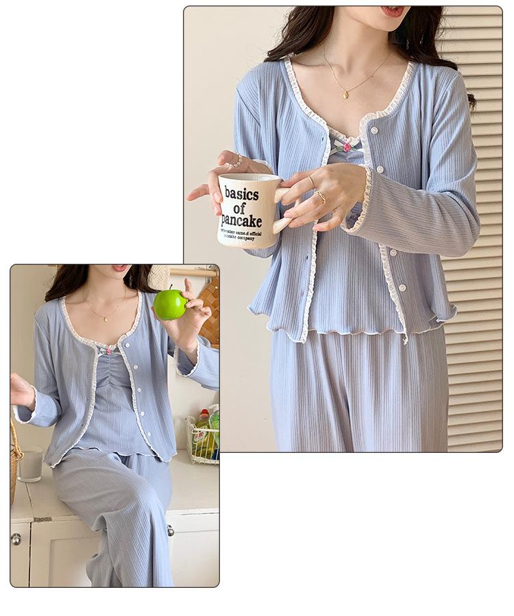 Conjunto nuevo de tres piezas para primavera y verano 2025 6535 Algodón con chaleco desmontable con almohadilla en el pecho + mangas largas + pantalones Pijama de mujer