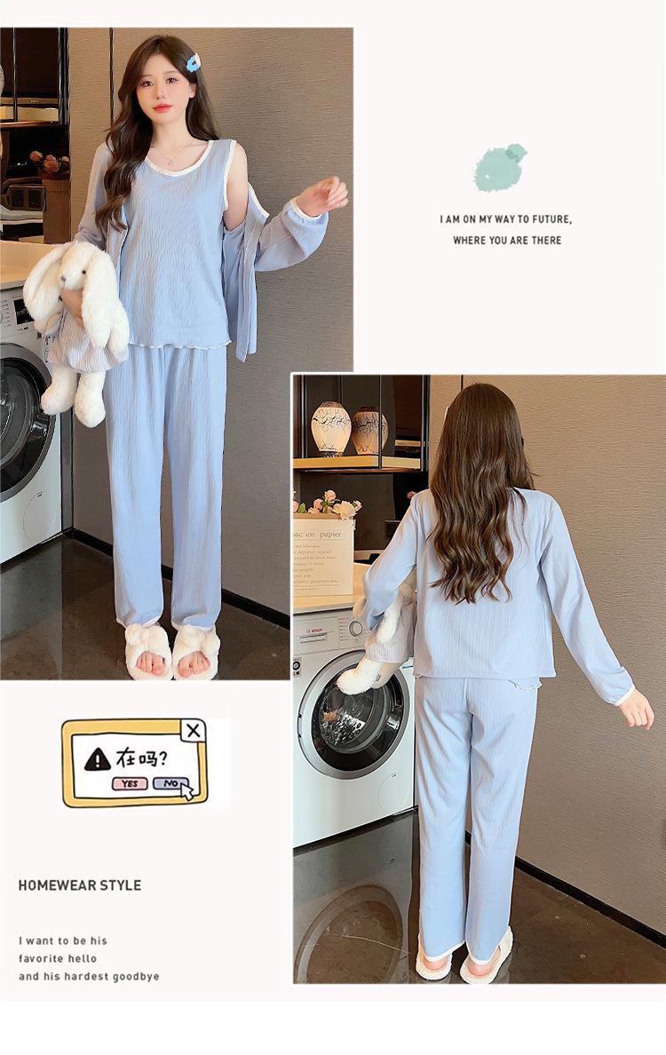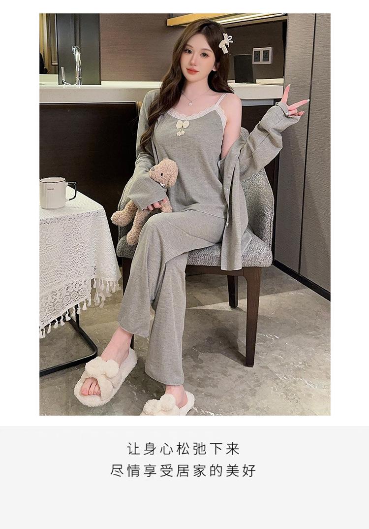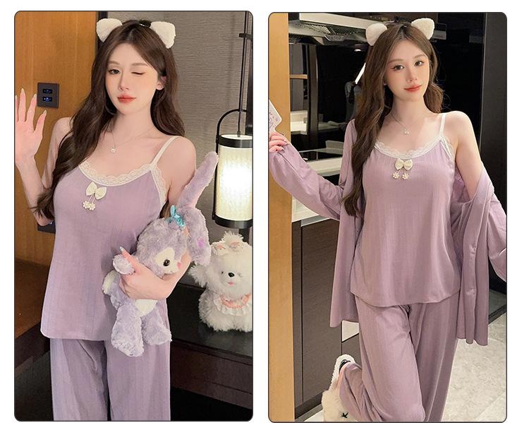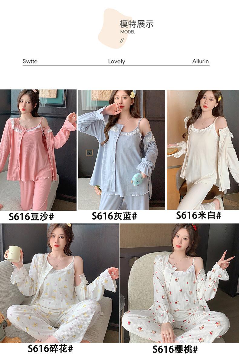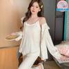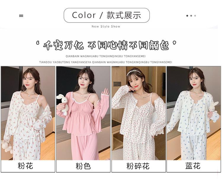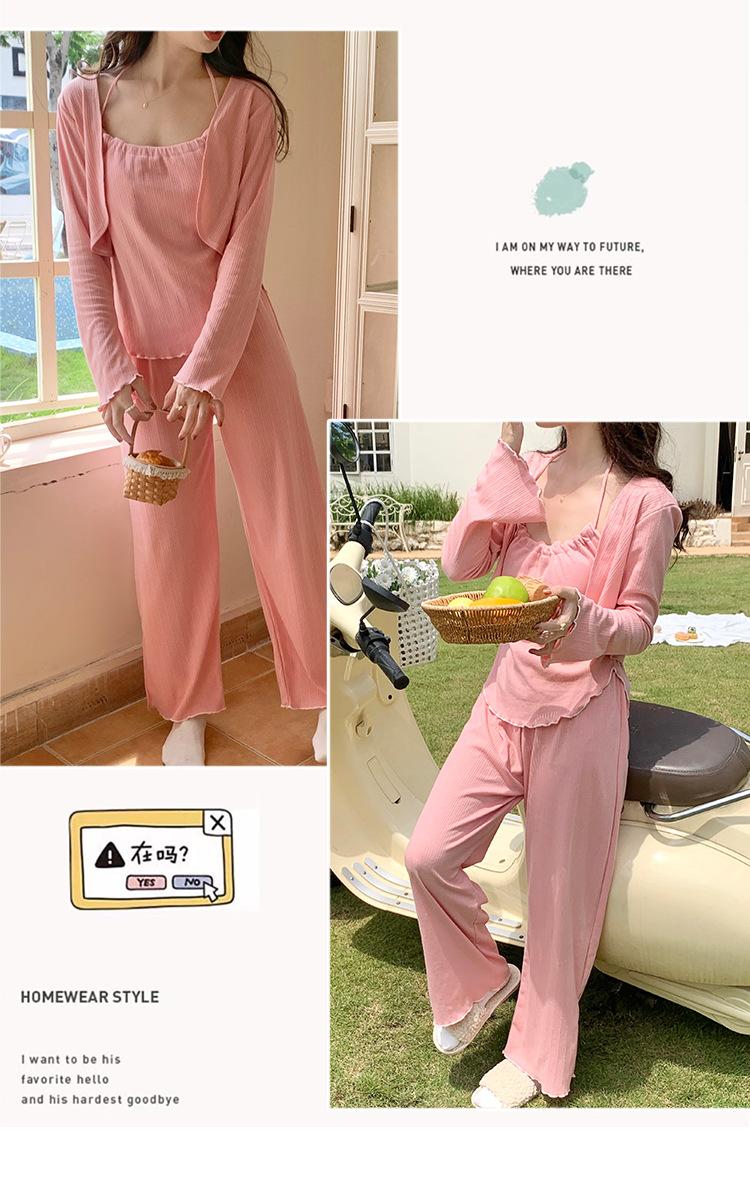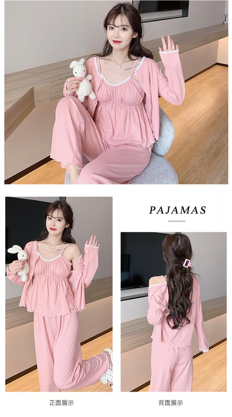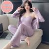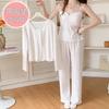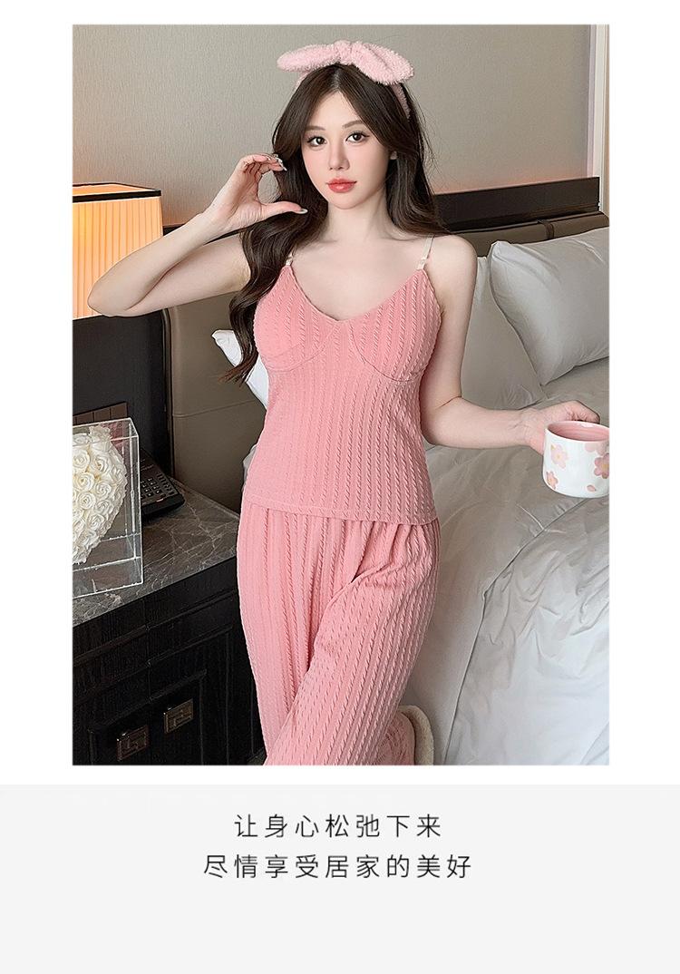 Conjunto nuevo de tres piezas para primavera y verano 2025 6535 Algodón con chaleco desmontable con almohadilla en el pecho + mangas largas + pantalones Pijama de mujer