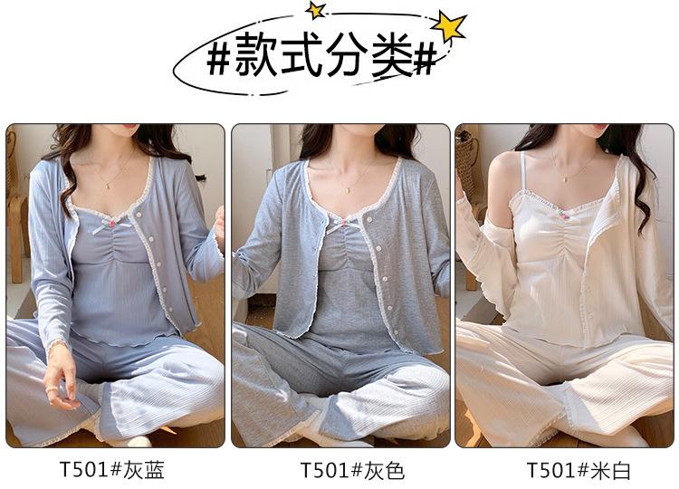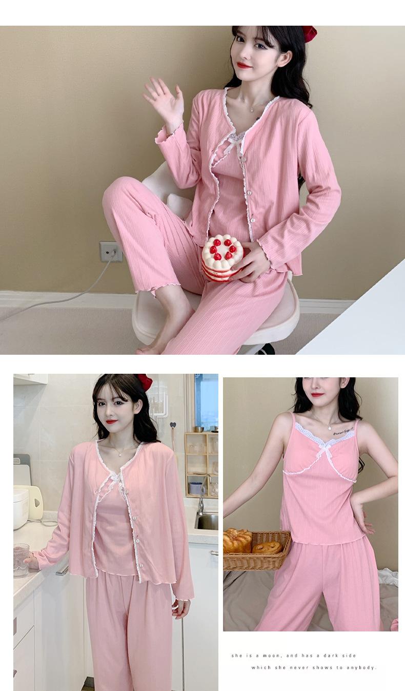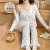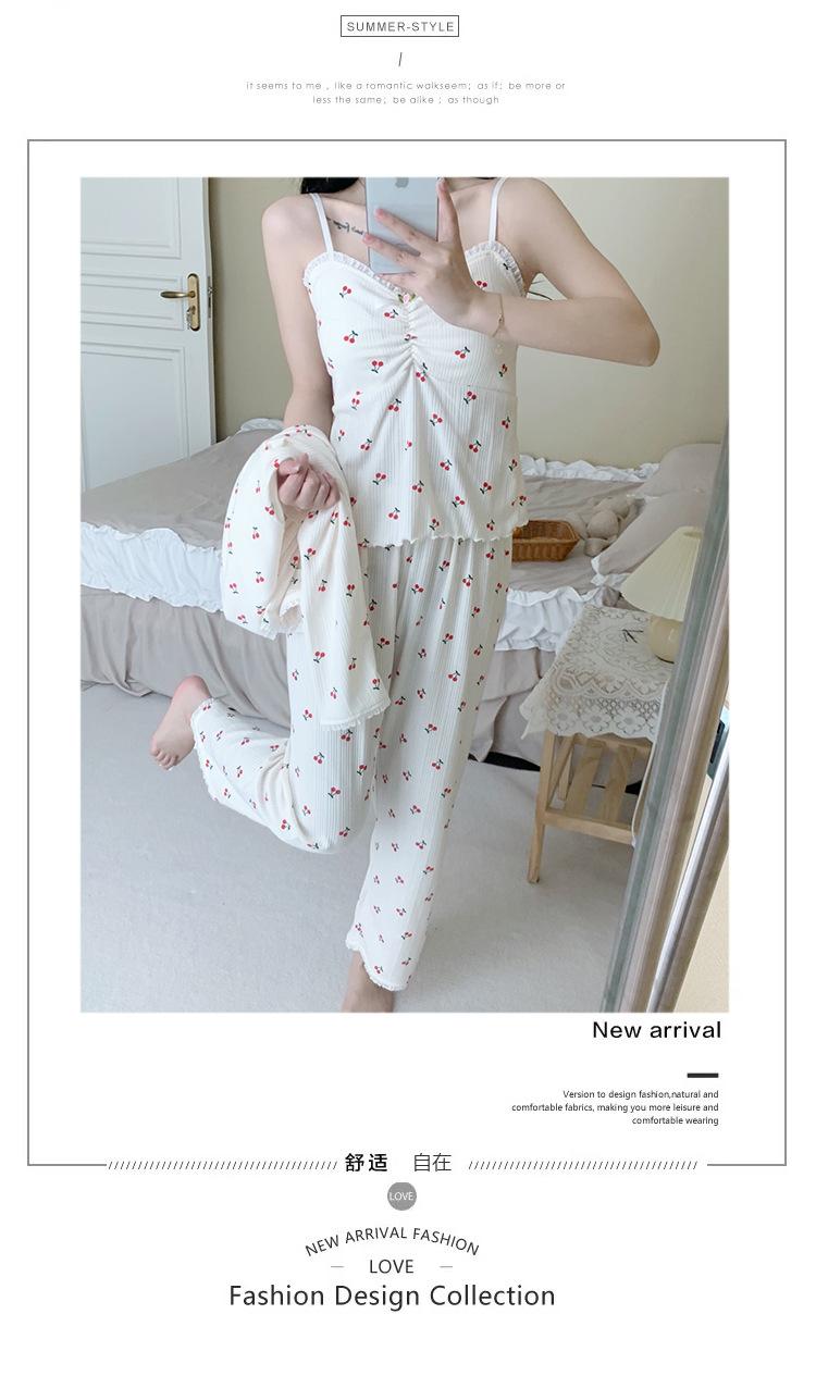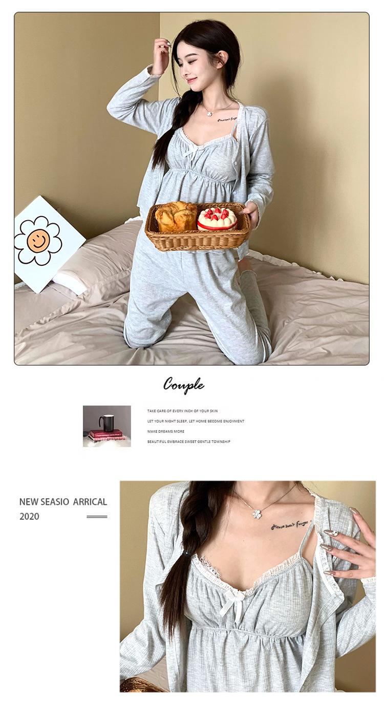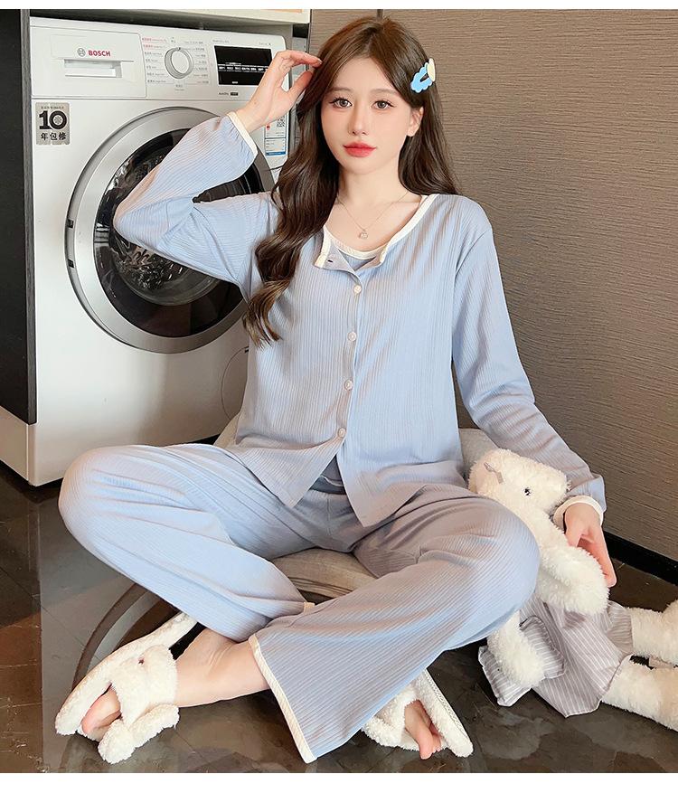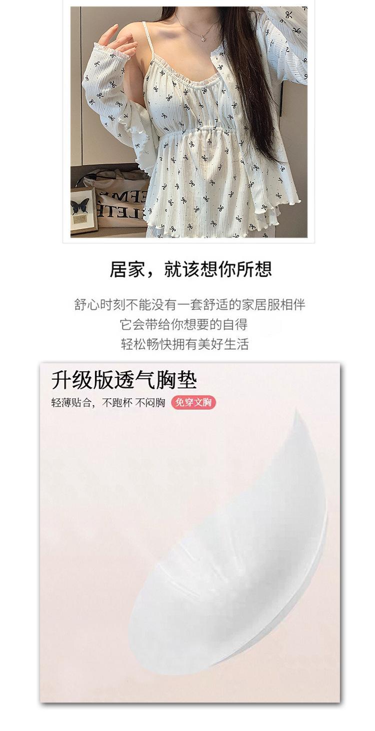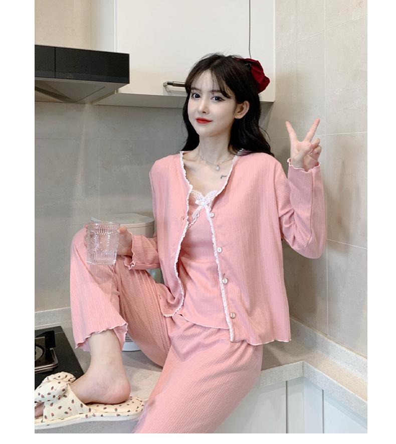 Conjunto nuevo de tres piezas para primavera y verano 2025 6535 Algodón con chaleco desmontable con almohadilla en el pecho + mangas largas + pantalones Pijama de mujer