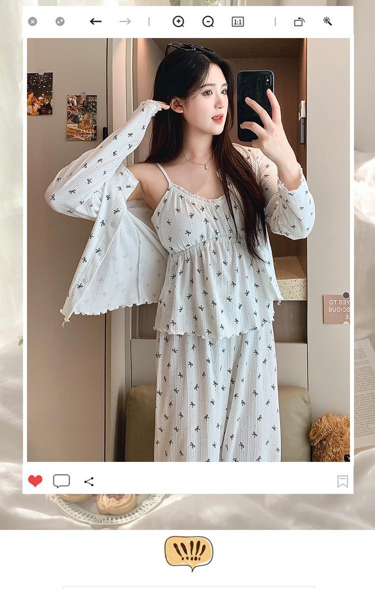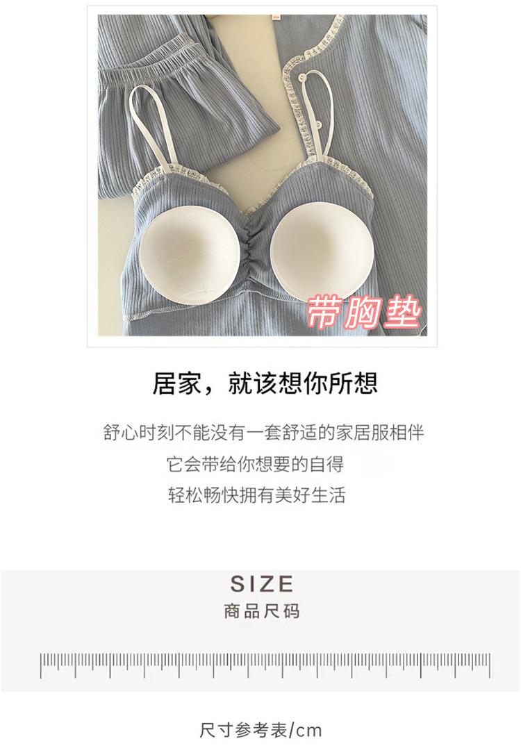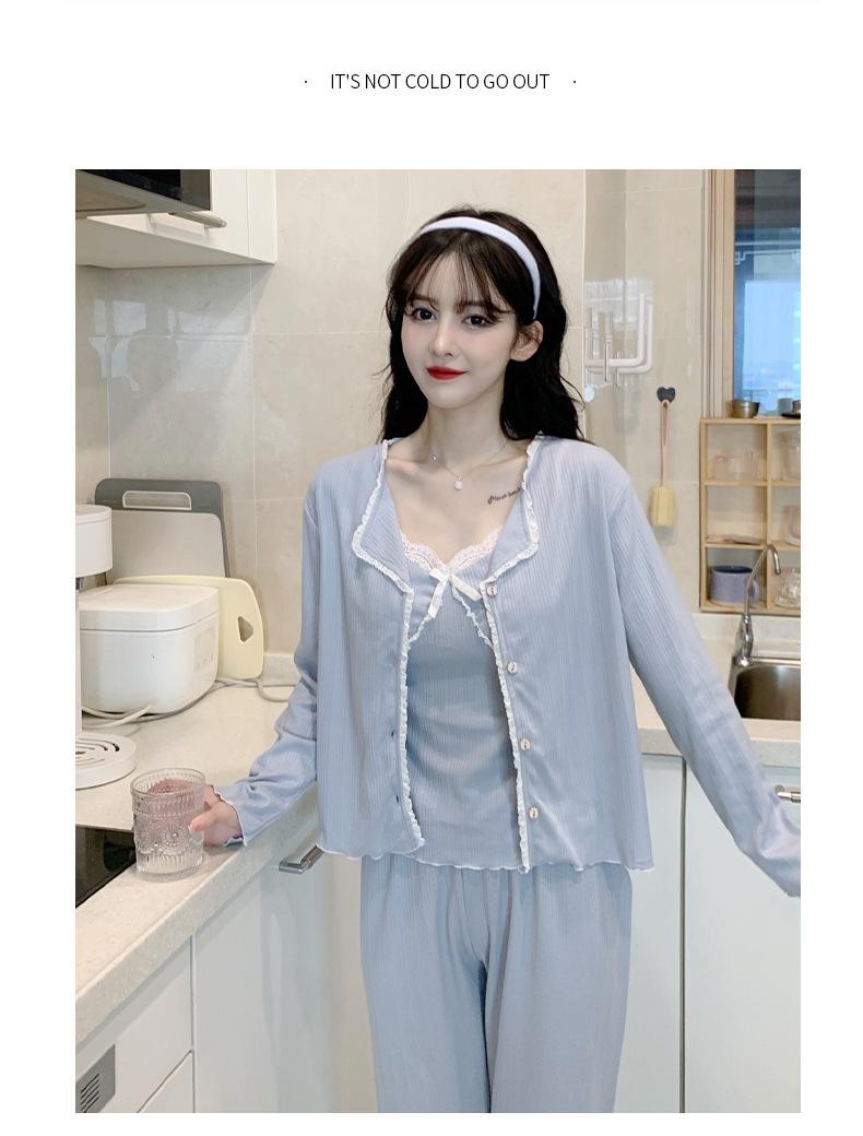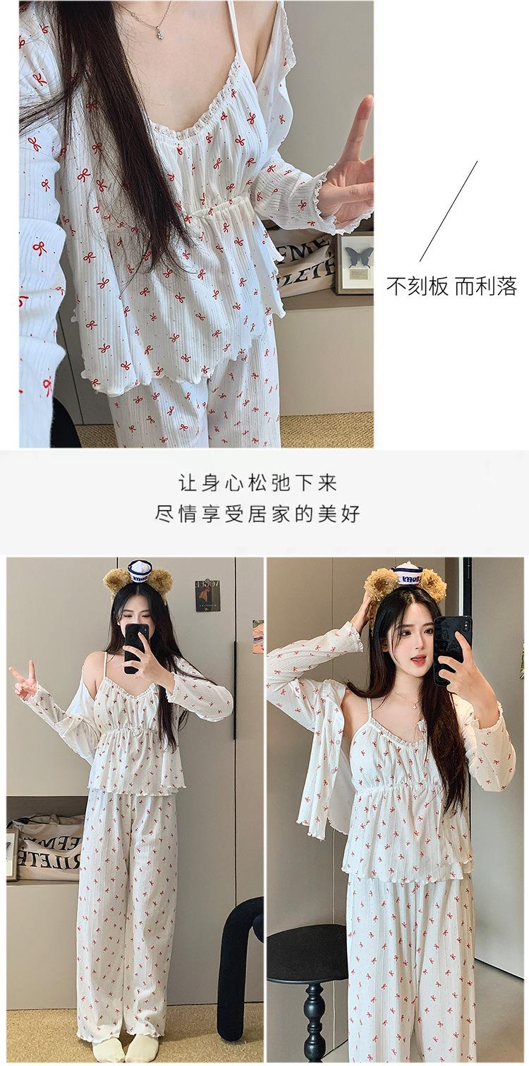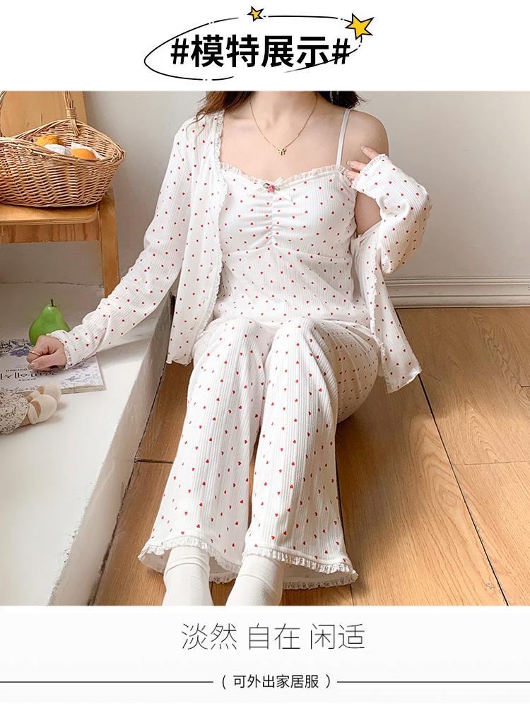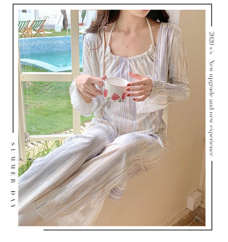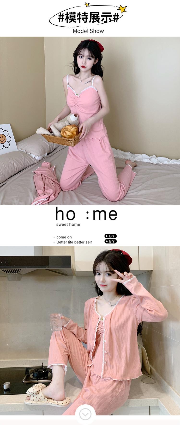 Conjunto nuevo de tres piezas para primavera y verano 2025 6535 Algodón con chaleco desmontable con almohadilla en el pecho + mangas largas + pantalones Pijama de mujer