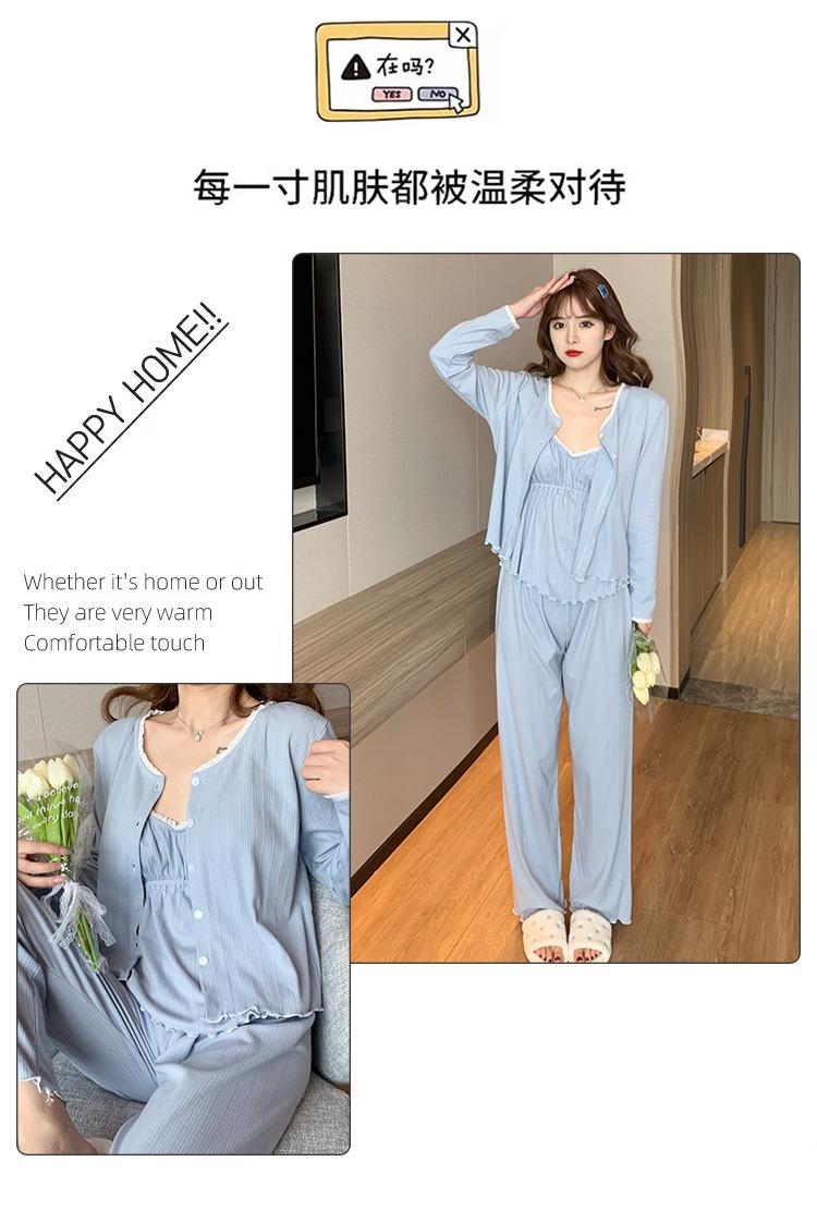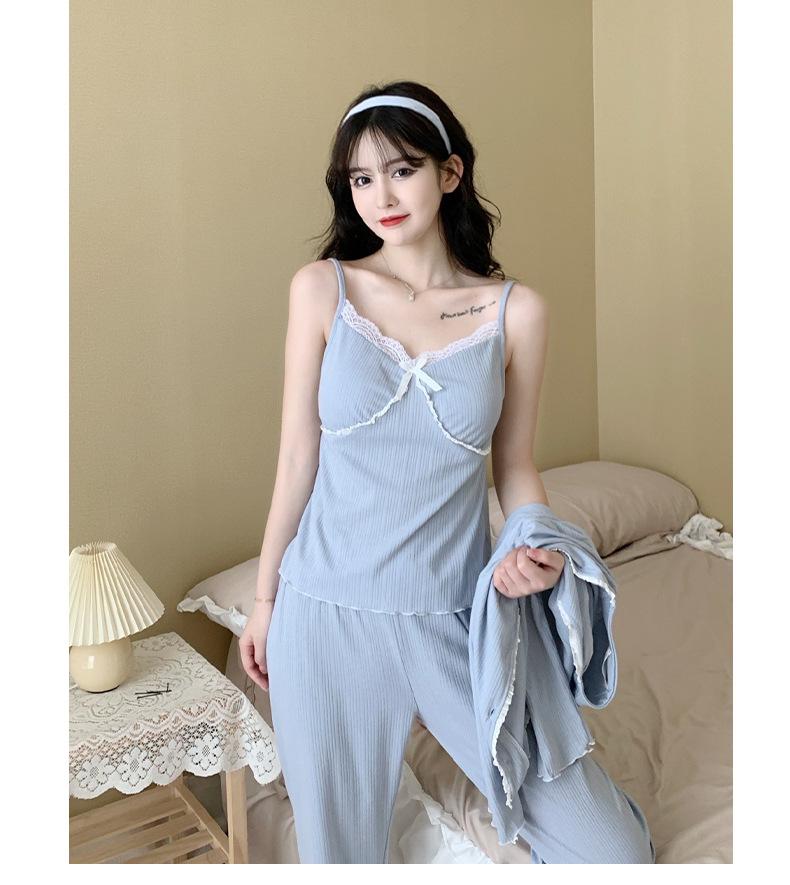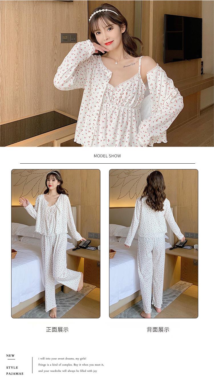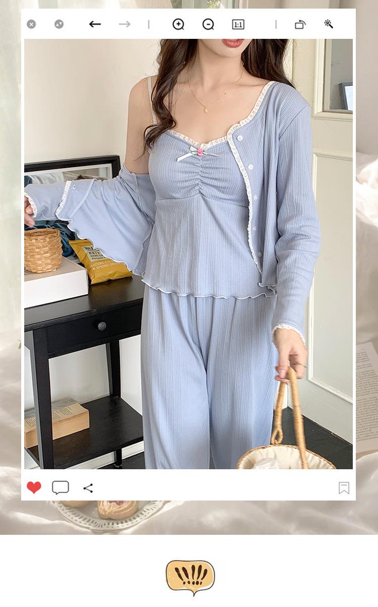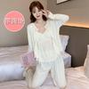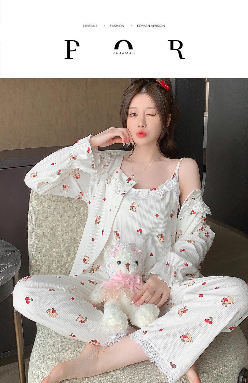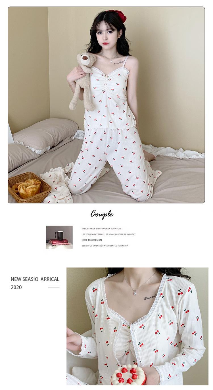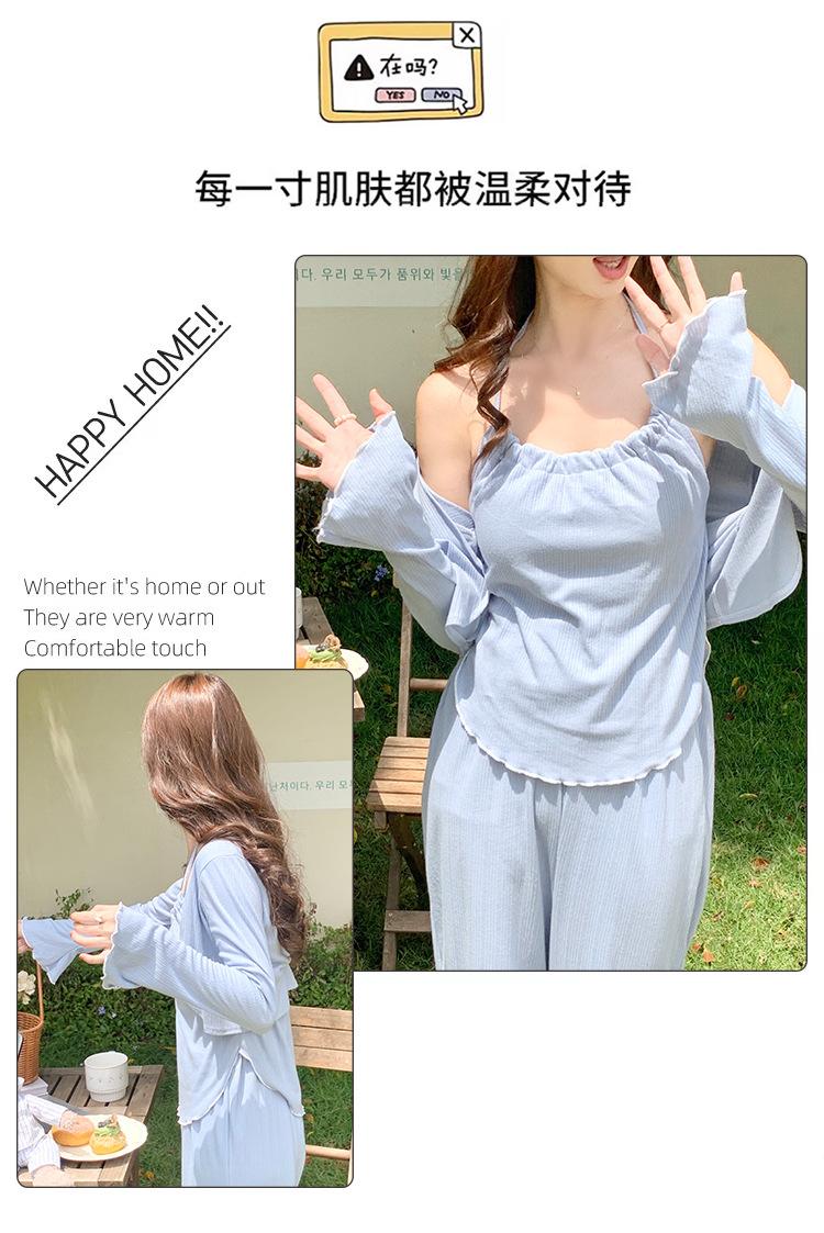 Conjunto nuevo de tres piezas para primavera y verano 2025 6535 Algodón con chaleco desmontable con almohadilla en el pecho + mangas largas + pantalones Pijama de mujer