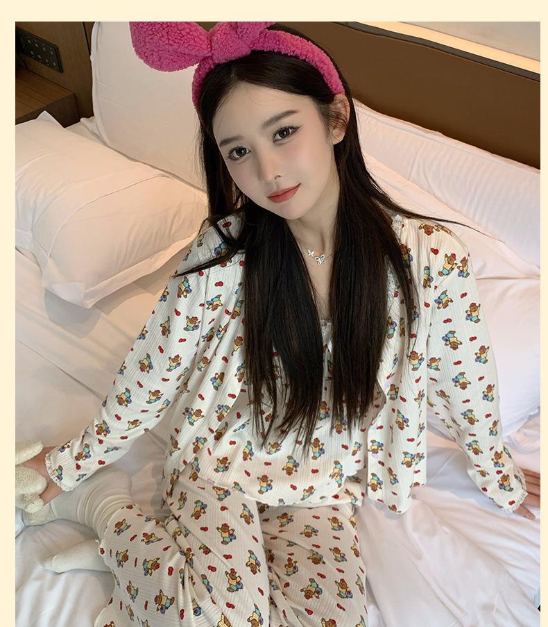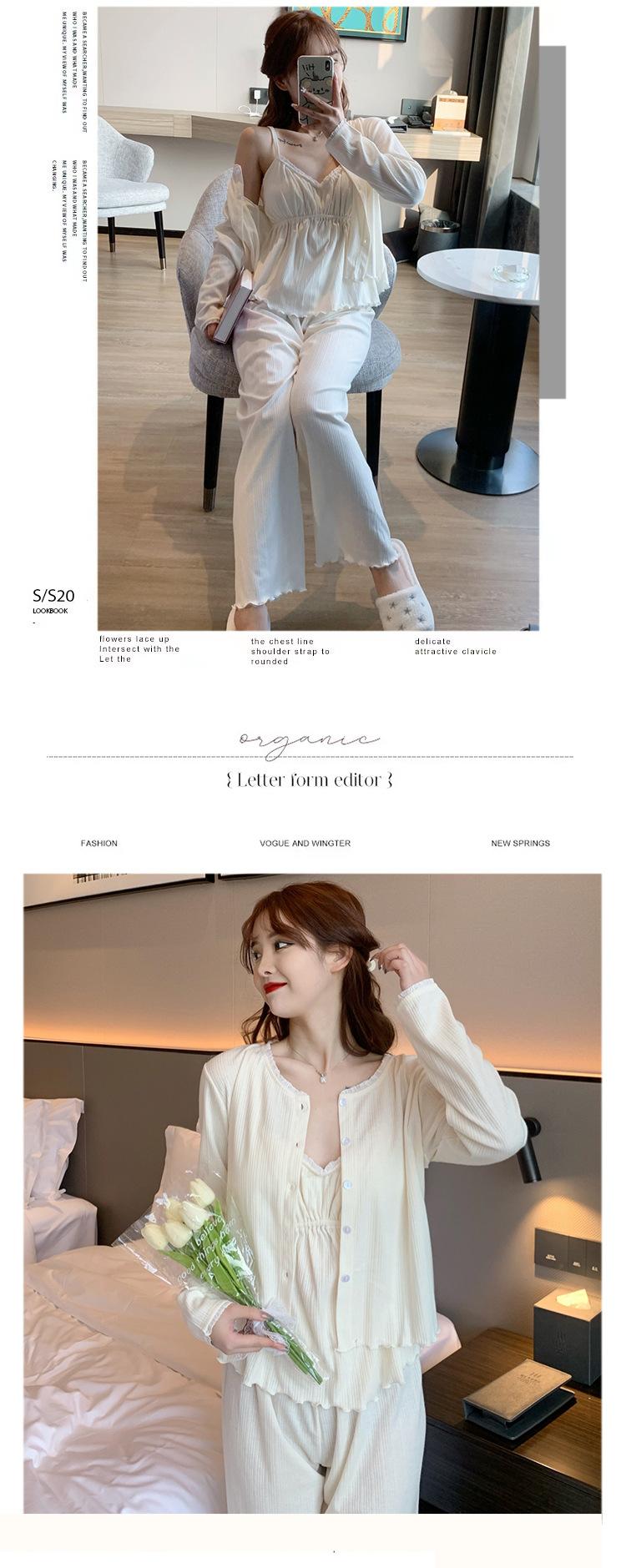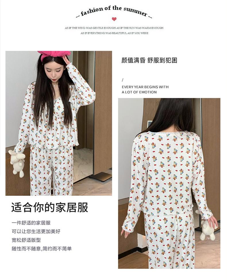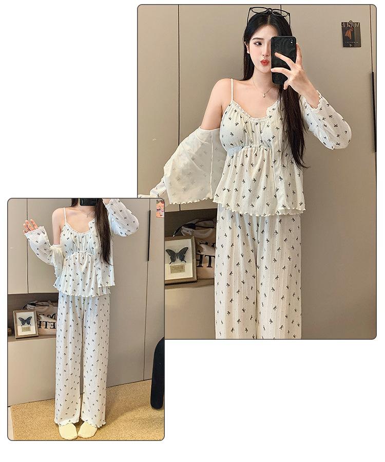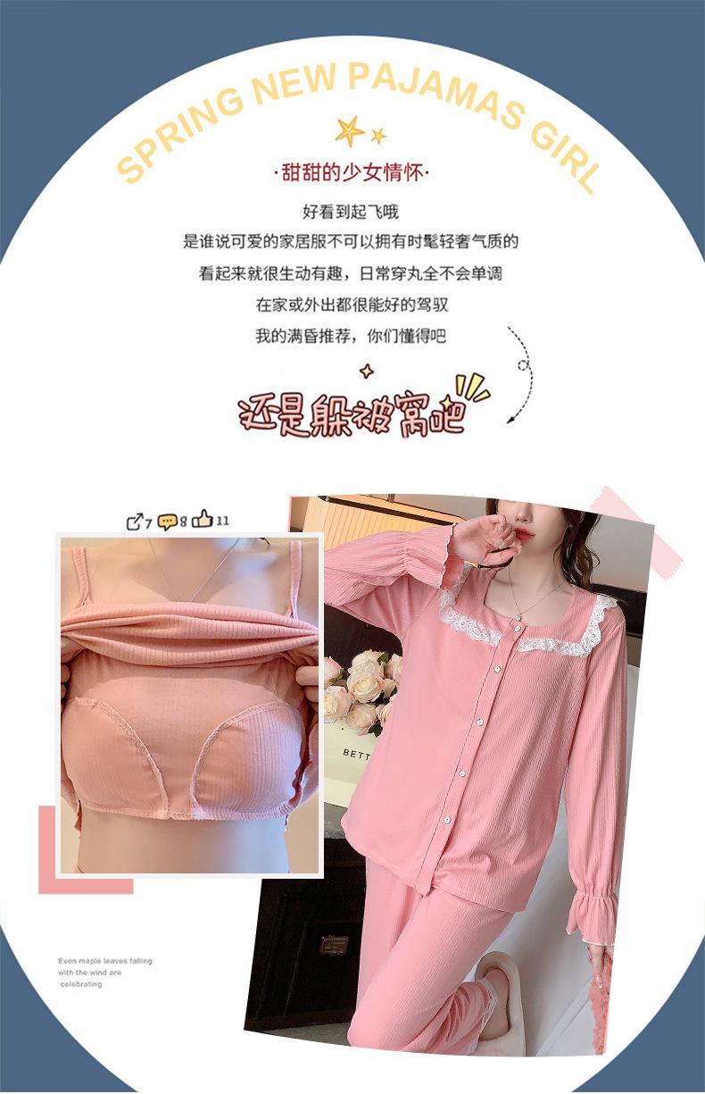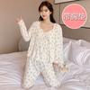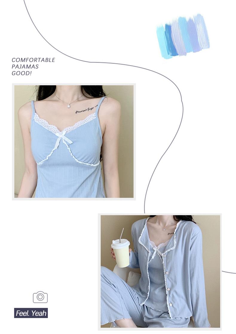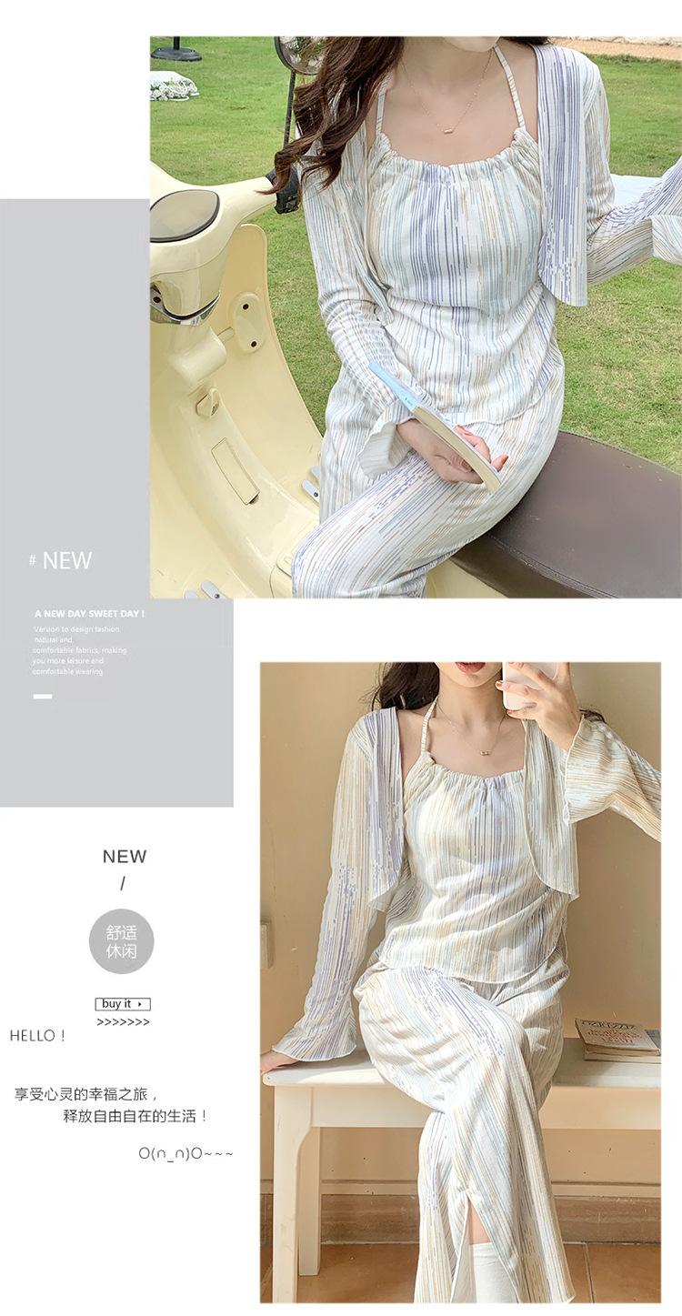 Conjunto nuevo de tres piezas para primavera y verano 2025 6535 Algodón con chaleco desmontable con almohadilla en el pecho + mangas largas + pantalones Pijama de mujer