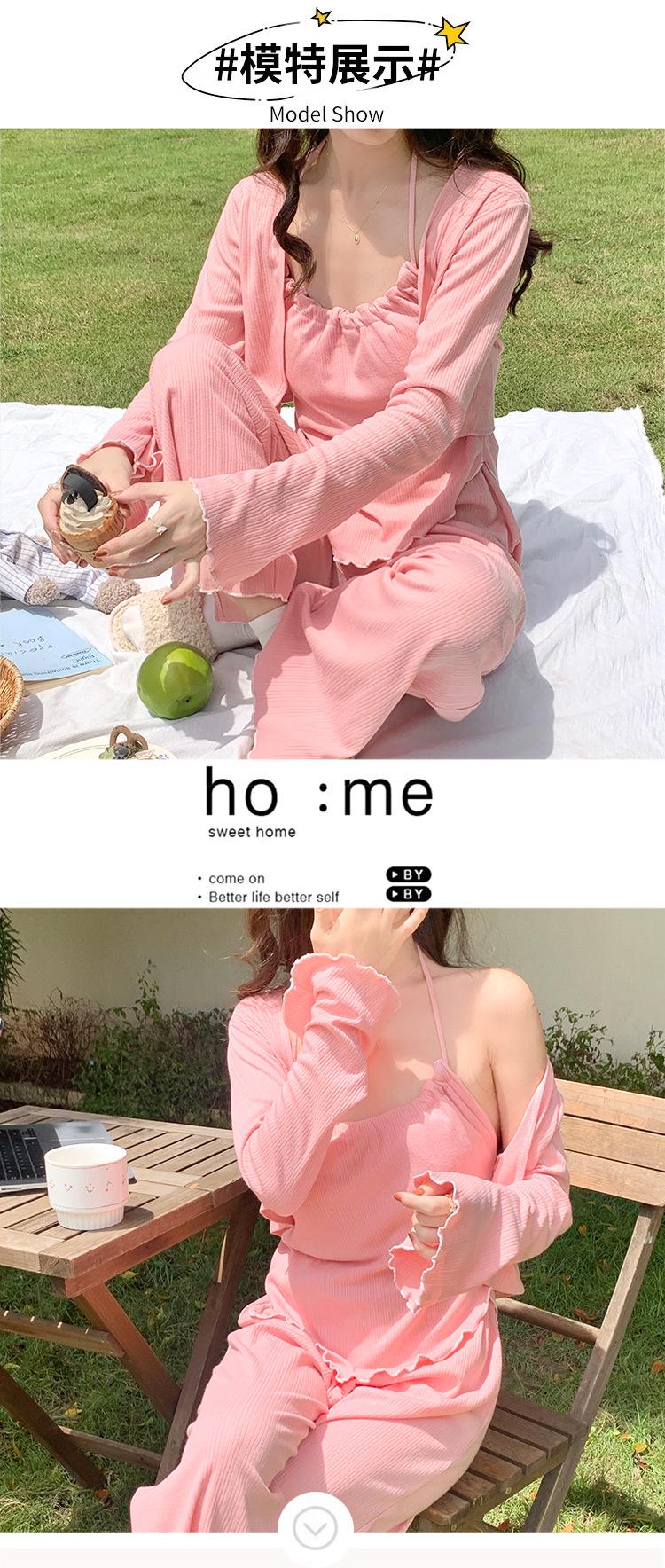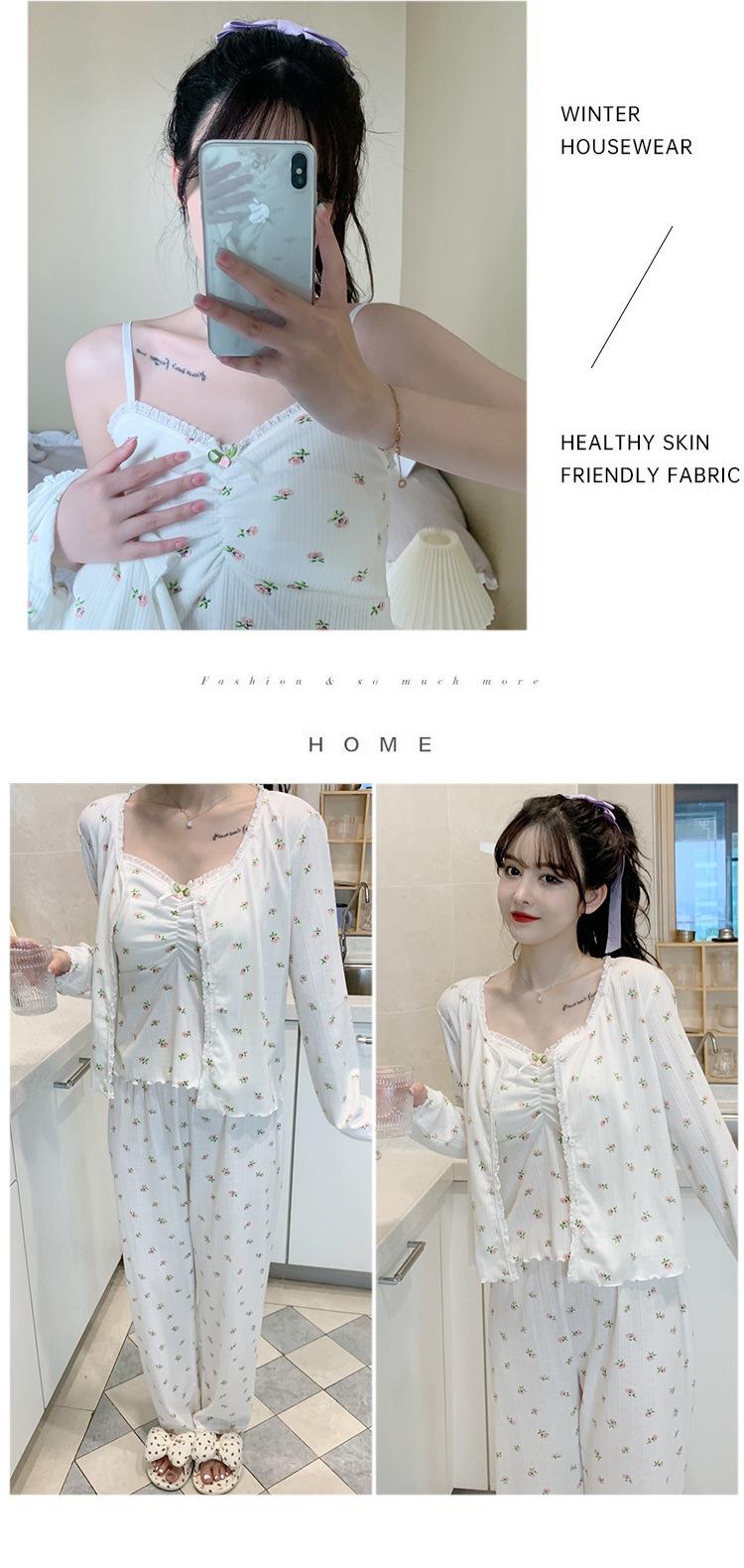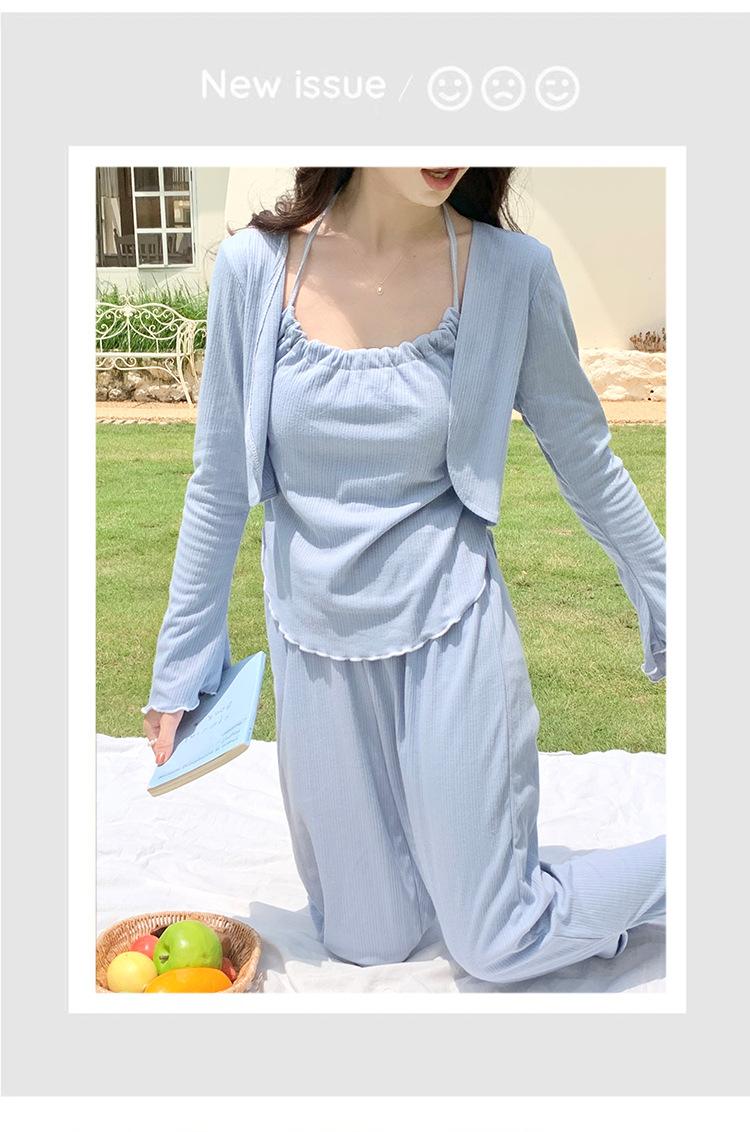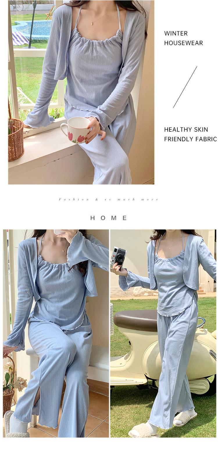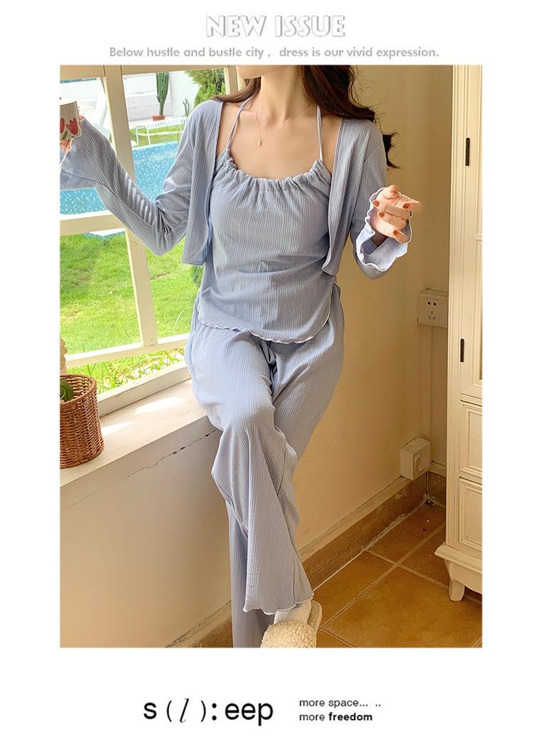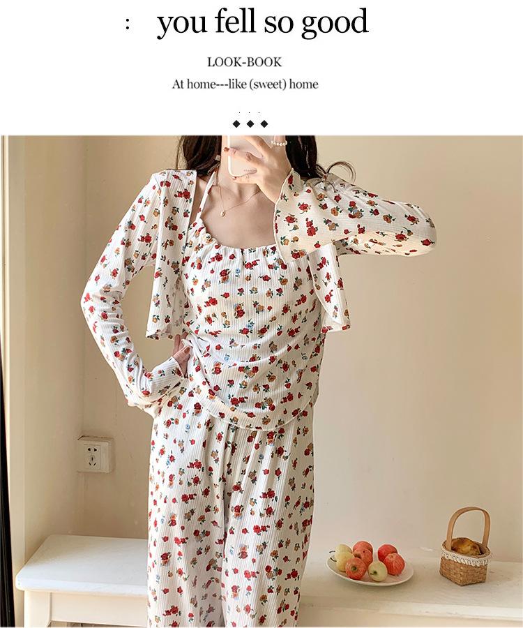 Conjunto nuevo de tres piezas para primavera y verano 2025 6535 Algodón con chaleco desmontable con almohadilla en el pecho + mangas largas + pantalones Pijama de mujer