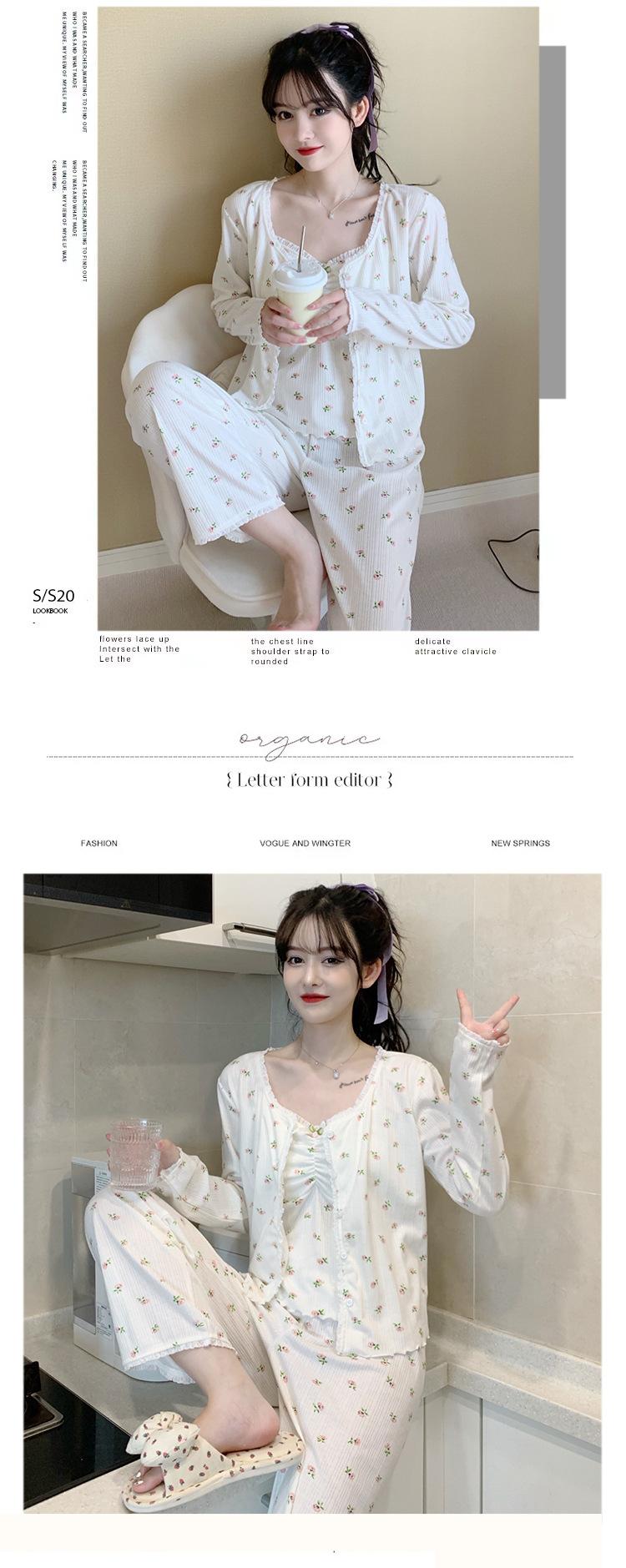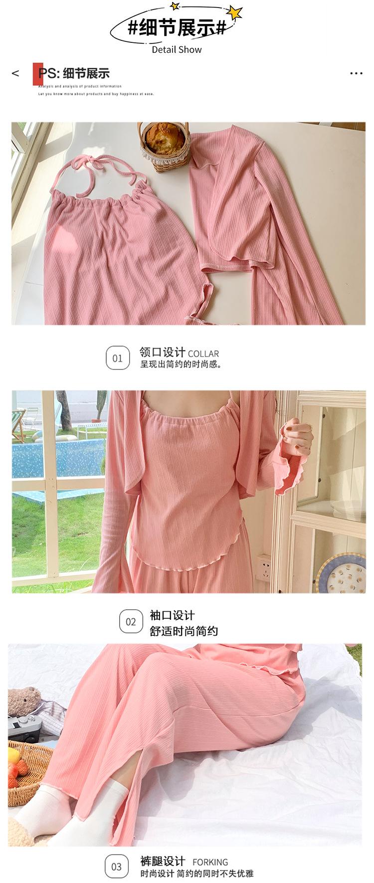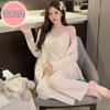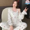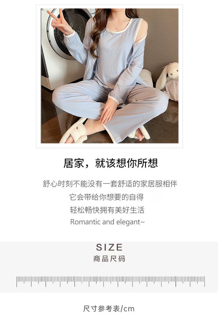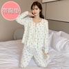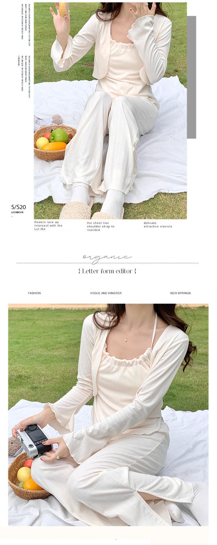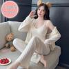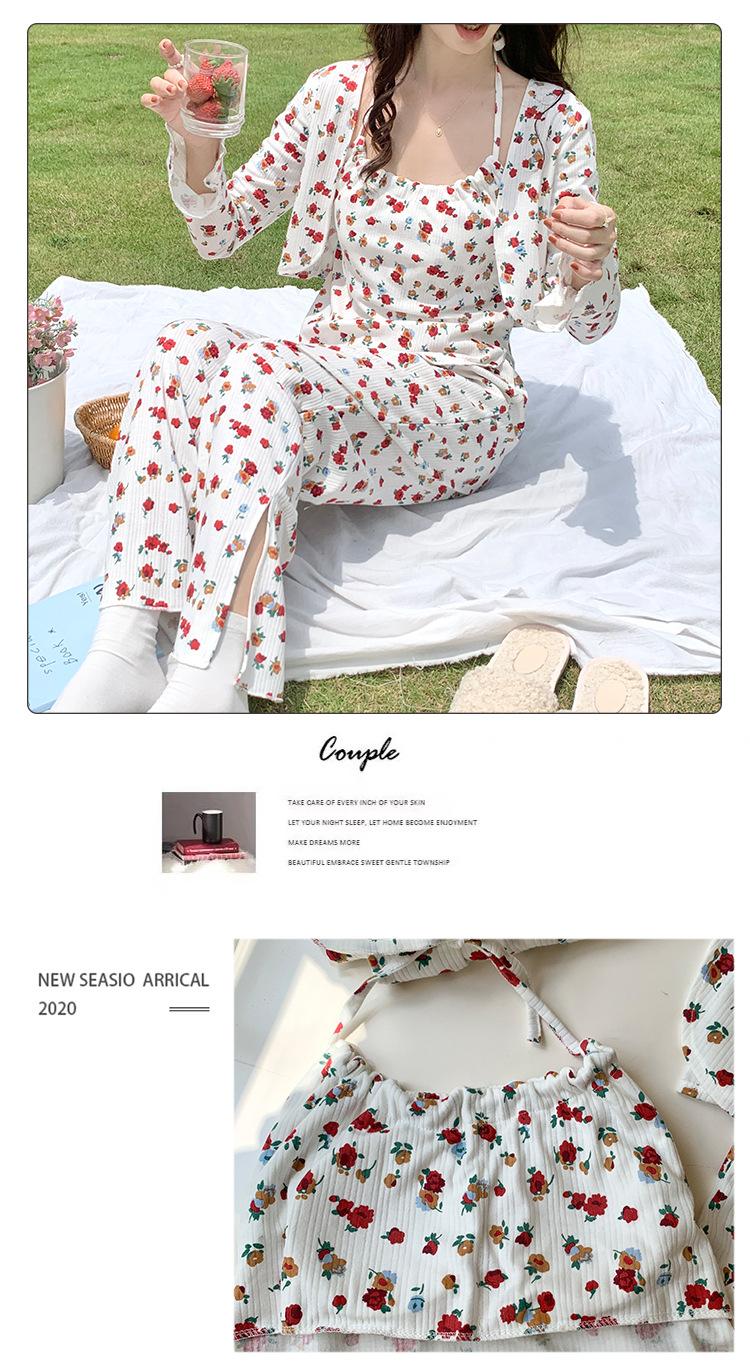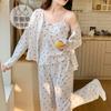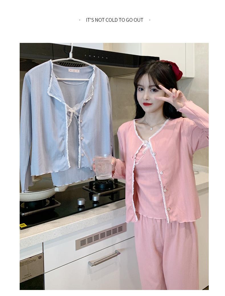 Conjunto nuevo de tres piezas para primavera y verano 2025 6535 Algodón con chaleco desmontable con almohadilla en el pecho + mangas largas + pantalones Pijama de mujer
