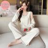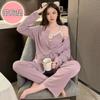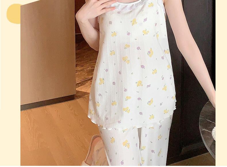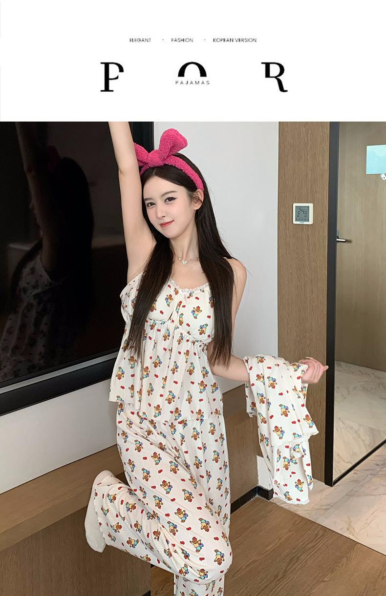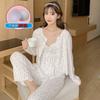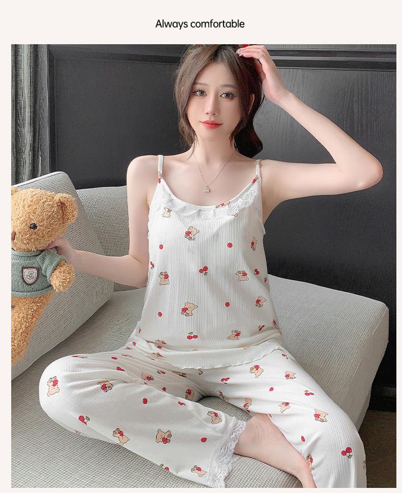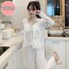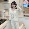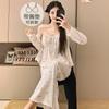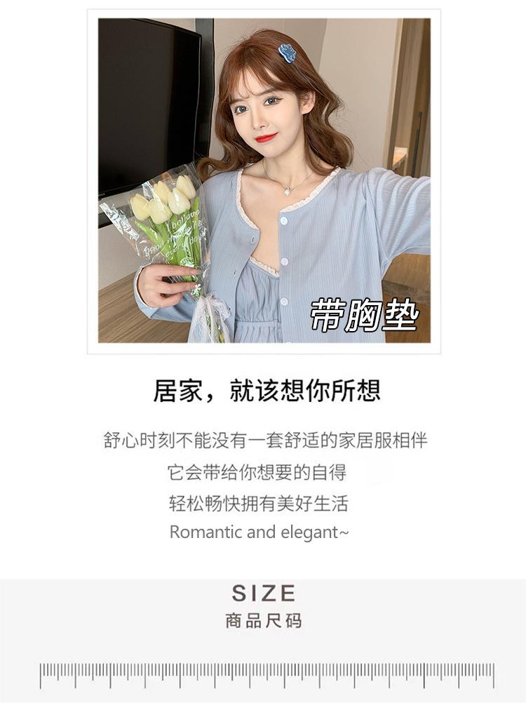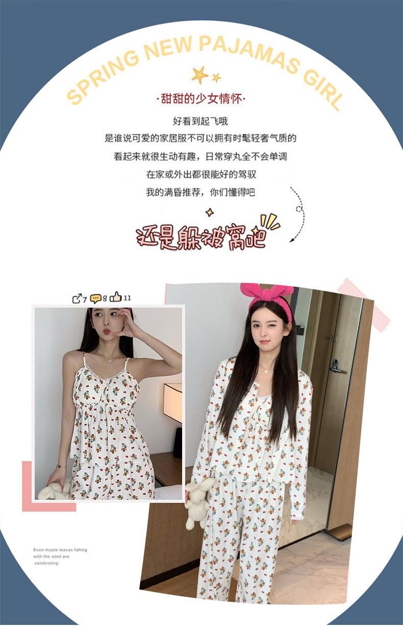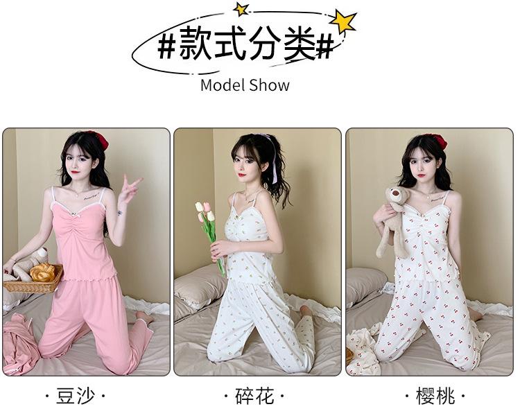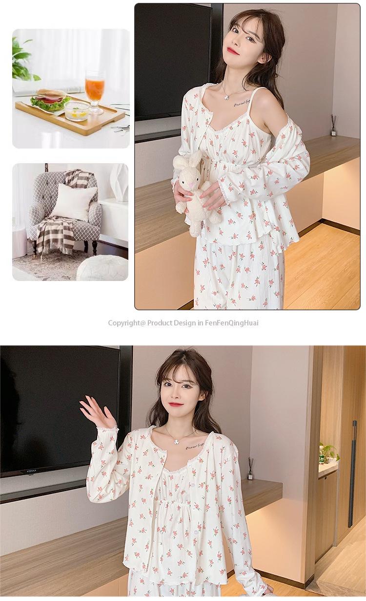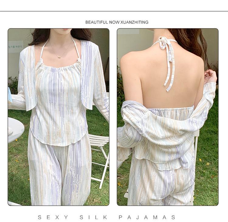 Conjunto nuevo de tres piezas para primavera y verano 2025 6535 Algodón con chaleco desmontable con almohadilla en el pecho + mangas largas + pantalones Pijama de mujer