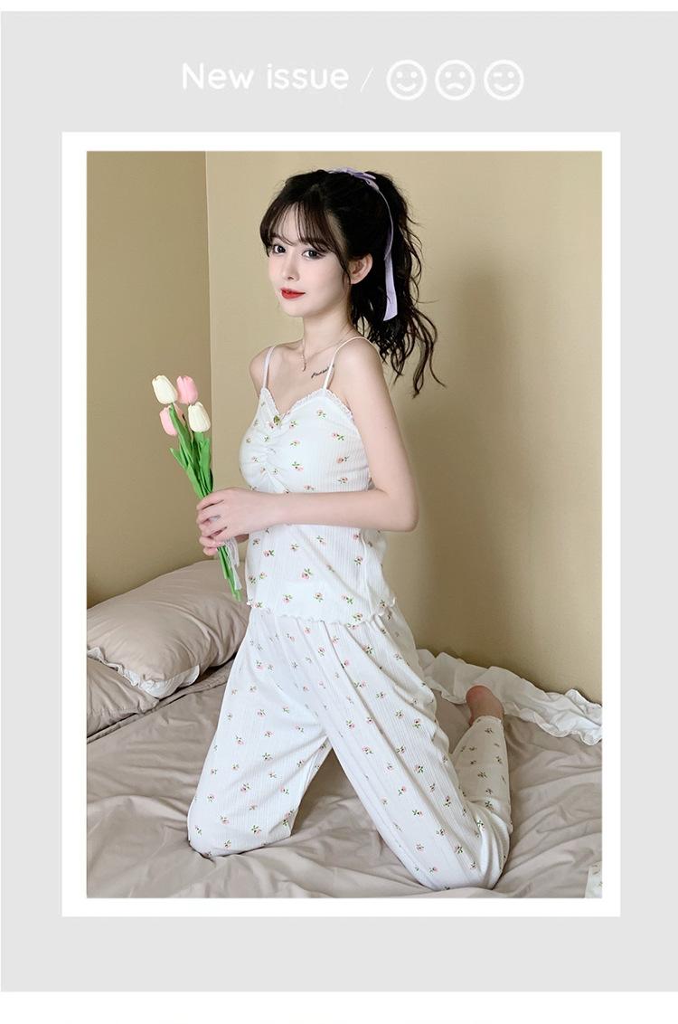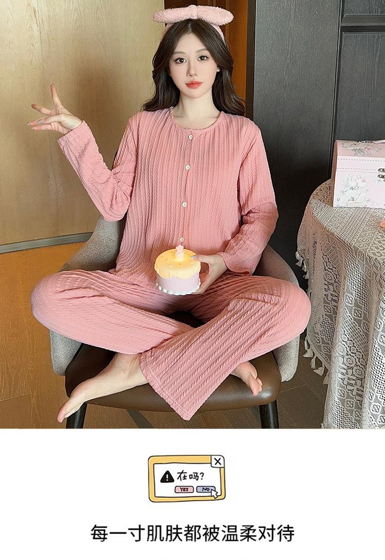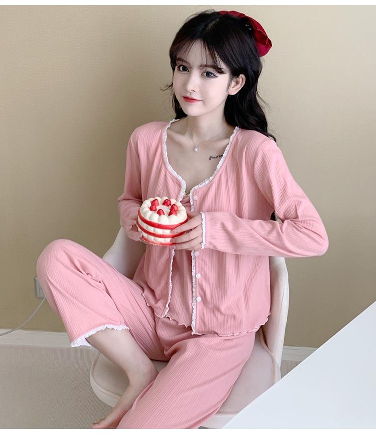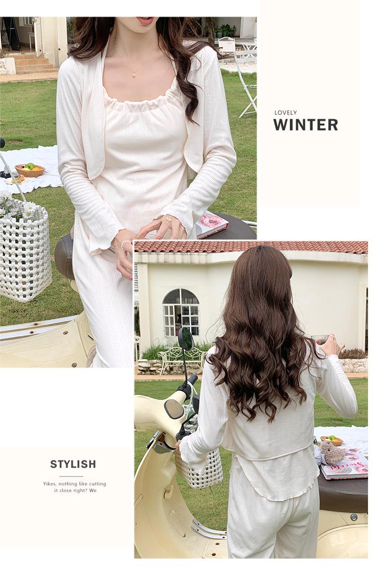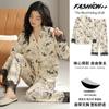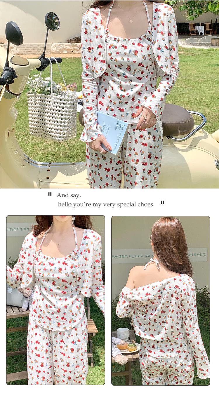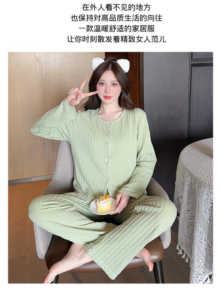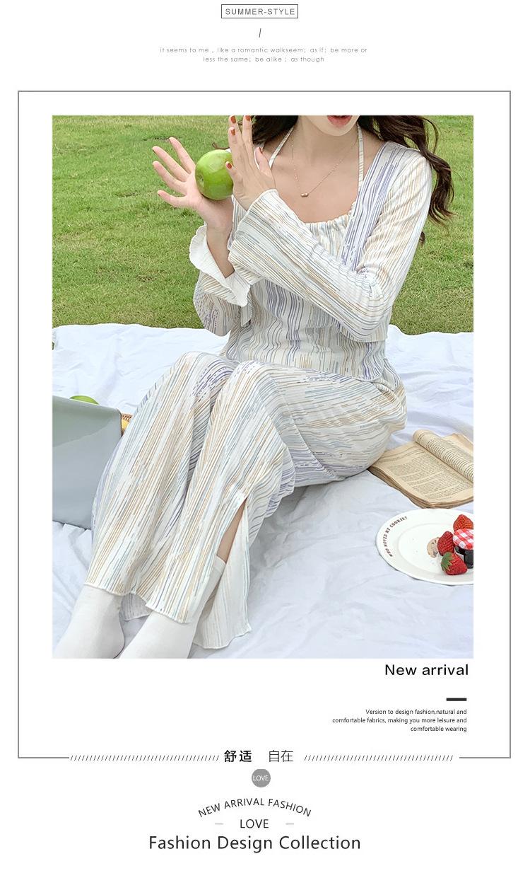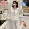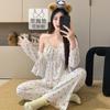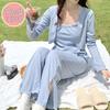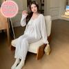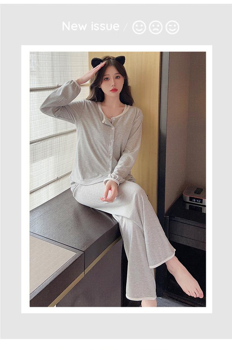 Conjunto nuevo de tres piezas para primavera y verano 2025 6535 Algodón con chaleco desmontable con almohadilla en el pecho + mangas largas + pantalones Pijama de mujer
