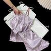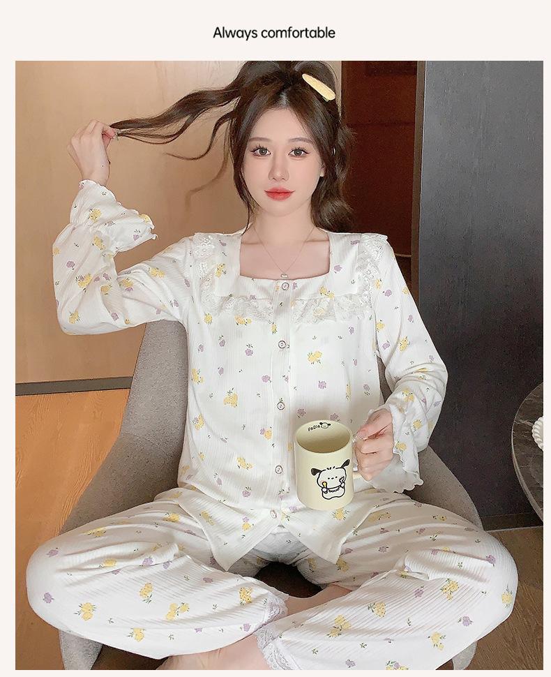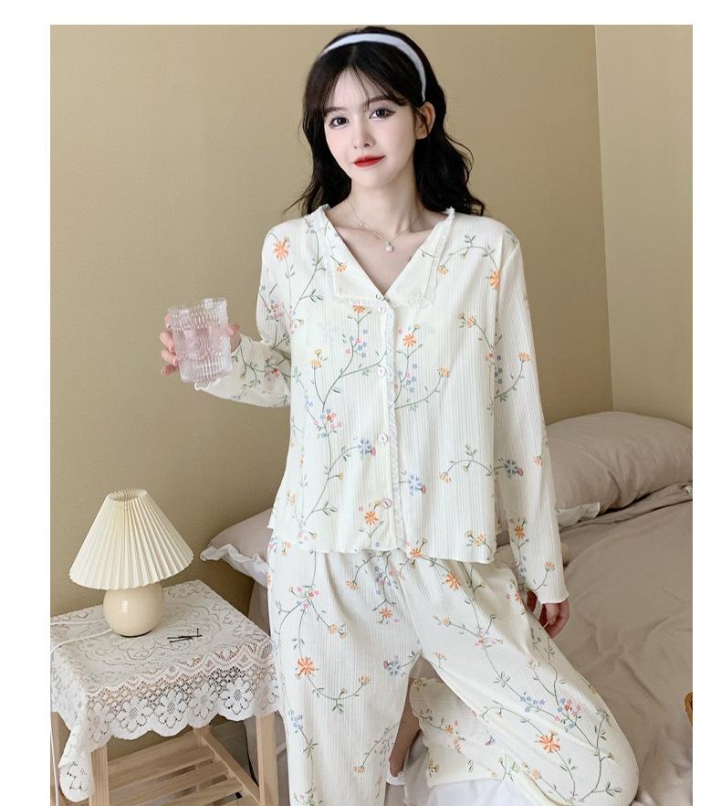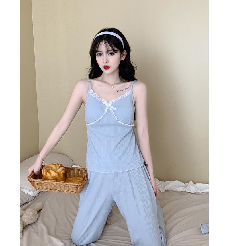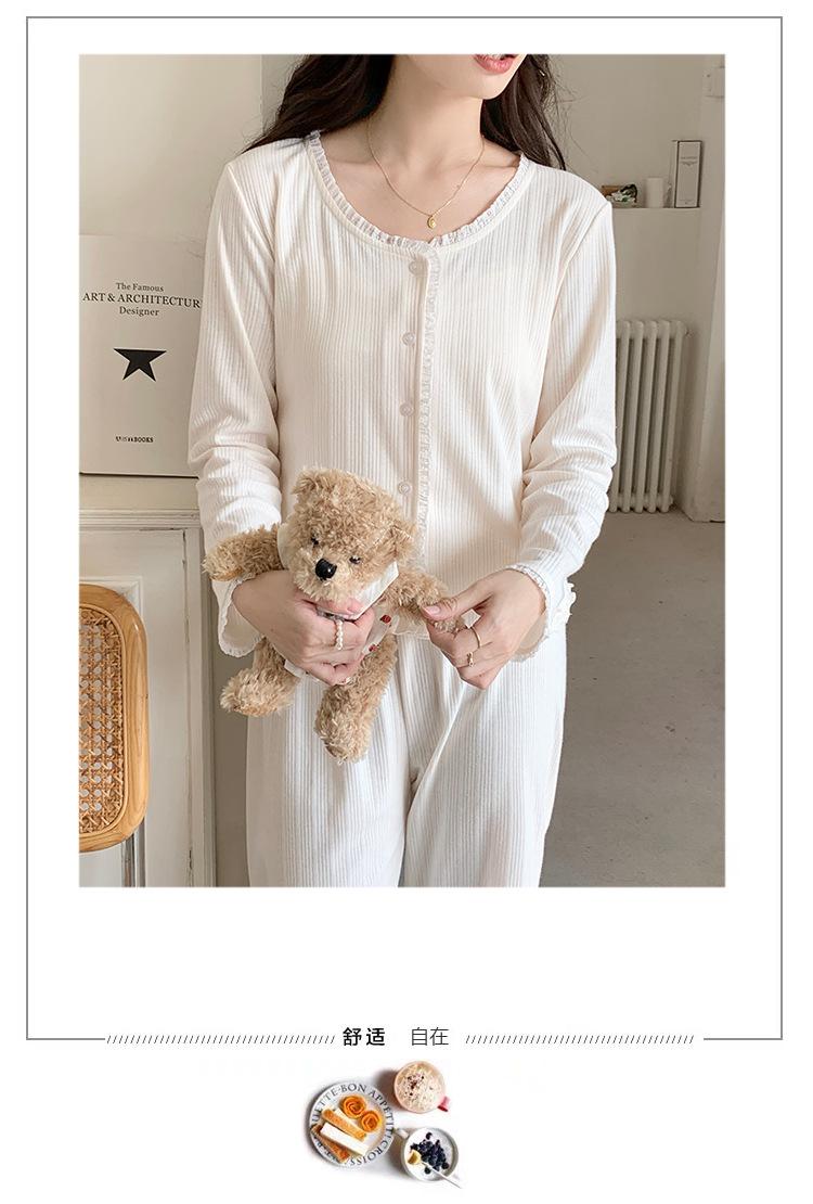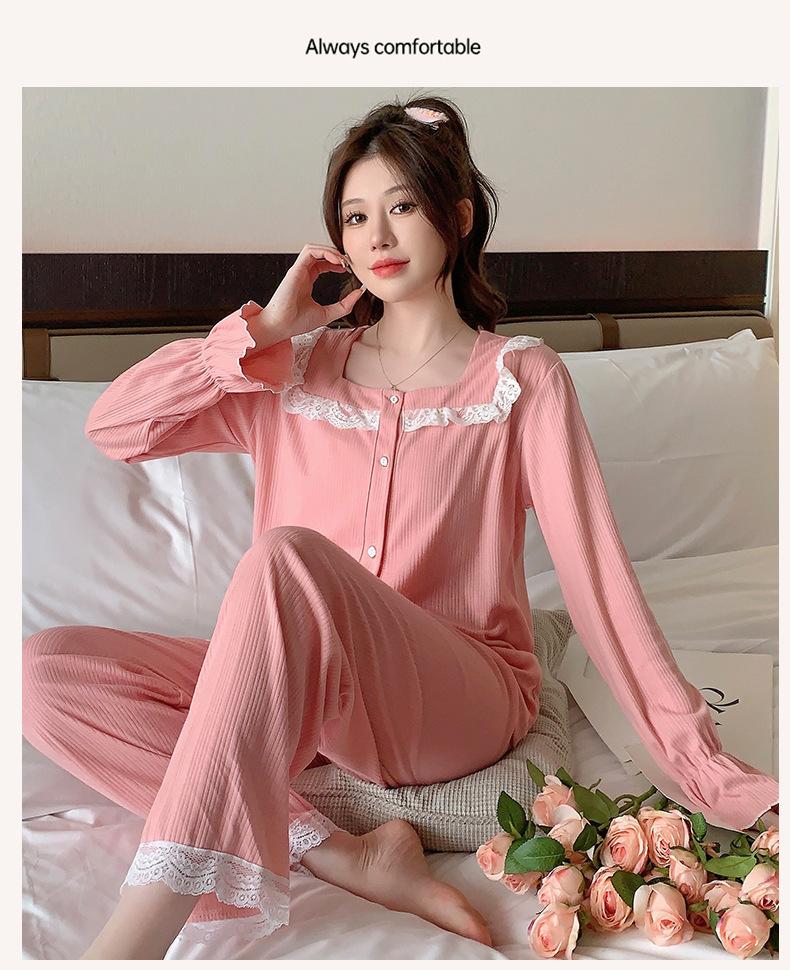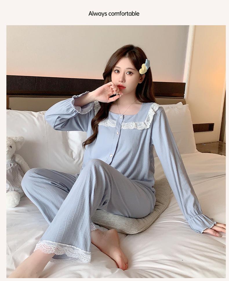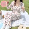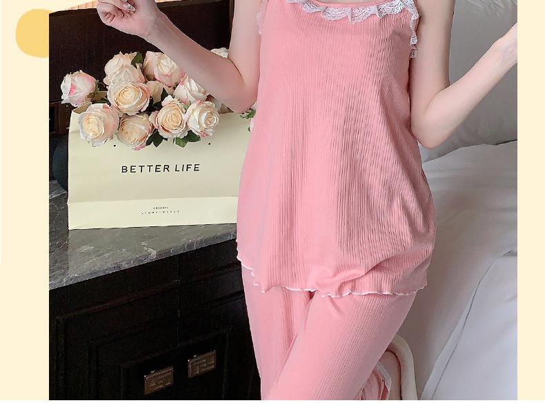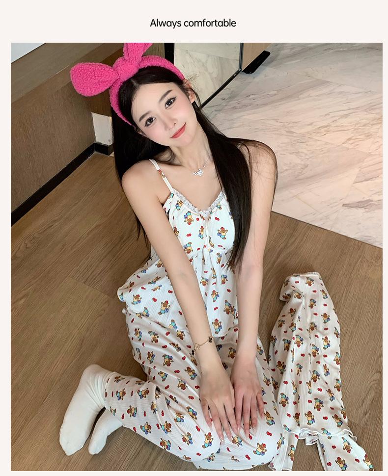 Conjunto nuevo de tres piezas para primavera y verano 2025 6535 Algodón con chaleco desmontable con almohadilla en el pecho + mangas largas + pantalones Pijama de mujer