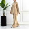 Conjunto de dos piezas de pantalones de punto ajustados de color liso de estilo casual para mujer de Amazon transfronterizo europeo y americano de otoño de 2024