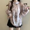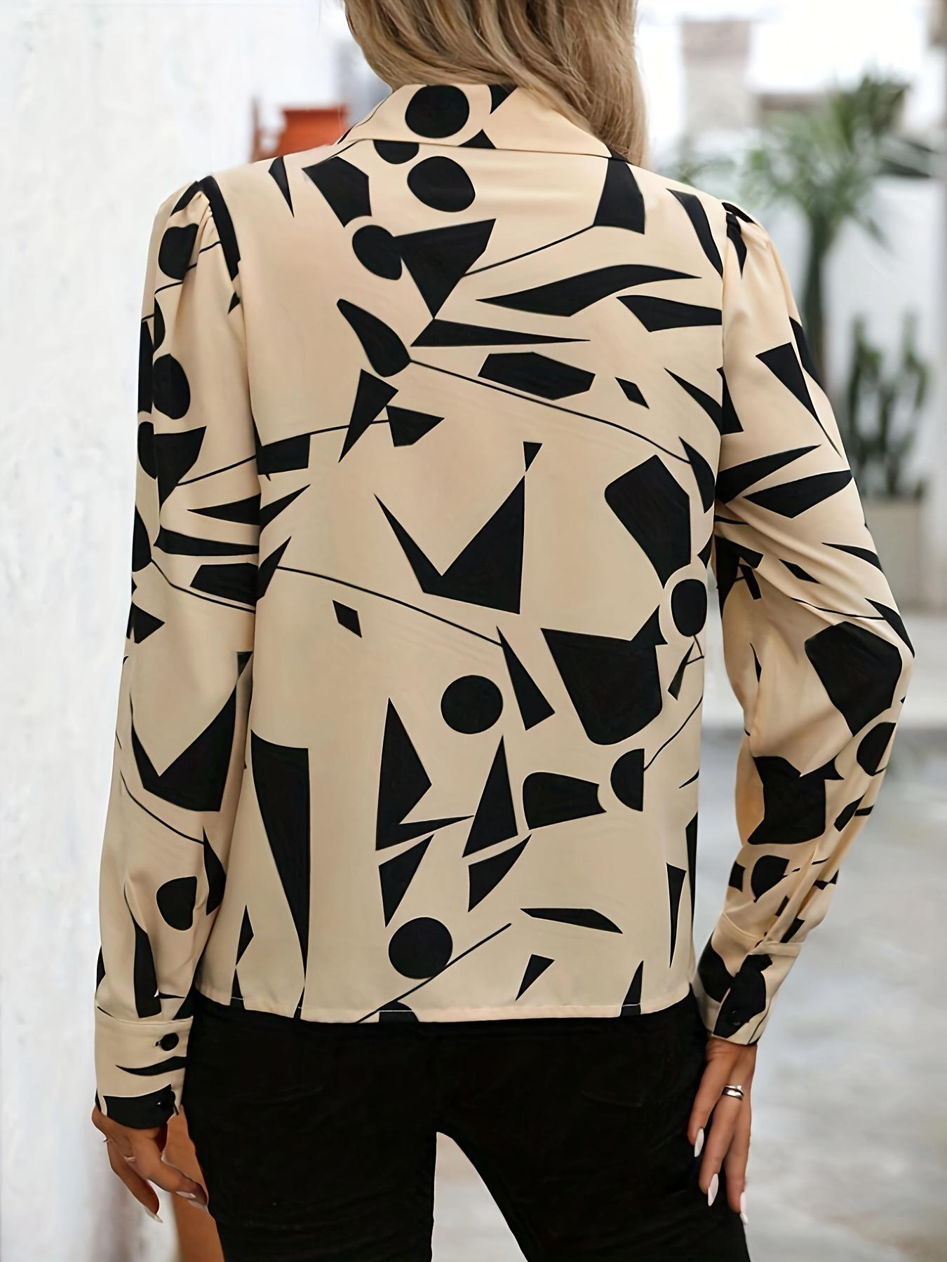 Camisa estampada de manga larga con estampado geométrico para mujer para otoño