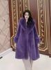 Abrigo de piel de visón con cuello de piel largo y control de acceso para mujer, abrigo de terciopelo de visón holgado e informal de talla grande, nuevo para otoño e invierno