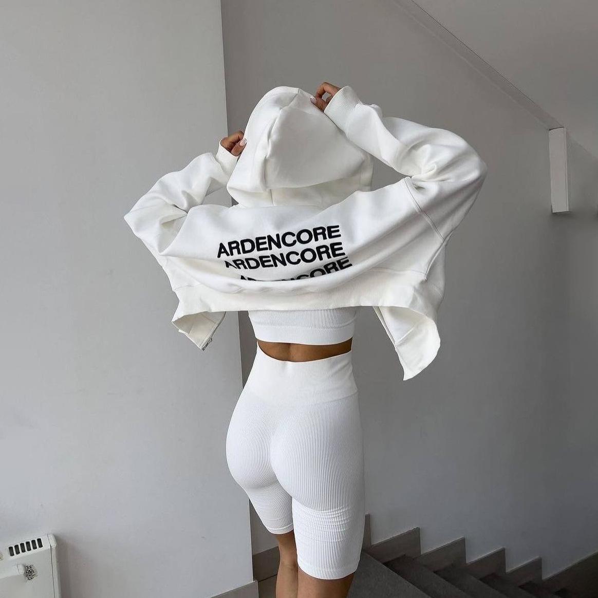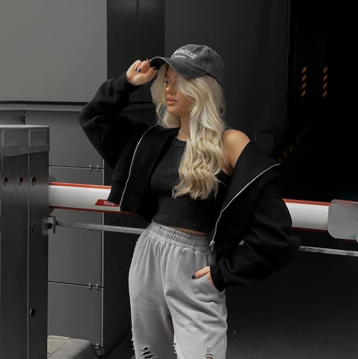 Sudadera corta con capucha y cremallera trasera con letras, nueva moda urbana de principios de otoño, sudadera cárdigan con estampado trasero de chica hot