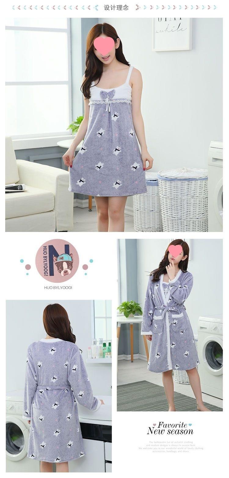 Pijama de invierno para mujer, camisón de franela con forro polar grueso, estilo coreano, camisón con tirantes, bata de baño de forro polar coral, ropa para el hogar