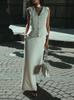 Chaleco largo sin mangas de dos piezas blanco francés, vestido de negocios europeo y americano, traje de moda para mujer, sentido de alta gama de verano