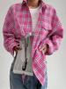 Camisa holgada de solapa con solapa y bolsillo de estilo retro de Amazon para mujer, primavera y otoño 2024, a cuadros, manga larga