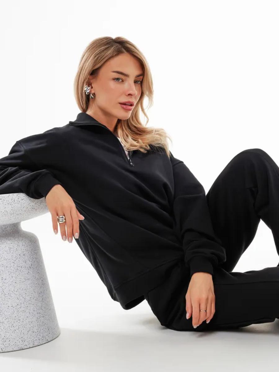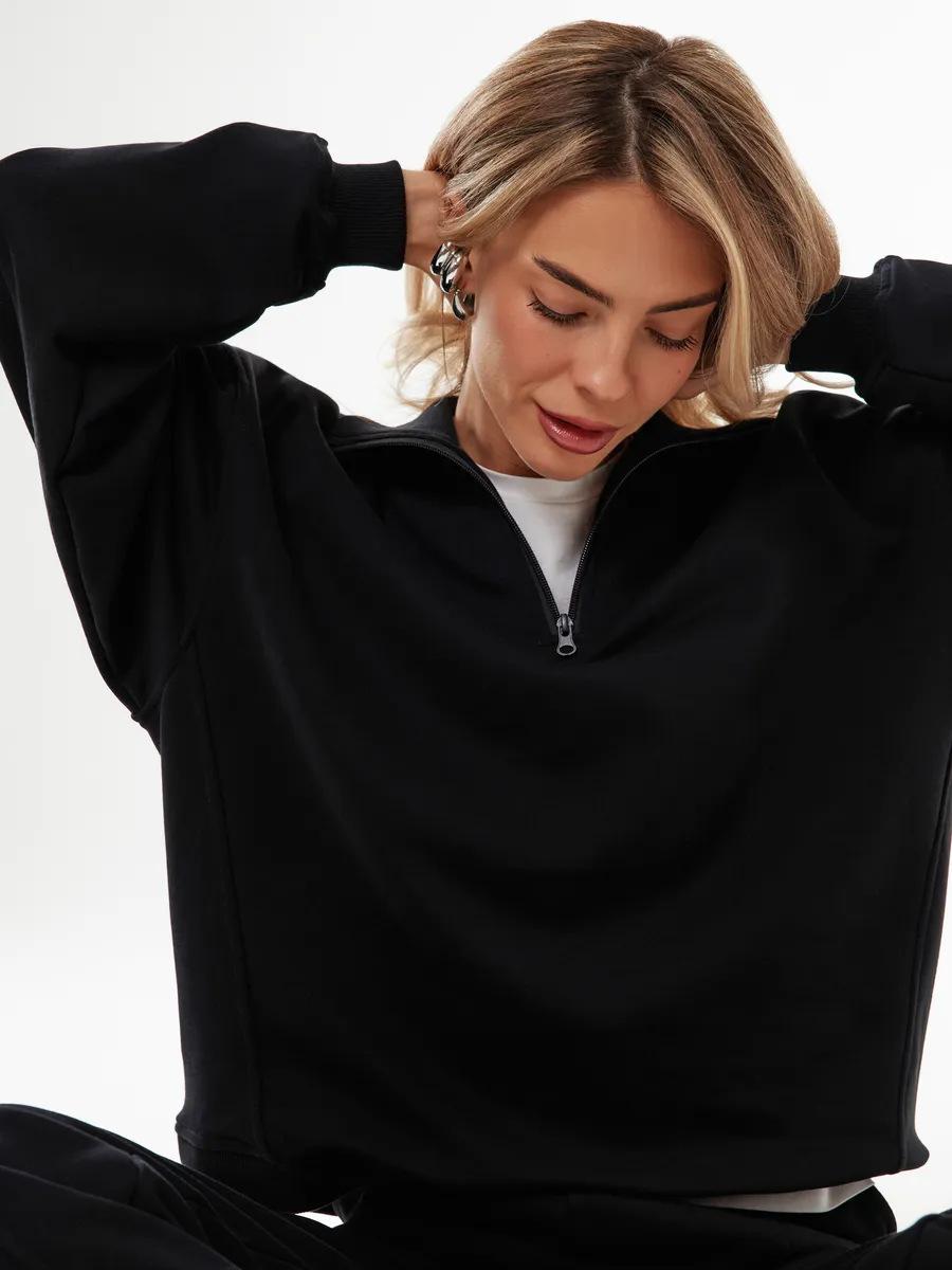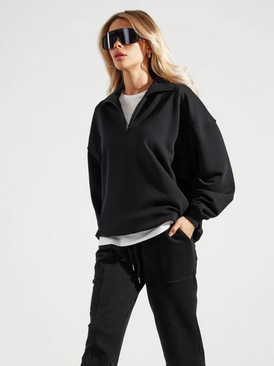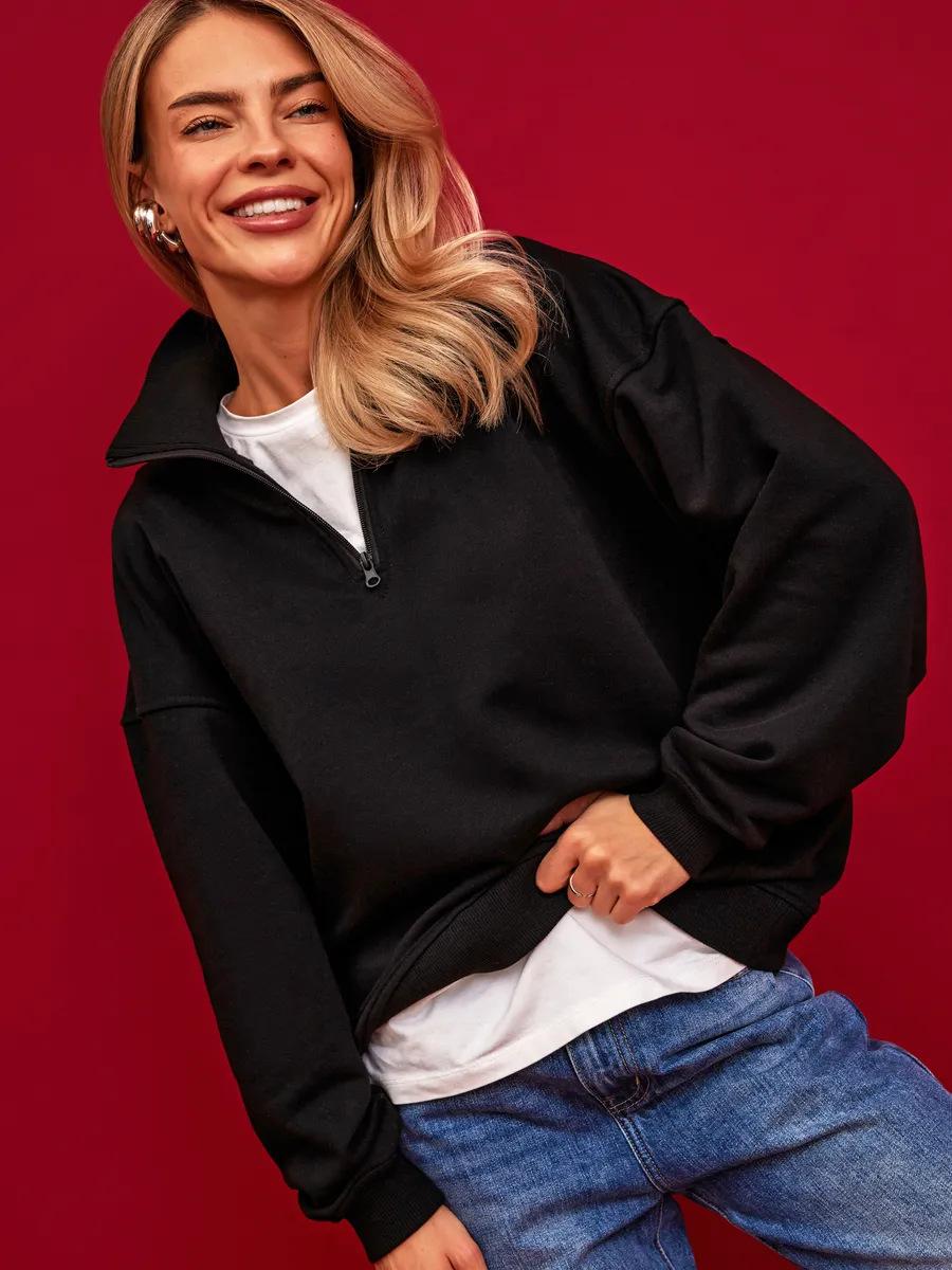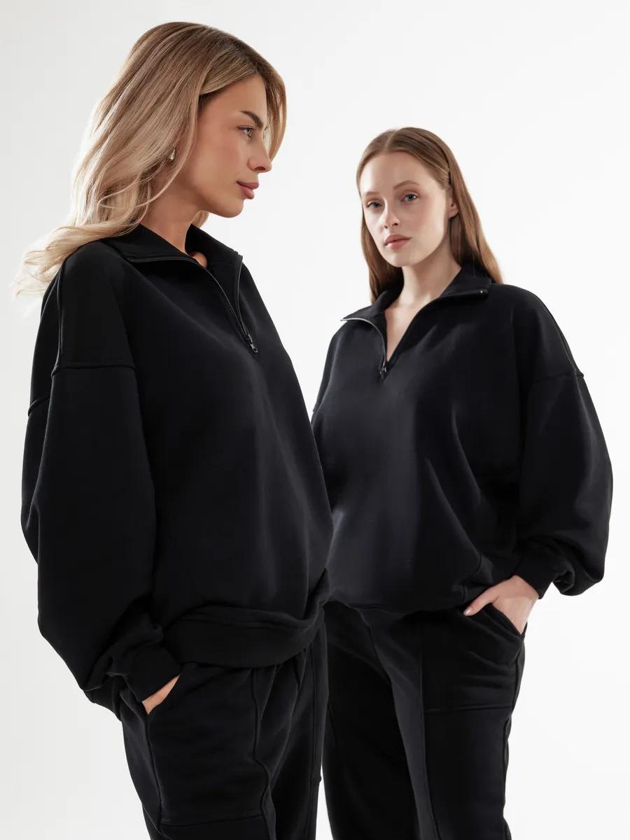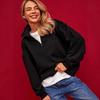 Polo de manga larga ajustado estilo europeo y americano nuevo estilo forrado de polar grueso suelto otoño e invierno chaqueta superior con cremallera de solapa