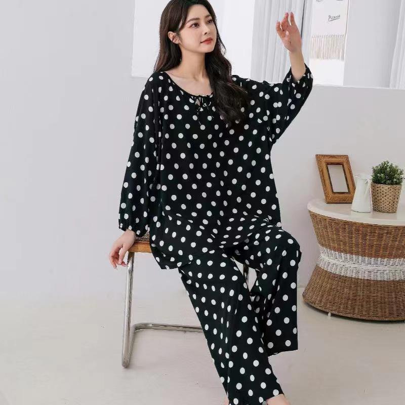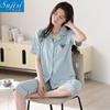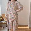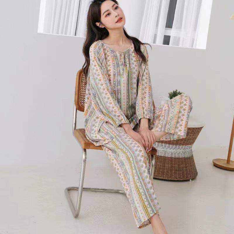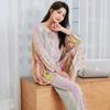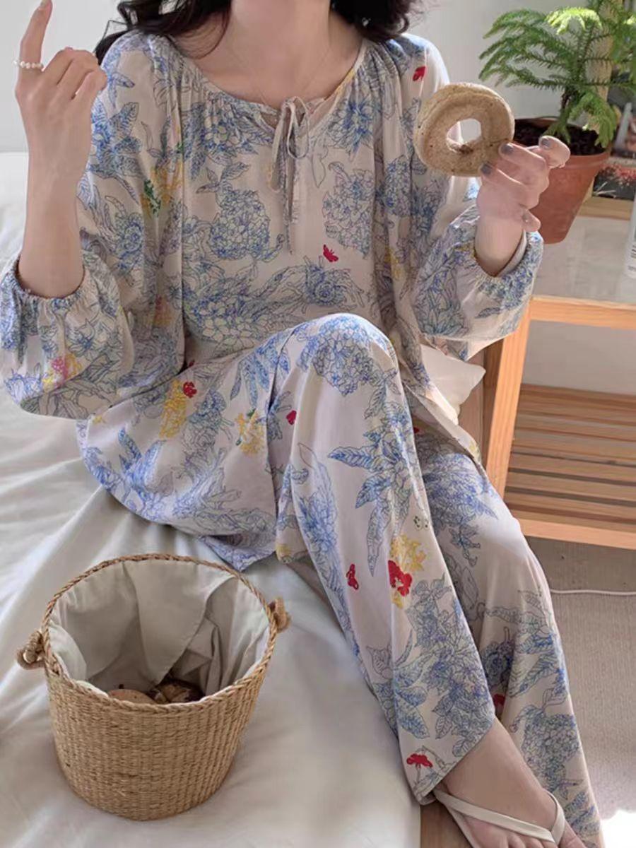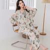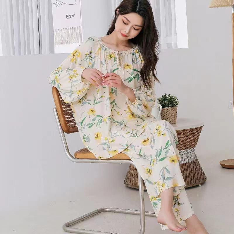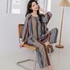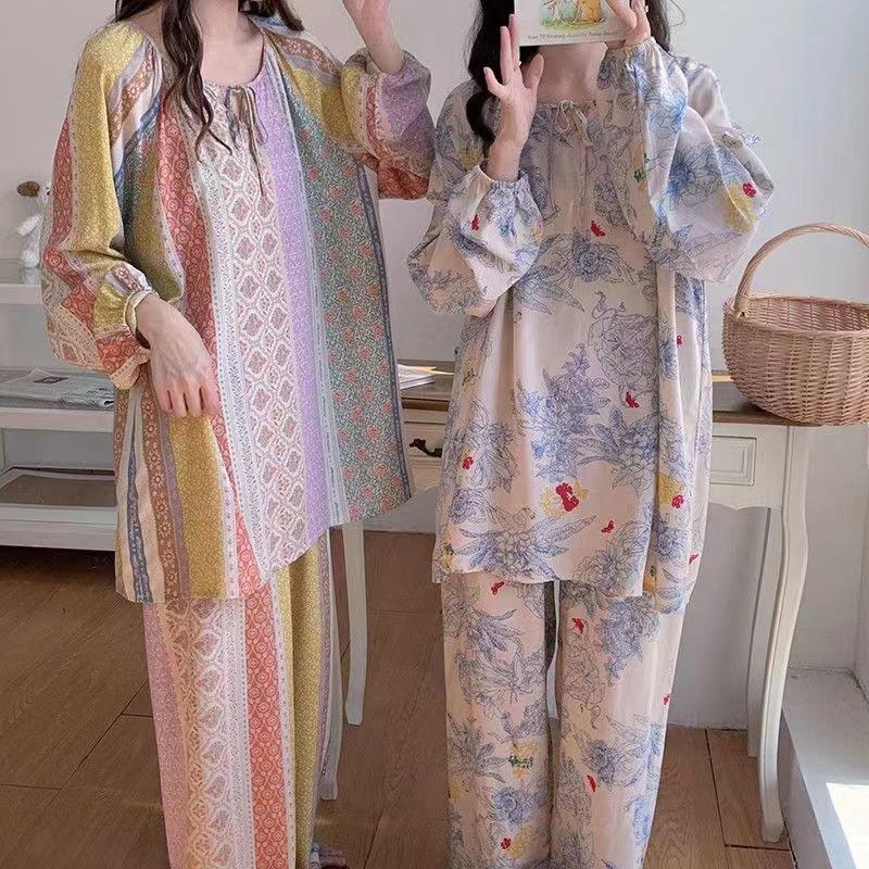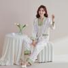 Pijamas de seda de manga larga de primavera y otoño de comercio exterior transfronterizo para mujer, nuevo conjunto holgado y dulce, ropa de casa para mujer.