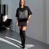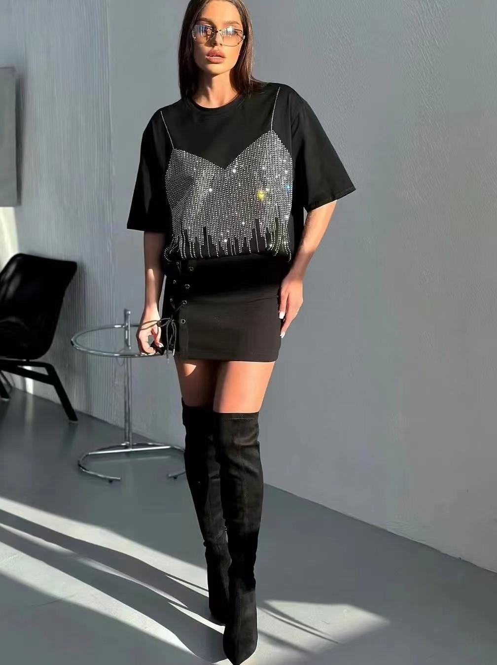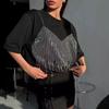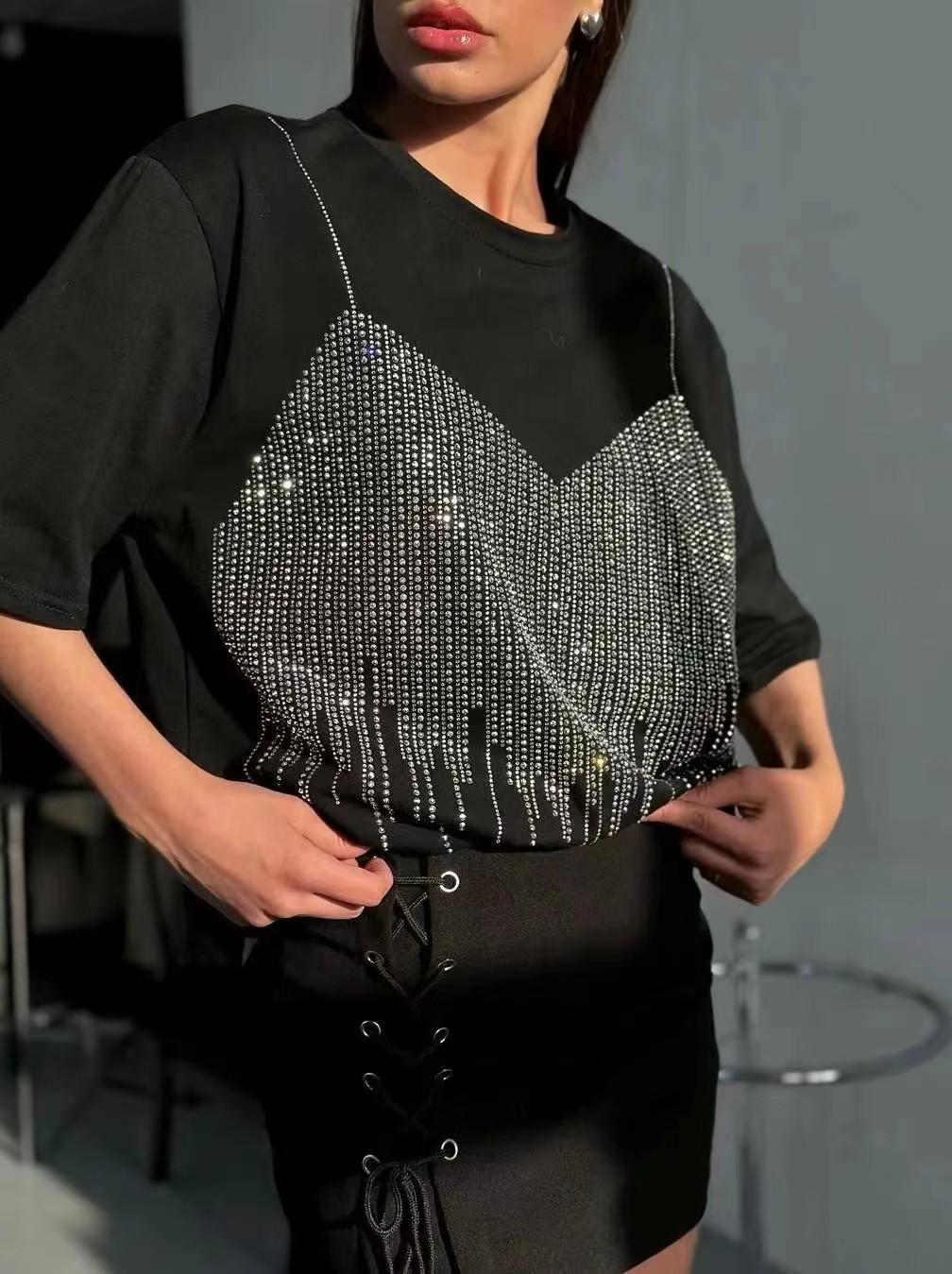 Camiseta de manga corta con cuello redondo 100% algodón, estilo europeo y americano de moda de verano, informal, con perforación en caliente, para industria pesada, combina con todo, a la moda, ajustada.