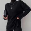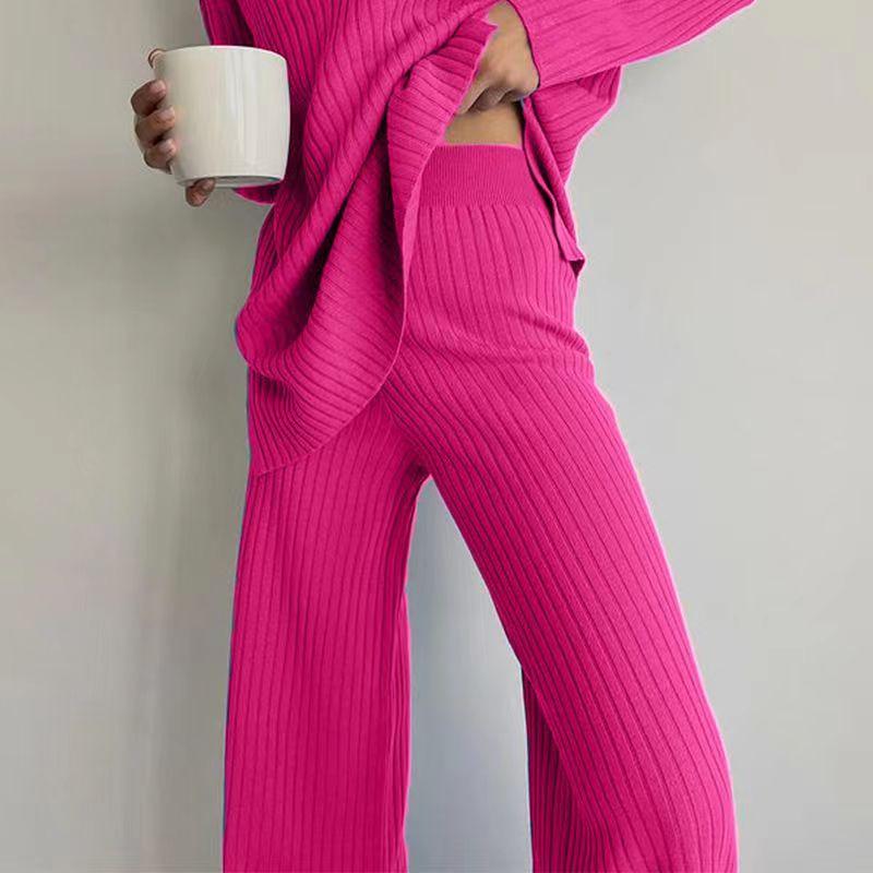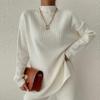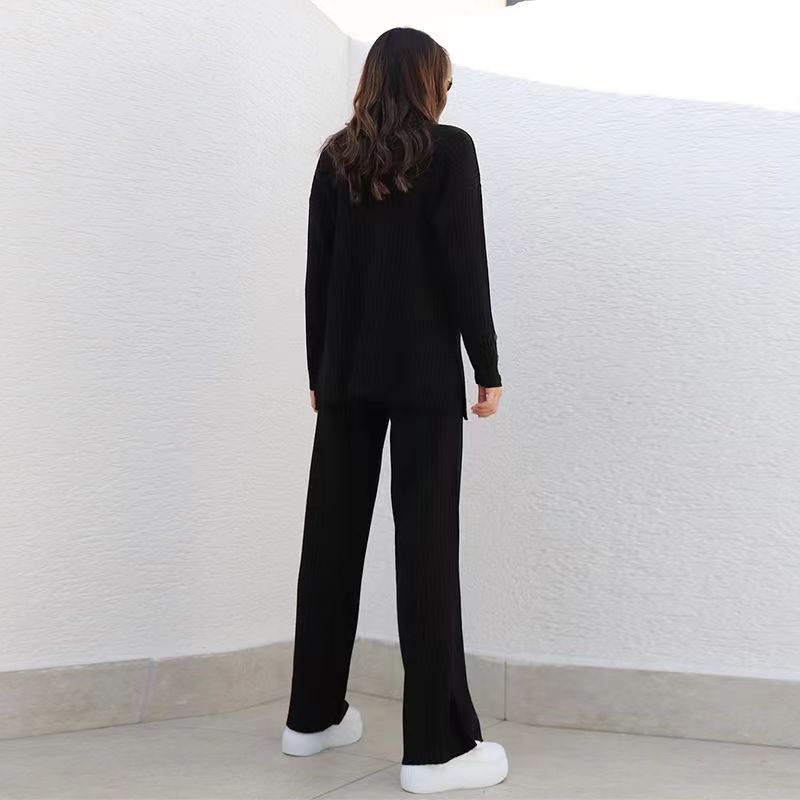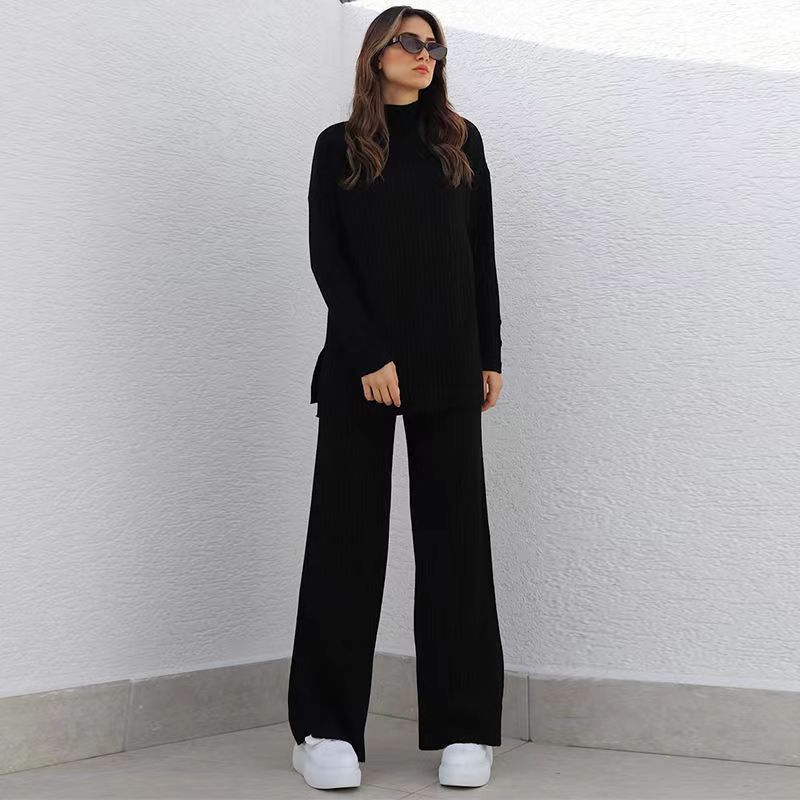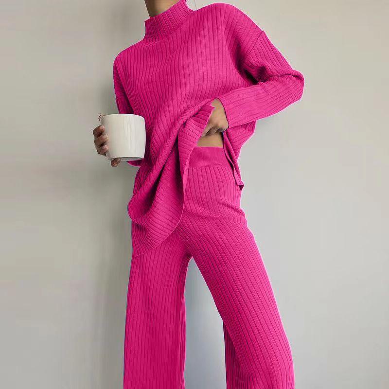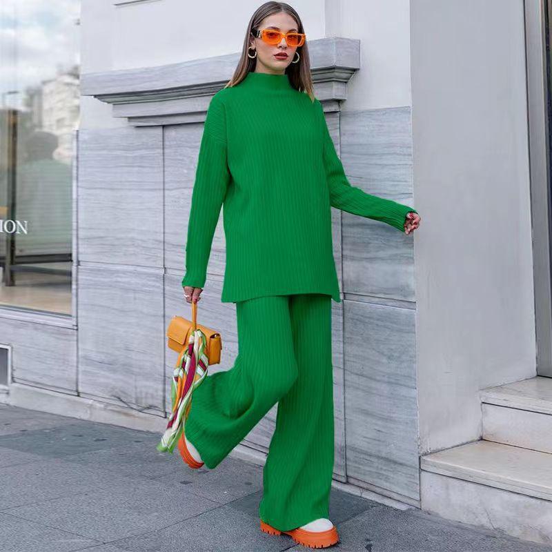 Nuevo Conjunto de Dos Piezas Transfronterizo Europeo y Americano Moda Casual Adelgazante Cuello Semi-Alto Manga Larga Color Sólido Conjunto de Suéter de Punto para Mujer