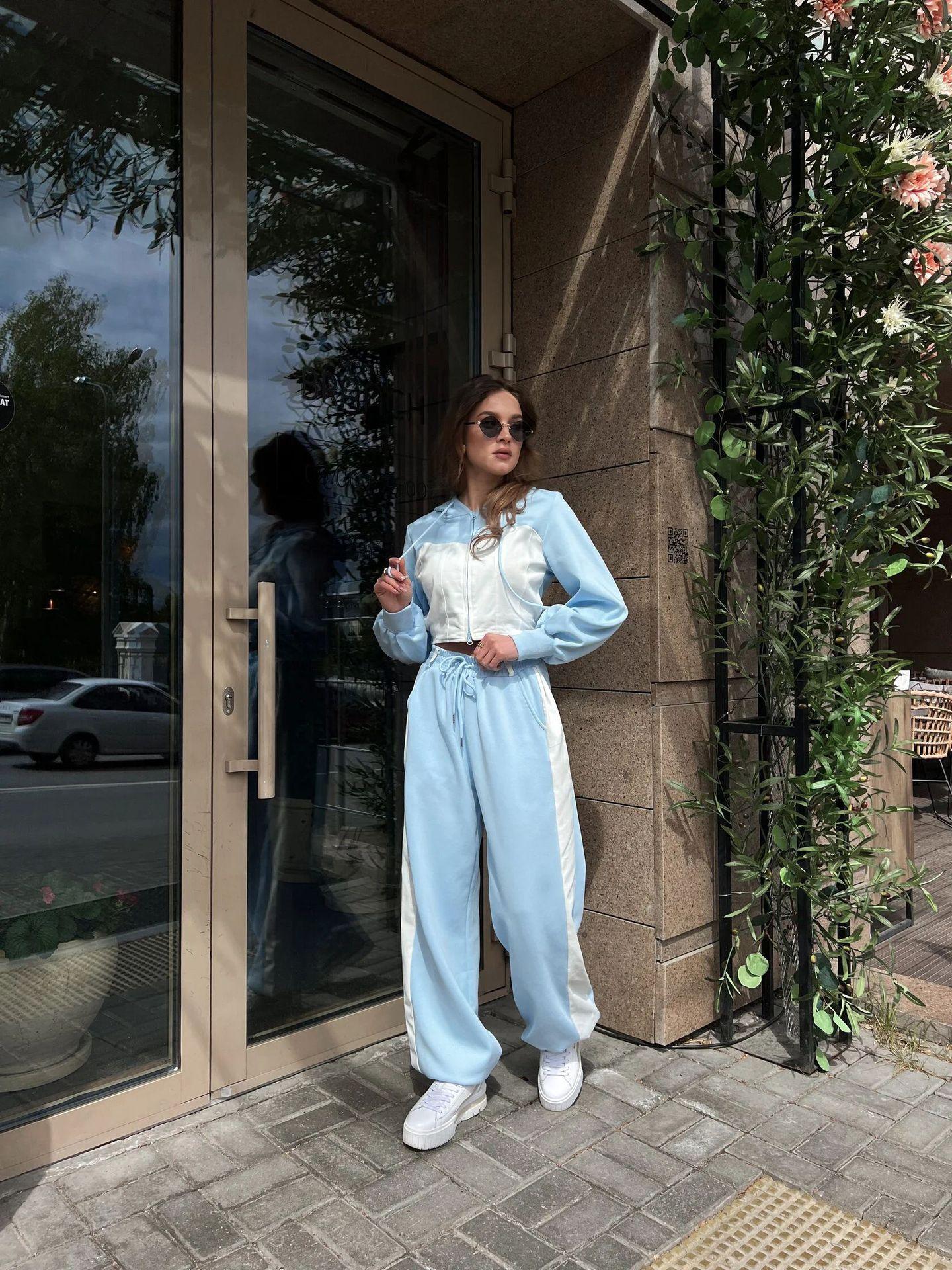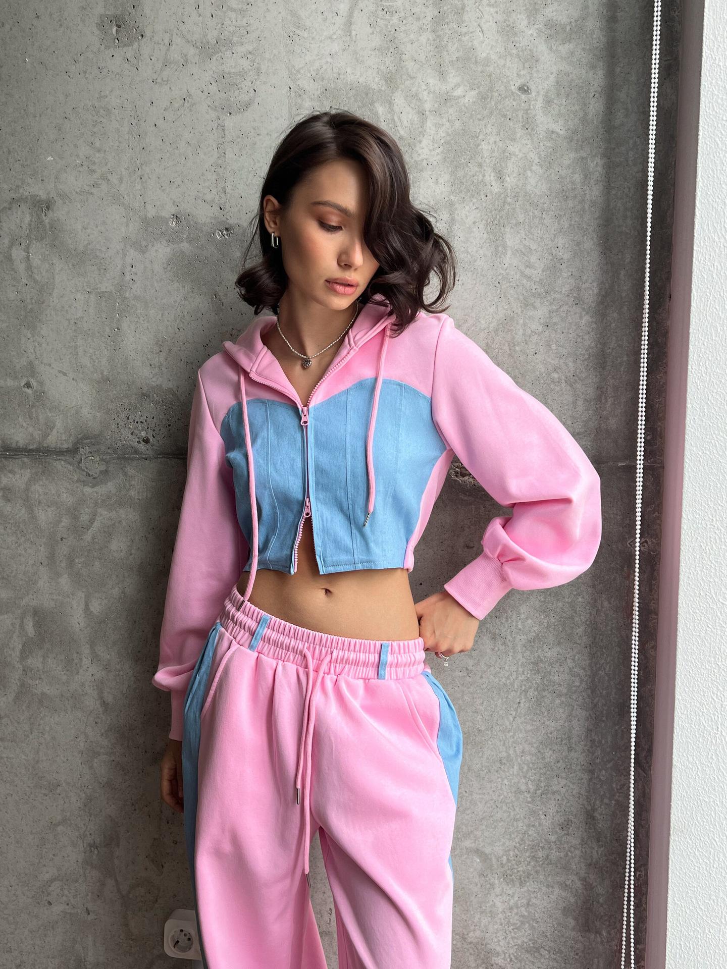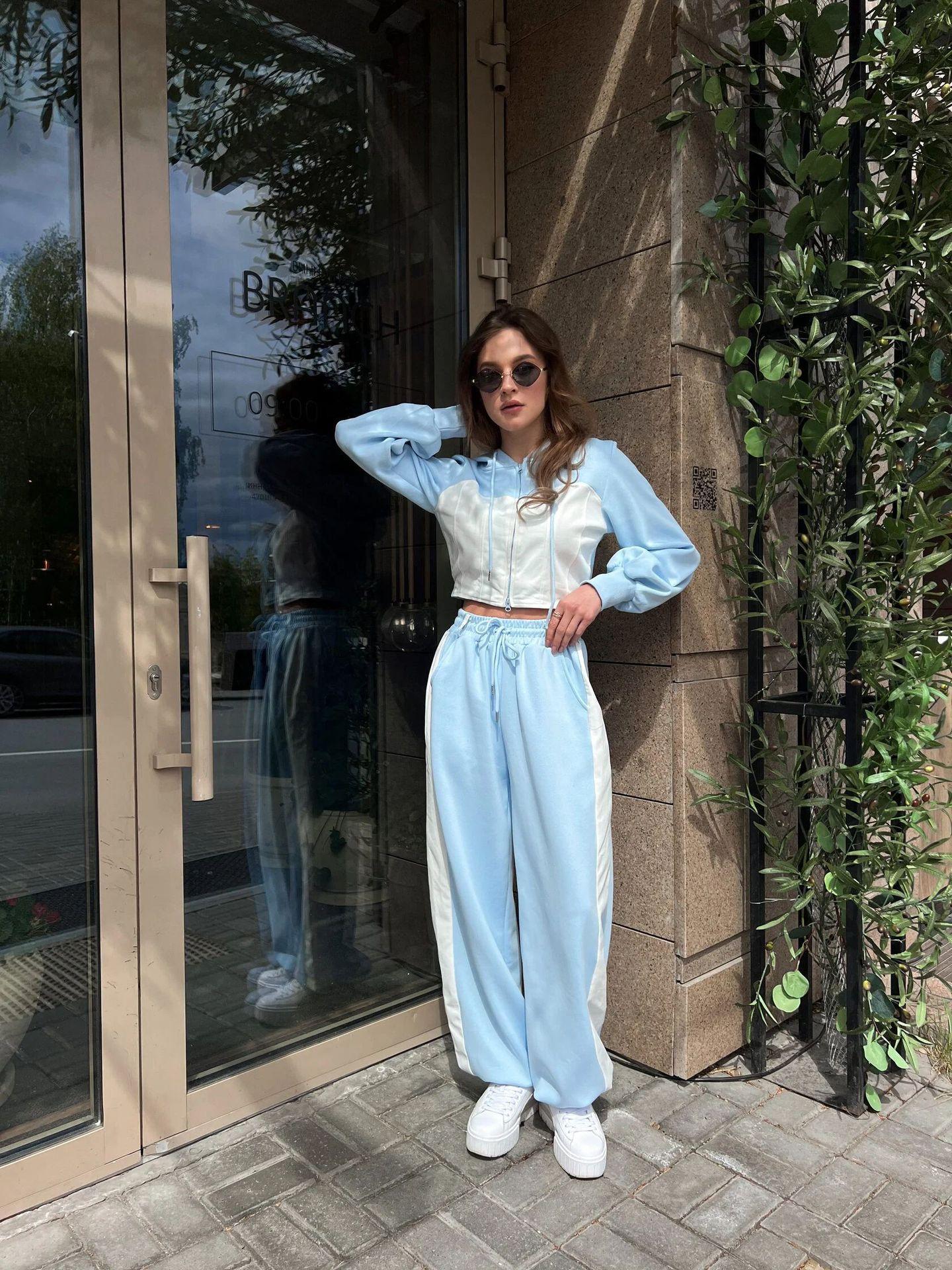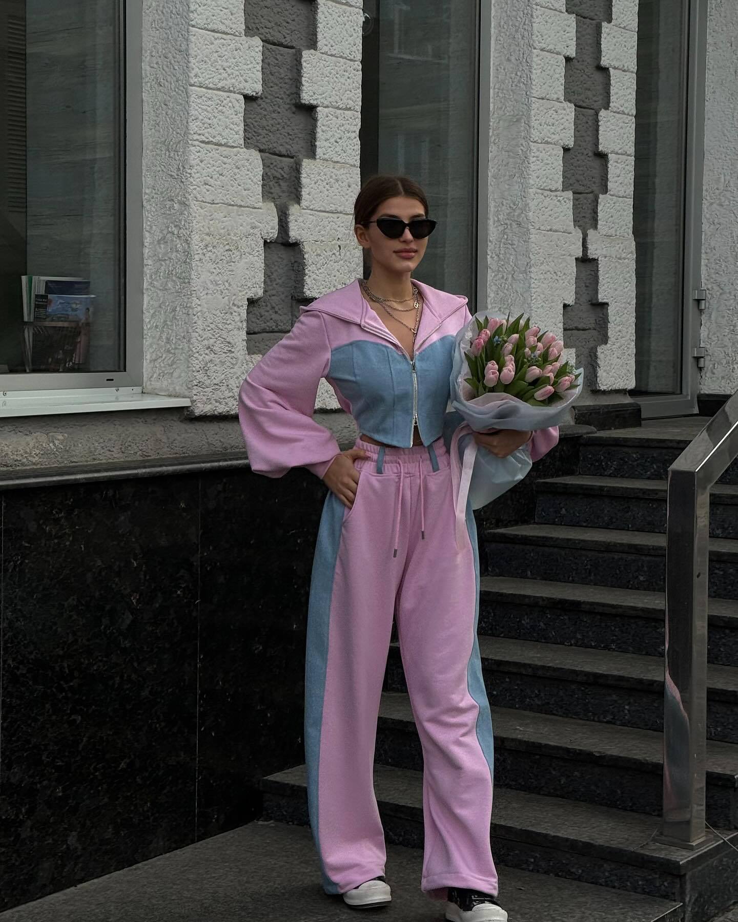 Amazon comercio exterior traje de moda de combinación de colores para mujer europea y americana sexy cintura descubierta sudadera con capucha cárdigan de contraste pantalones deportivos dos piezas
