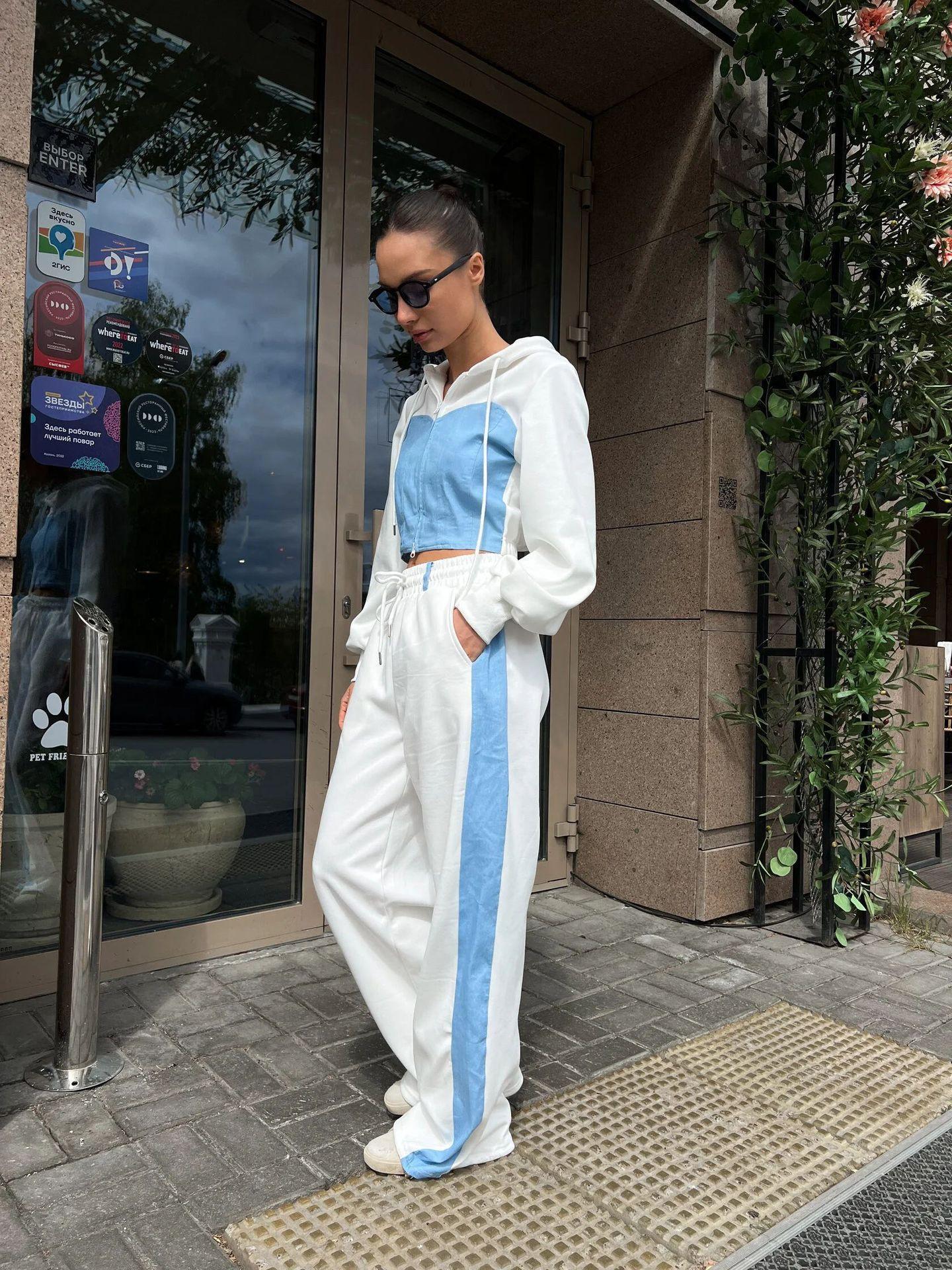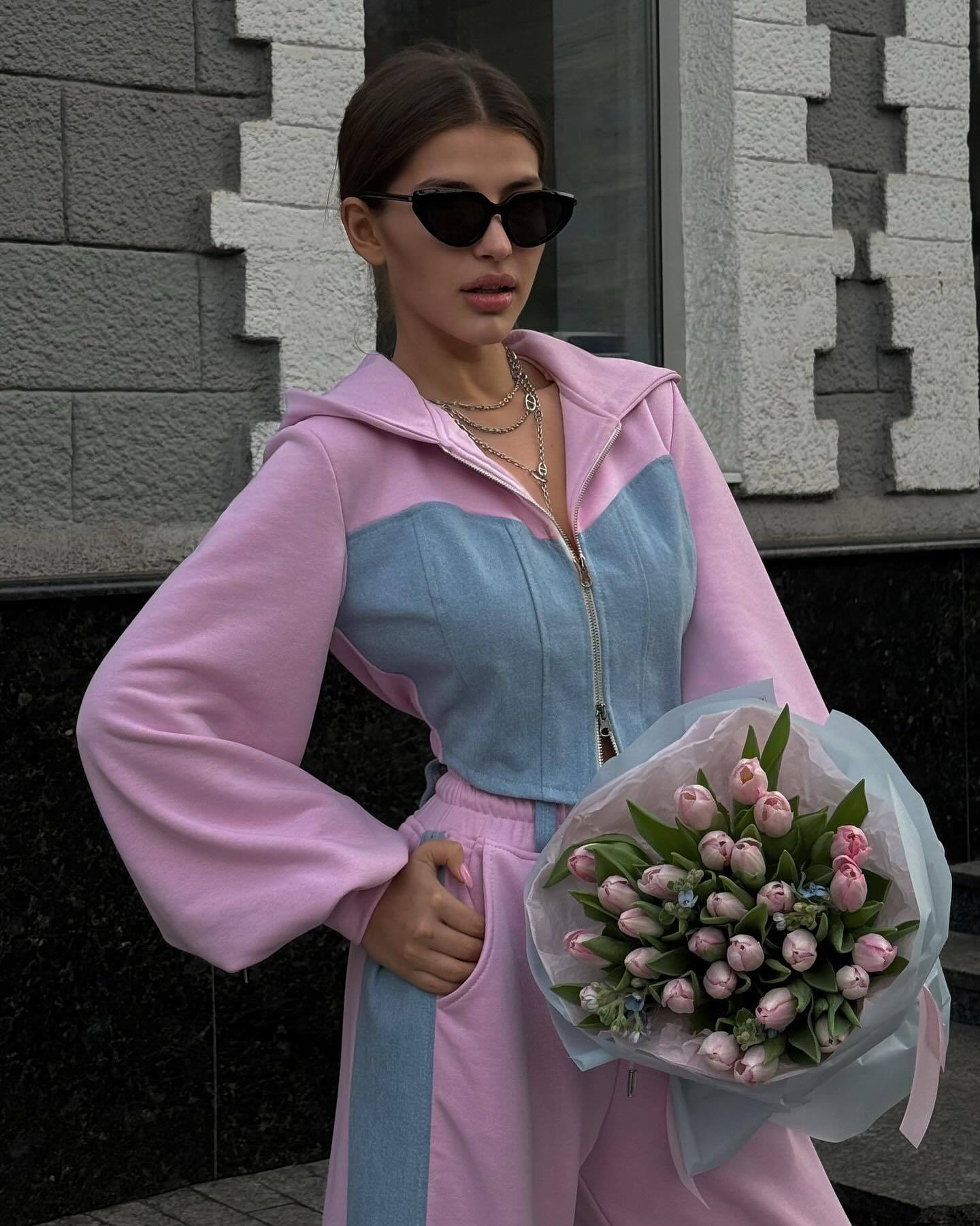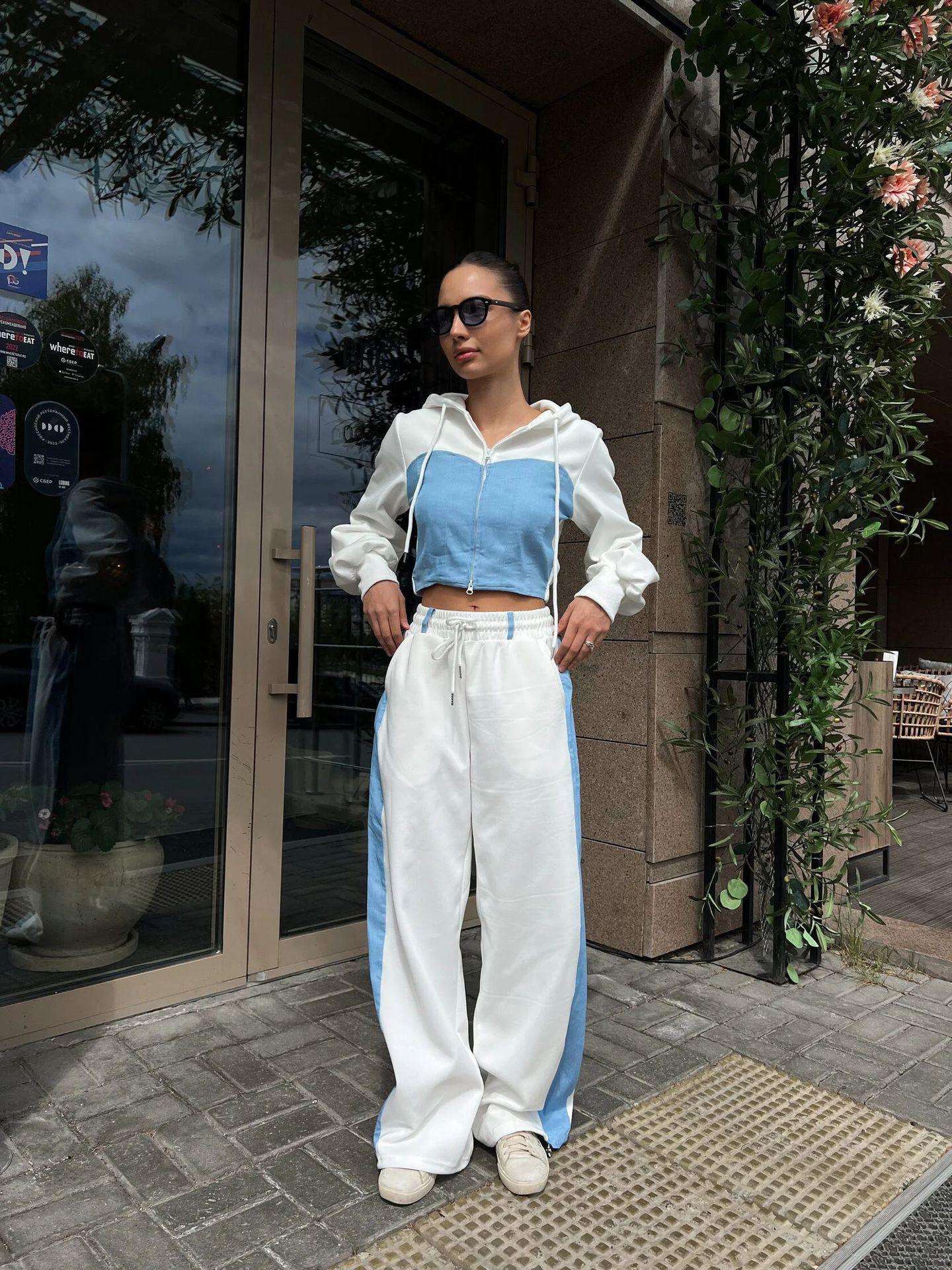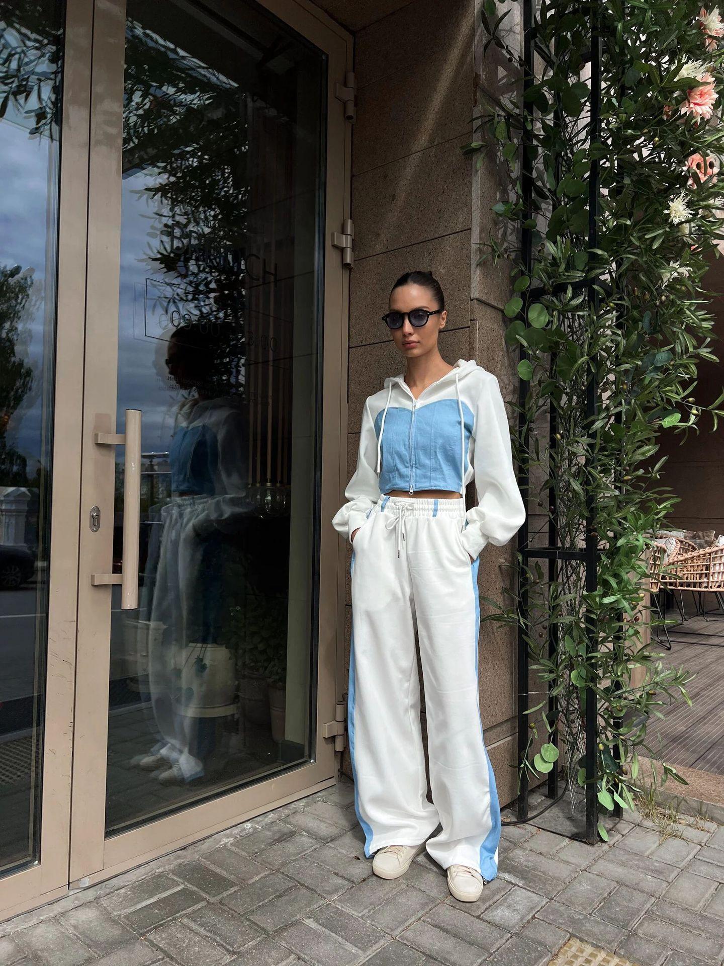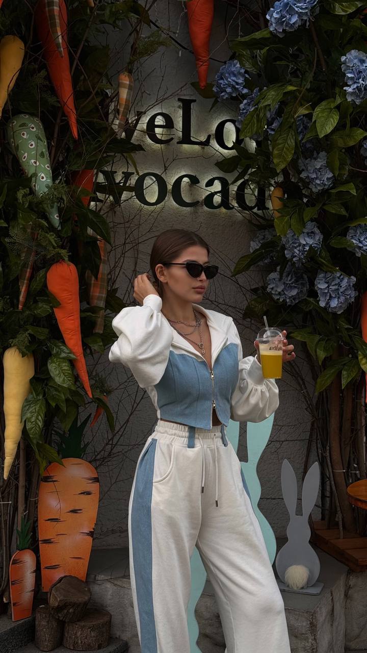 Amazon comercio exterior traje de moda de combinación de colores para mujer europea y americana sexy cintura descubierta sudadera con capucha cárdigan de contraste pantalones deportivos dos piezas