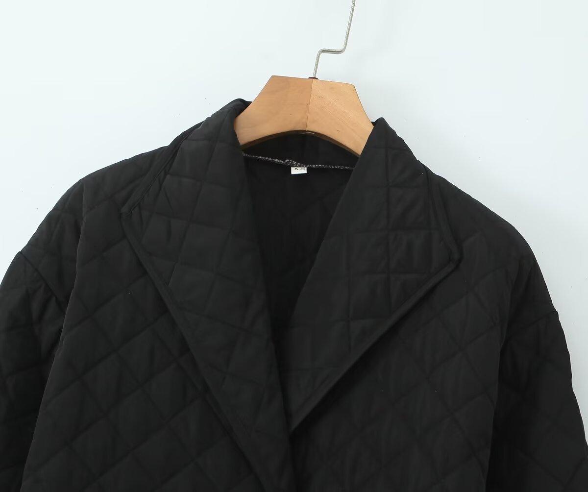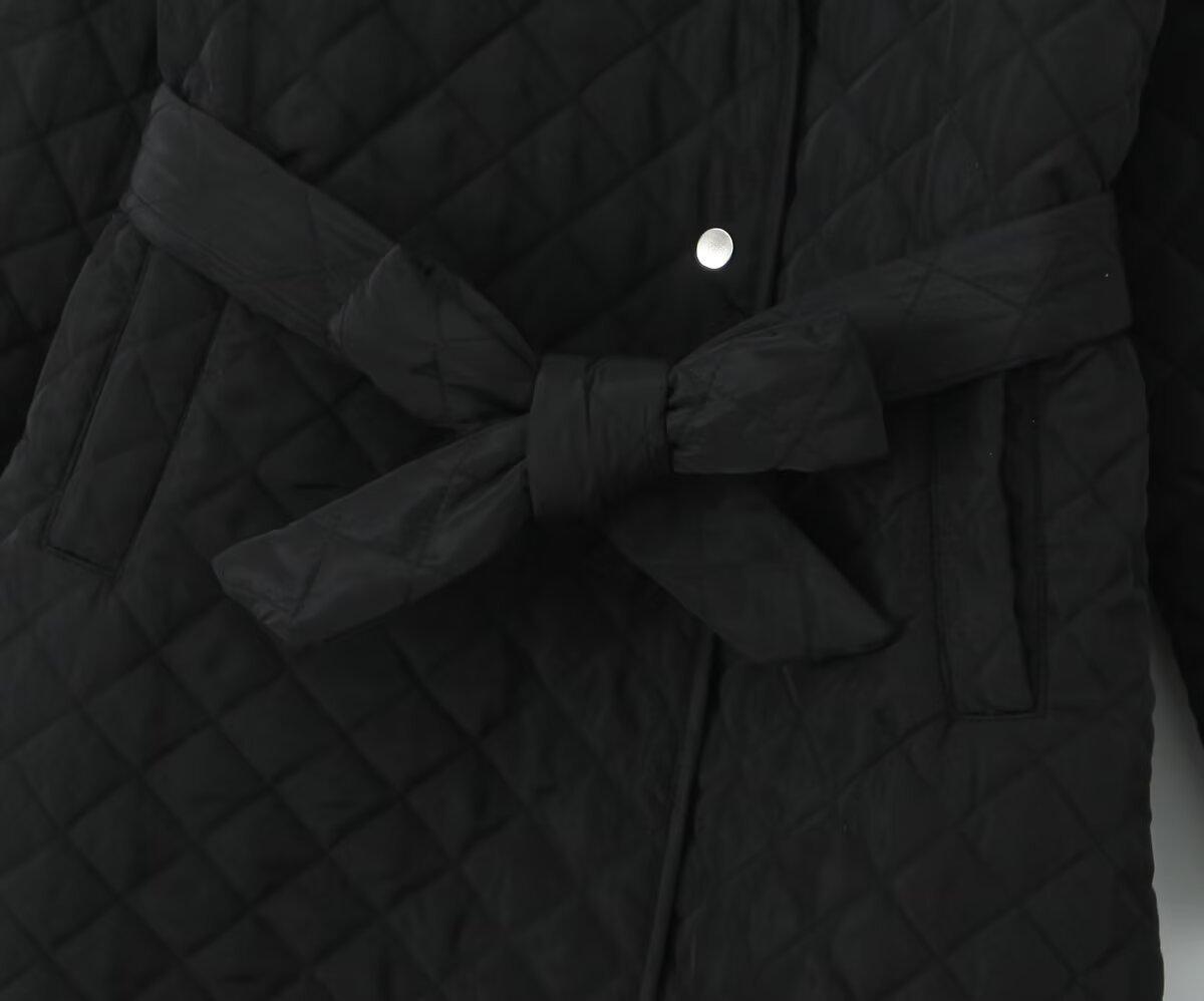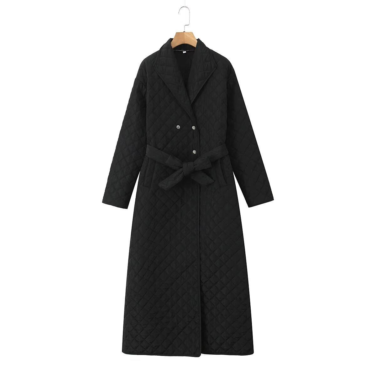 2024 otoño nuevo abrigo largo de algodón sencillo de moda estilo europeo y americano para mujer con cinturón doble botonadura