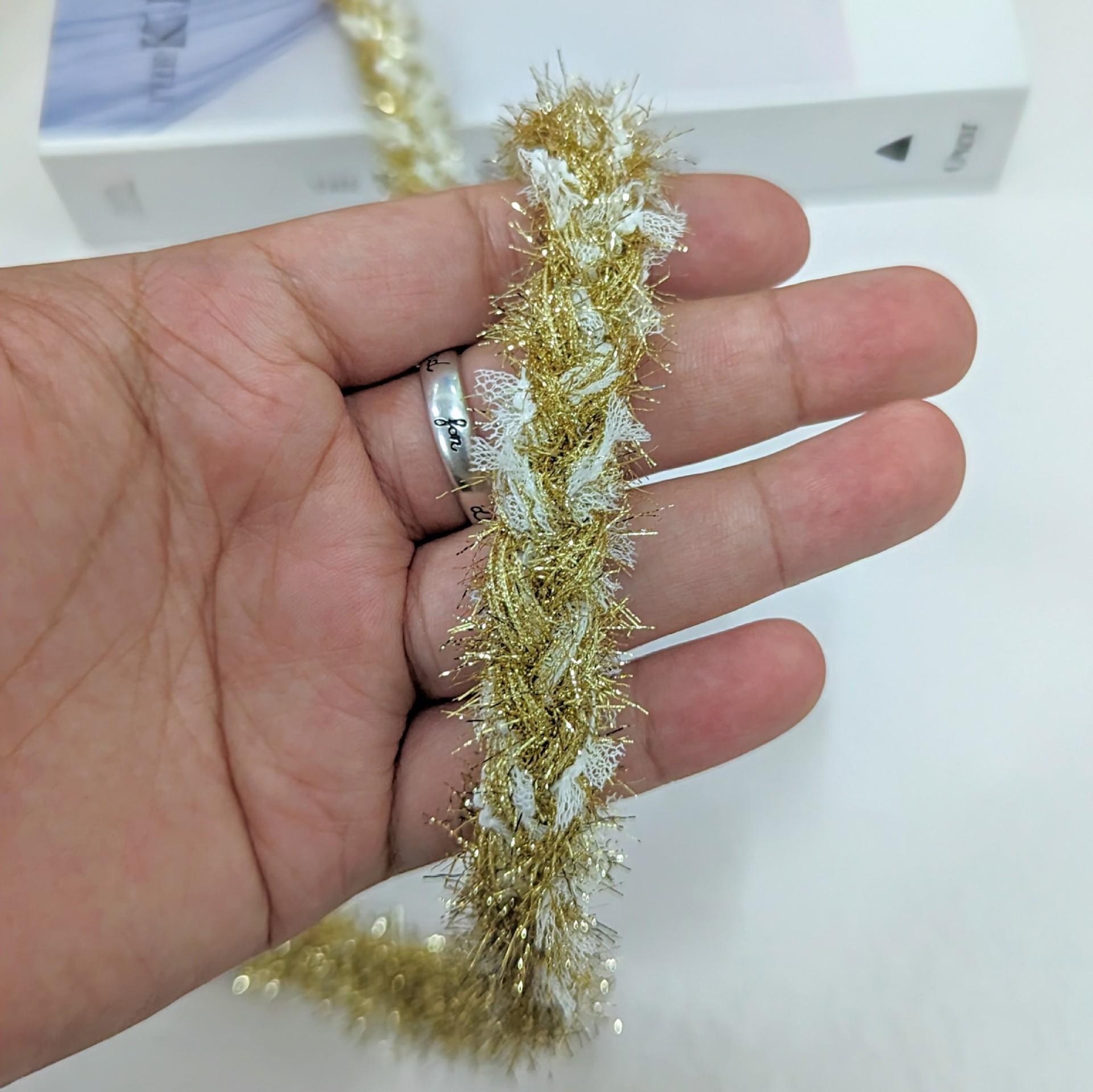 Estilo Chanel trenza retorcida dorada encaje hilo dorado y plateado tapeta decorativa diy ropa hecha a mano abrigo suéter auxiliar