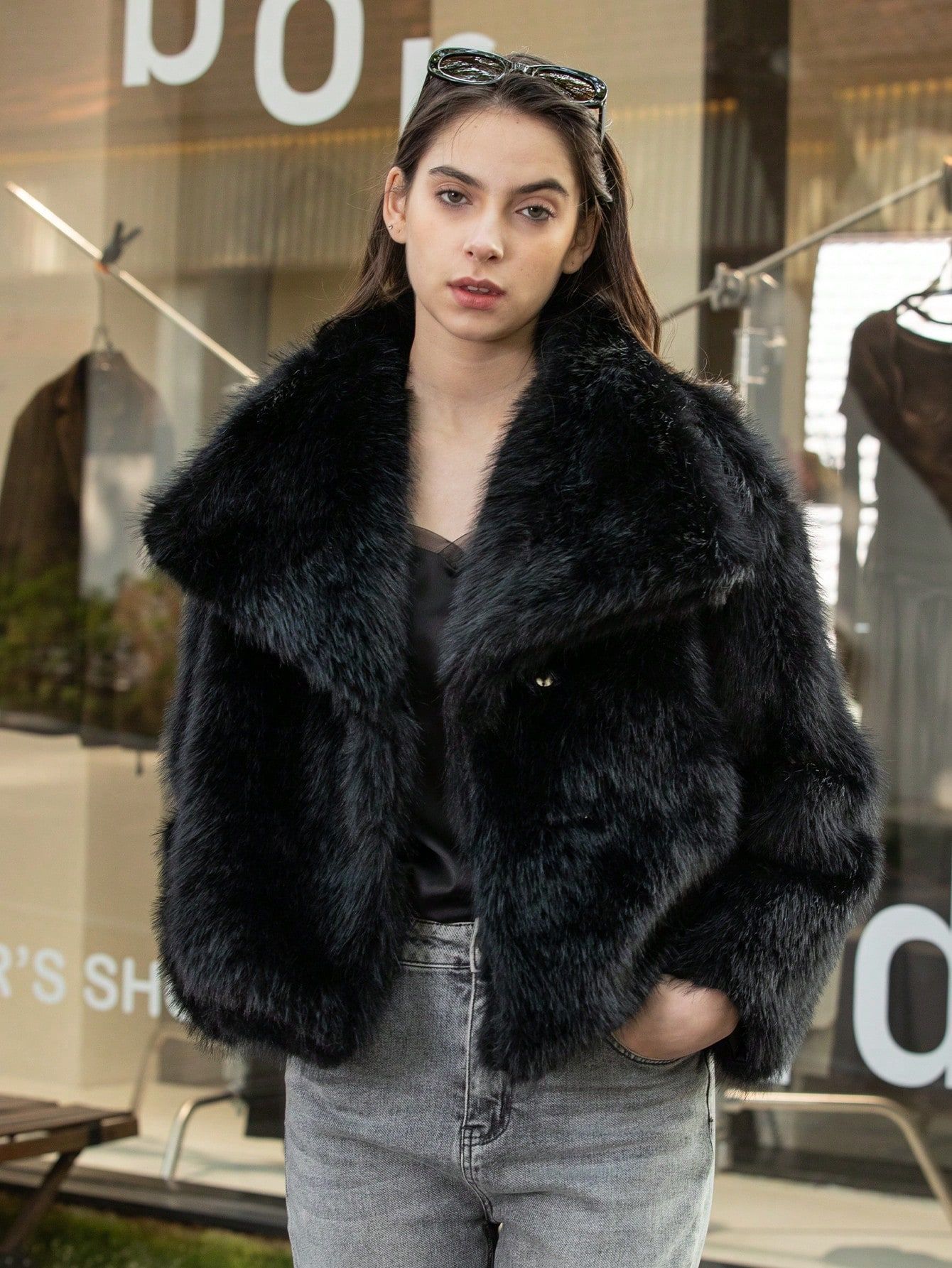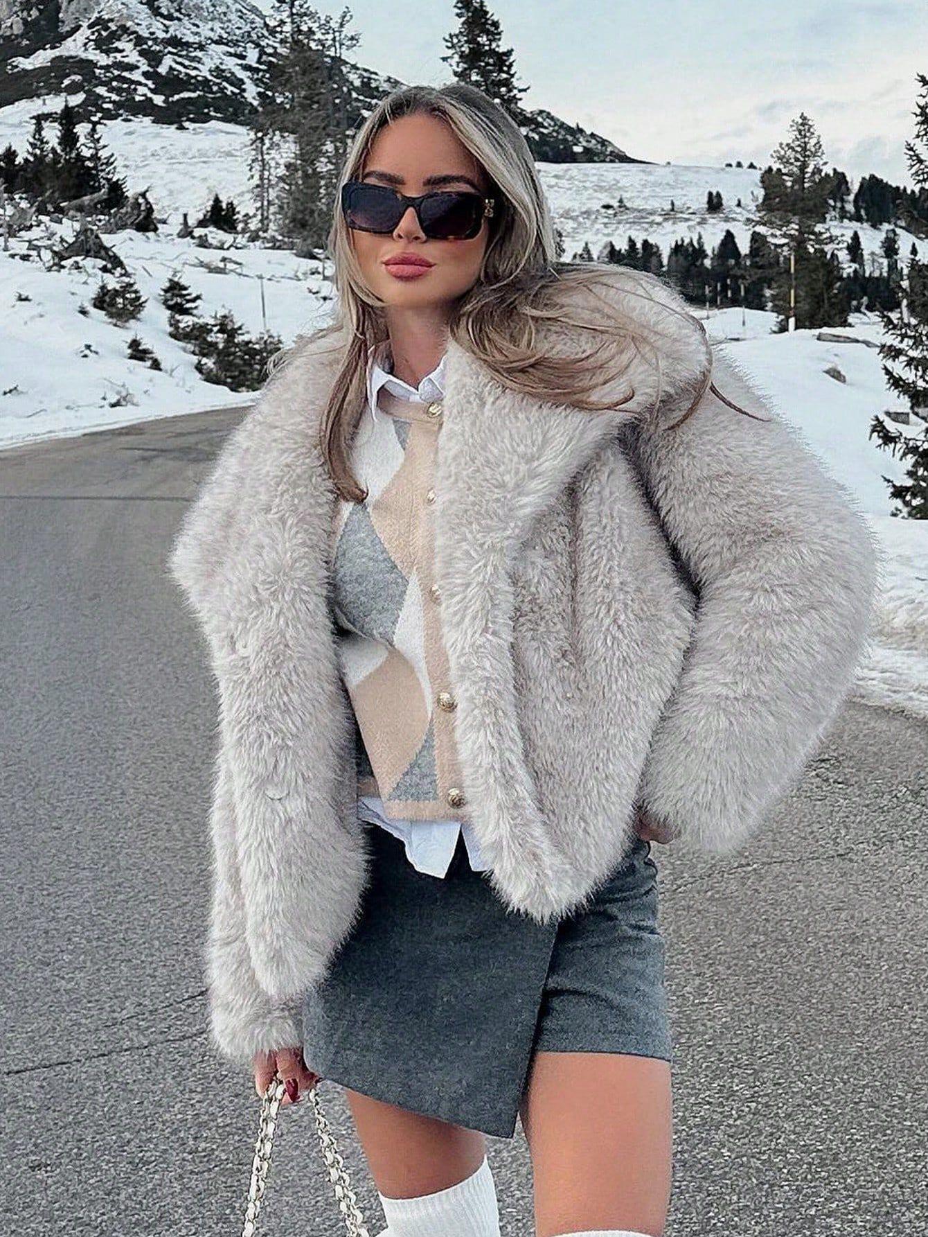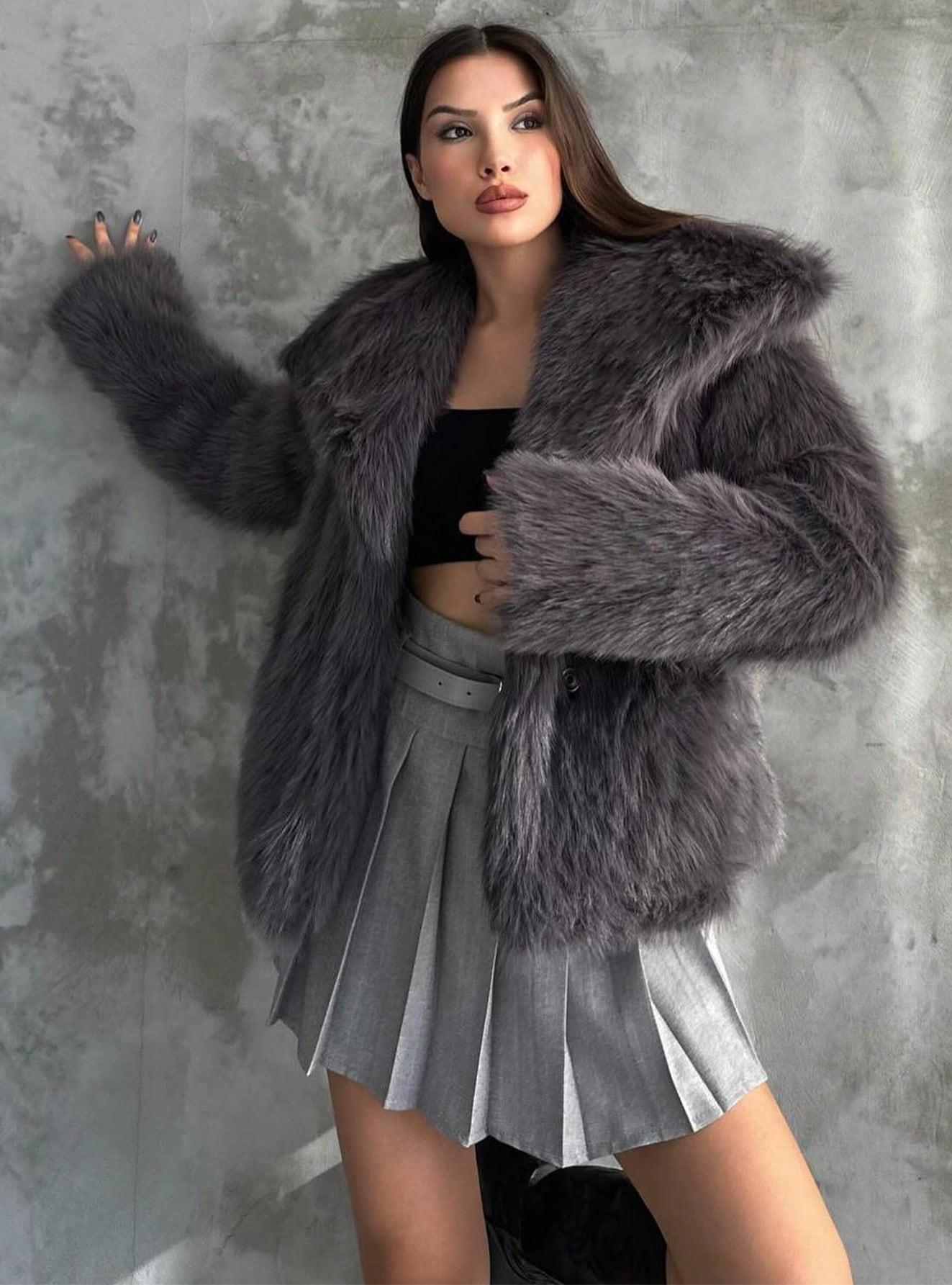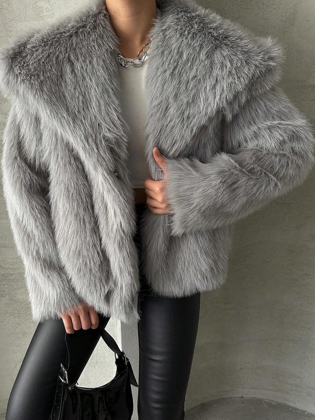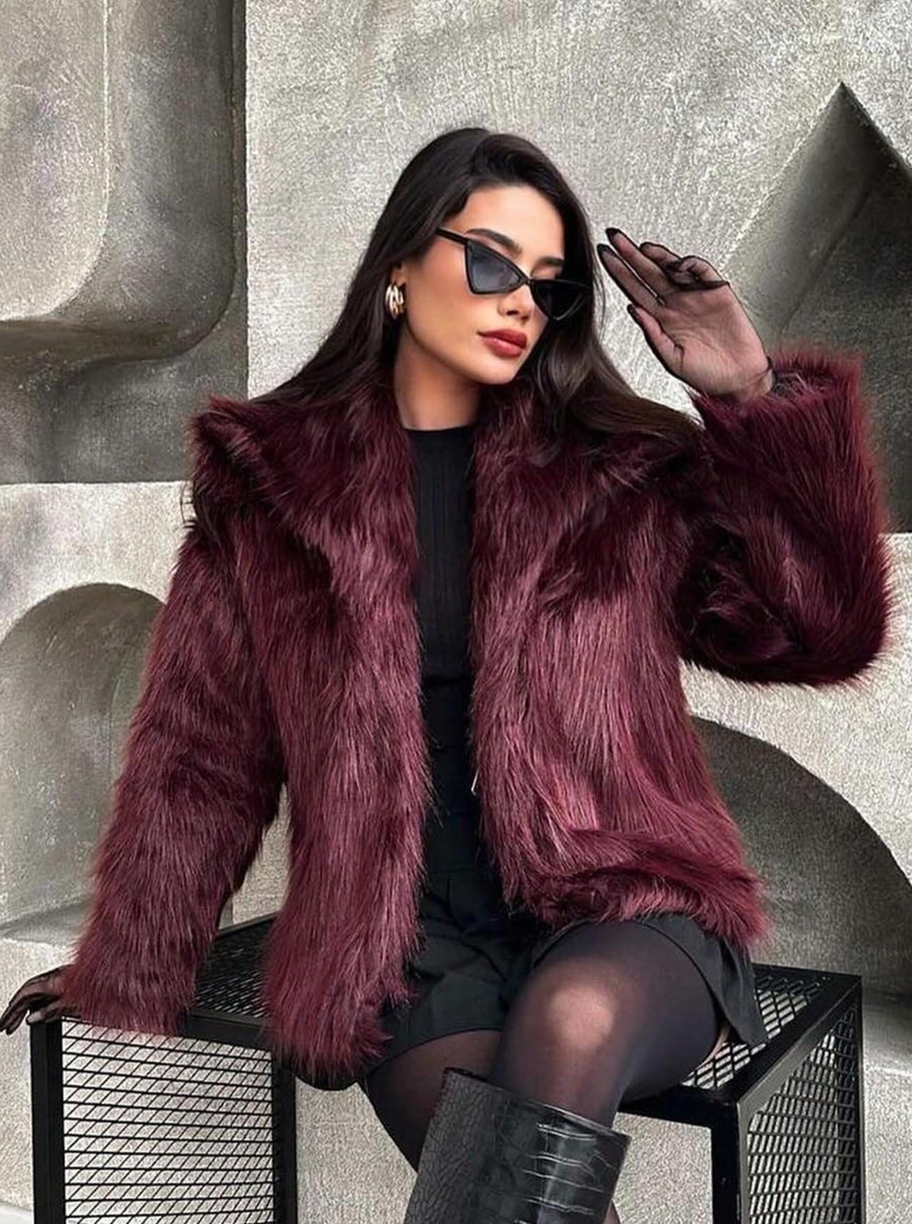 Amazon Transfronterizo Ins Popular Chaqueta de Solapa de Piel Sintética Suelta de Moda Europea y Americana Nueva de Primavera para Mujer