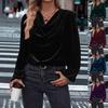 Ropa de Mujer Otoño e Invierno Transfronteriza Europea y Americana Amazon Aliexpress Tops Manga Larga Acanalada Cepillada Suelta Moderna Versátil