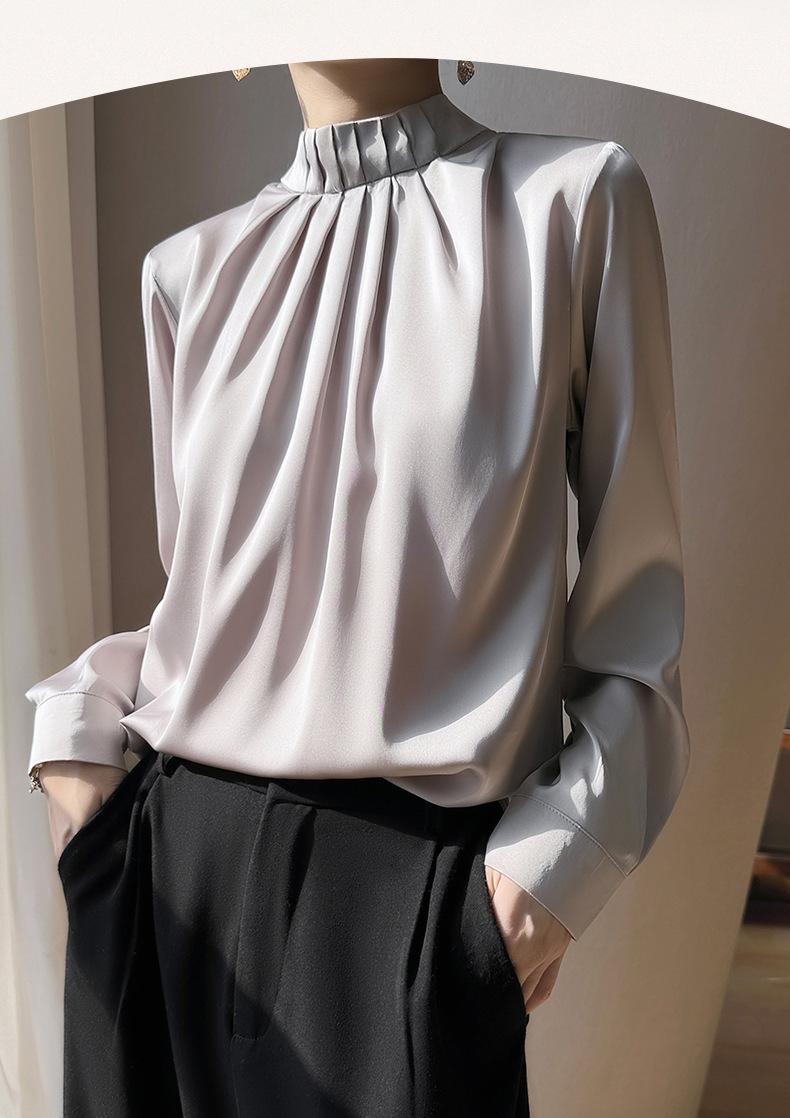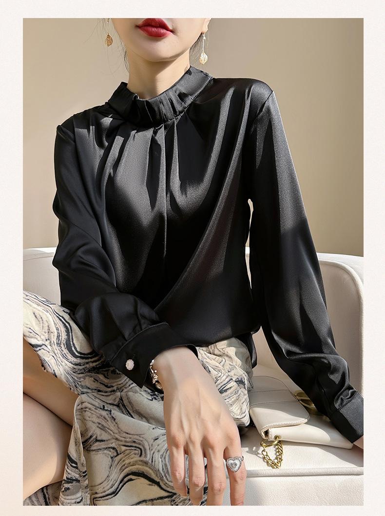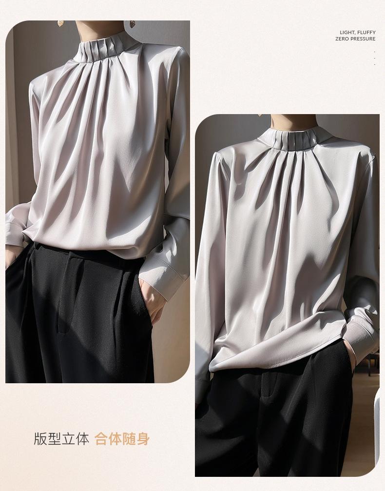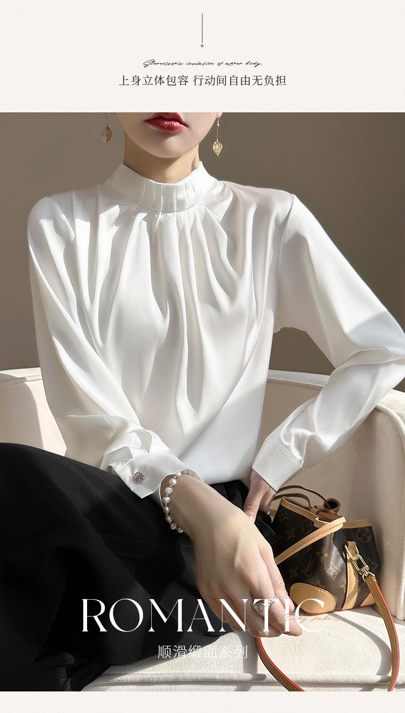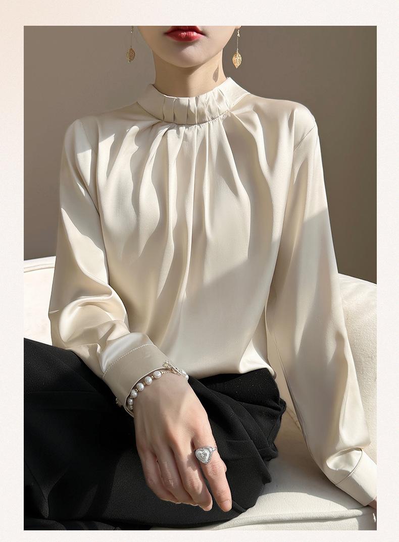 Venta al por mayor, elegante camisa de color sólido, camisa de diseño para mujer, camisa de nicho con sentido del diseño, nueva moda de primavera 2024, camisa de manga larga para mujer, pequeña