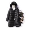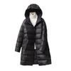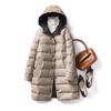 Nueva chaqueta de plumón con capucha de doble cara de otoño e invierno transfronteriza para mujer, chaqueta de plumón de pato blanco ligero adhesivo de longitud media 90