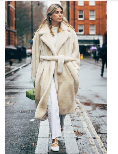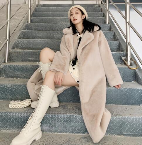 Abrigo de piel de visón de conejo largo de gran tamaño nuevo de otoño e invierno europeo y americano, abrigo cálido estilo abrigo de mujer