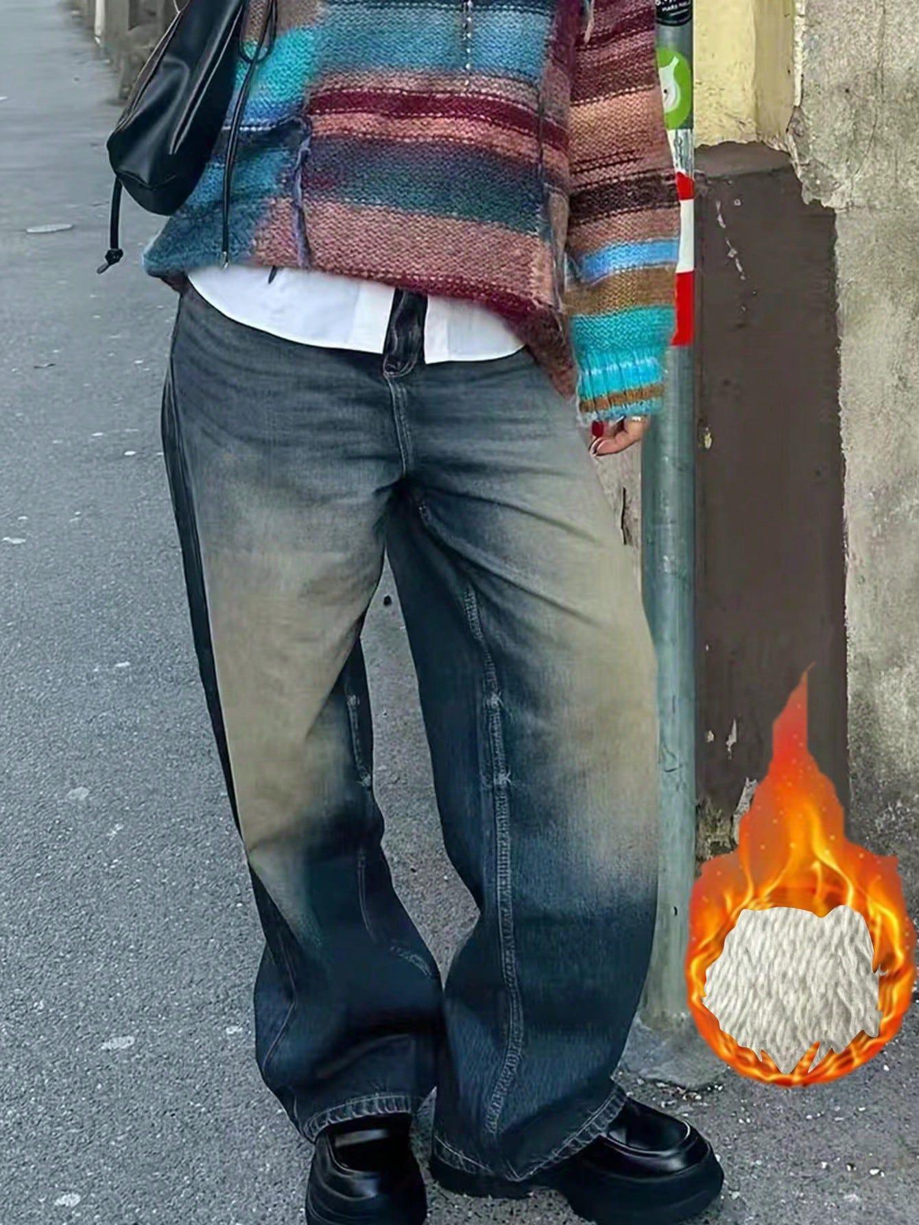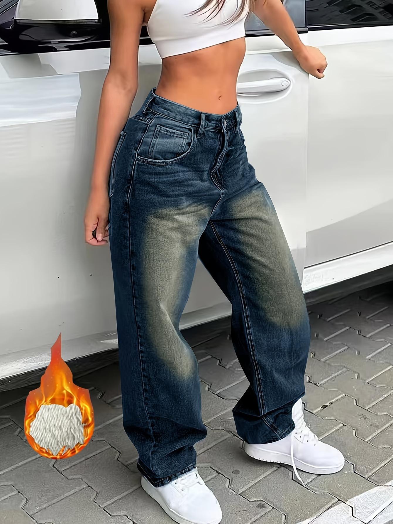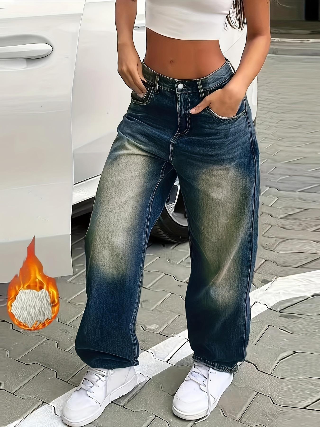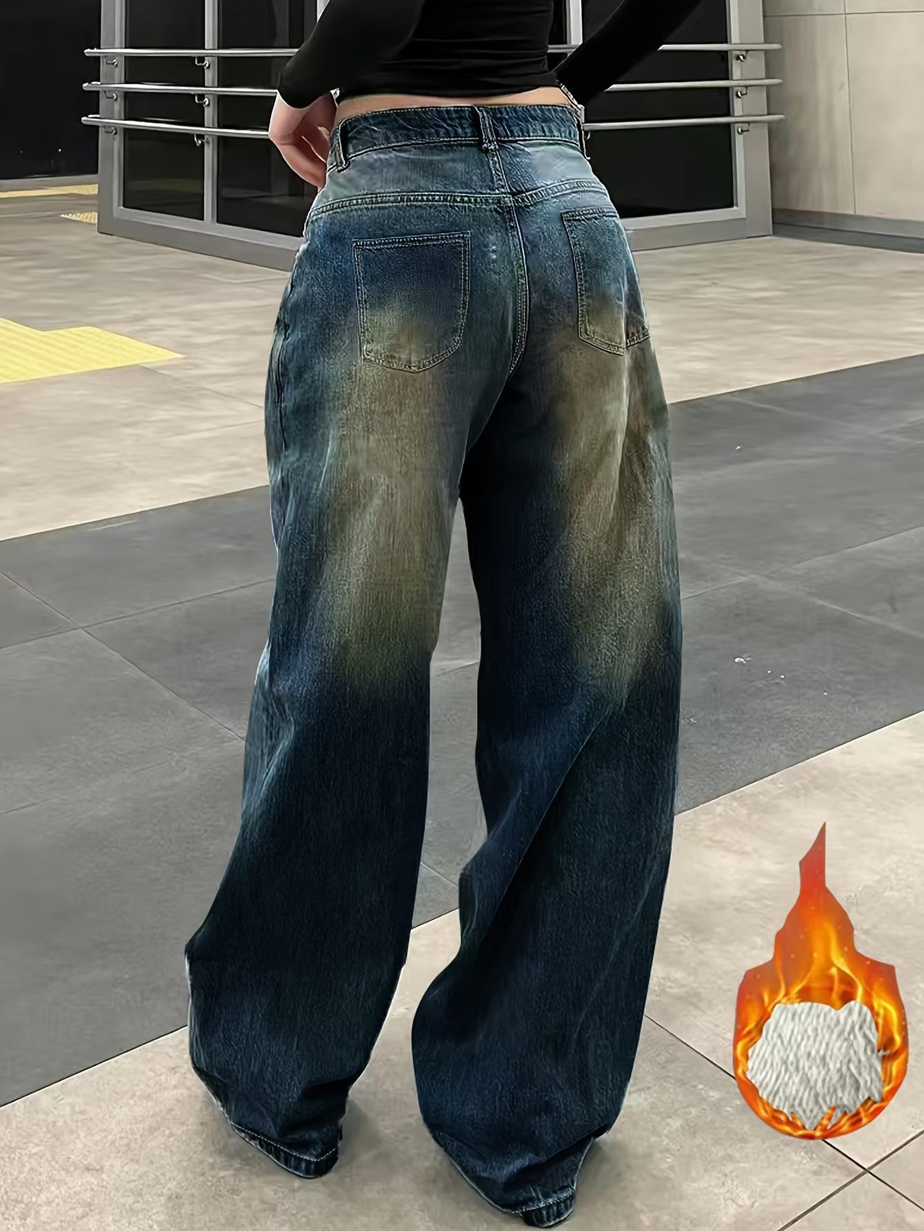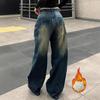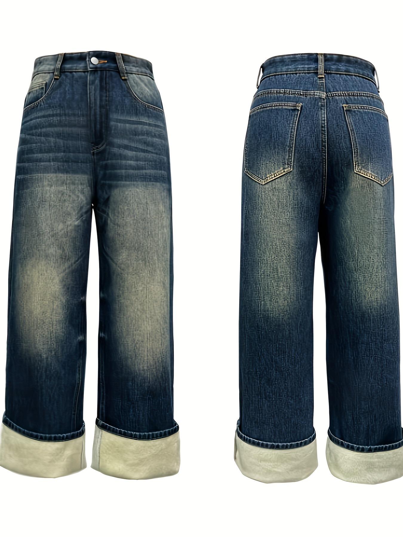 Vaqueros holgados y ajustados con forro polar desgastado, estilo retro americano, de Amazon AliExpress, disponibles en el mercado transfronterizo.