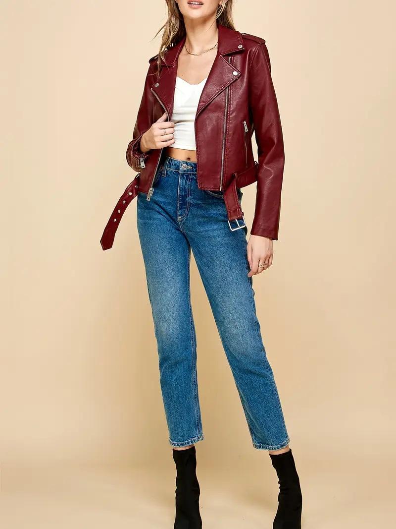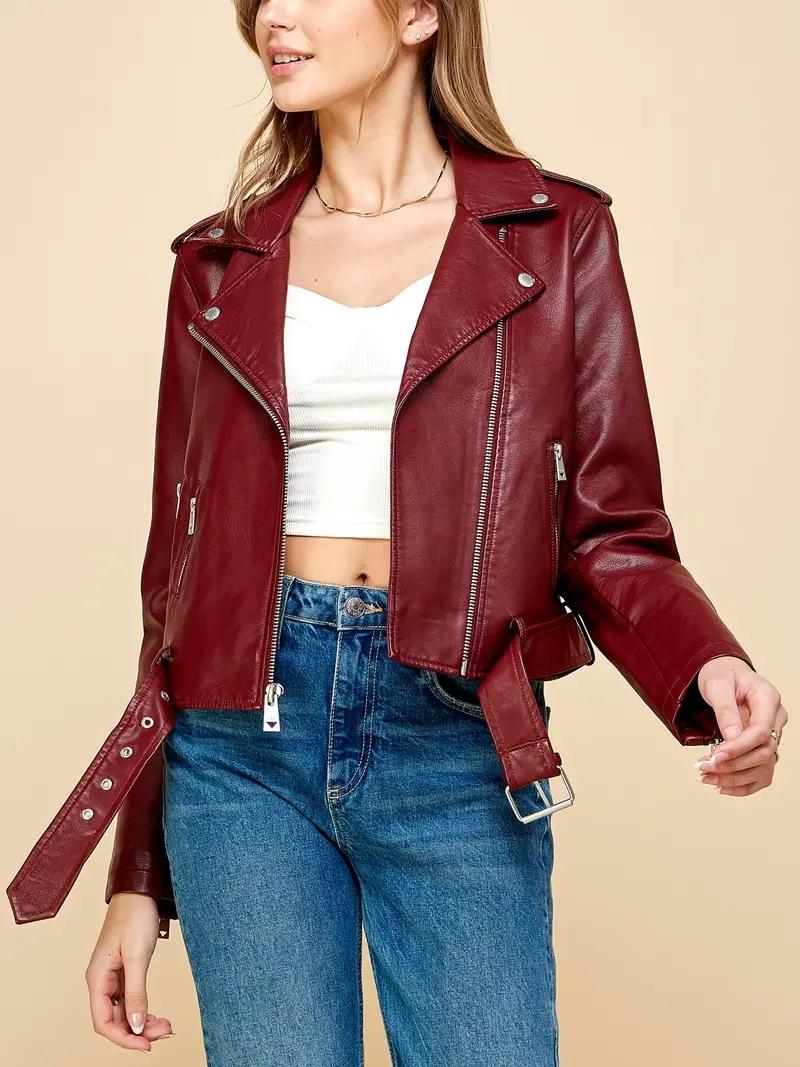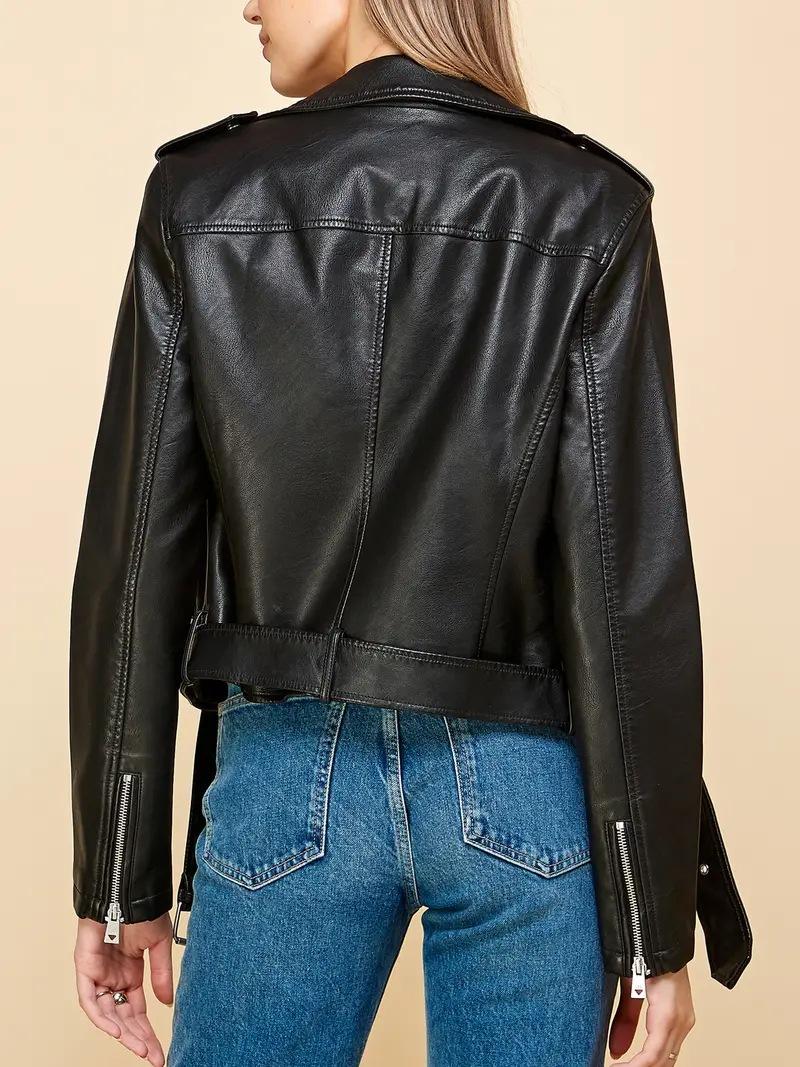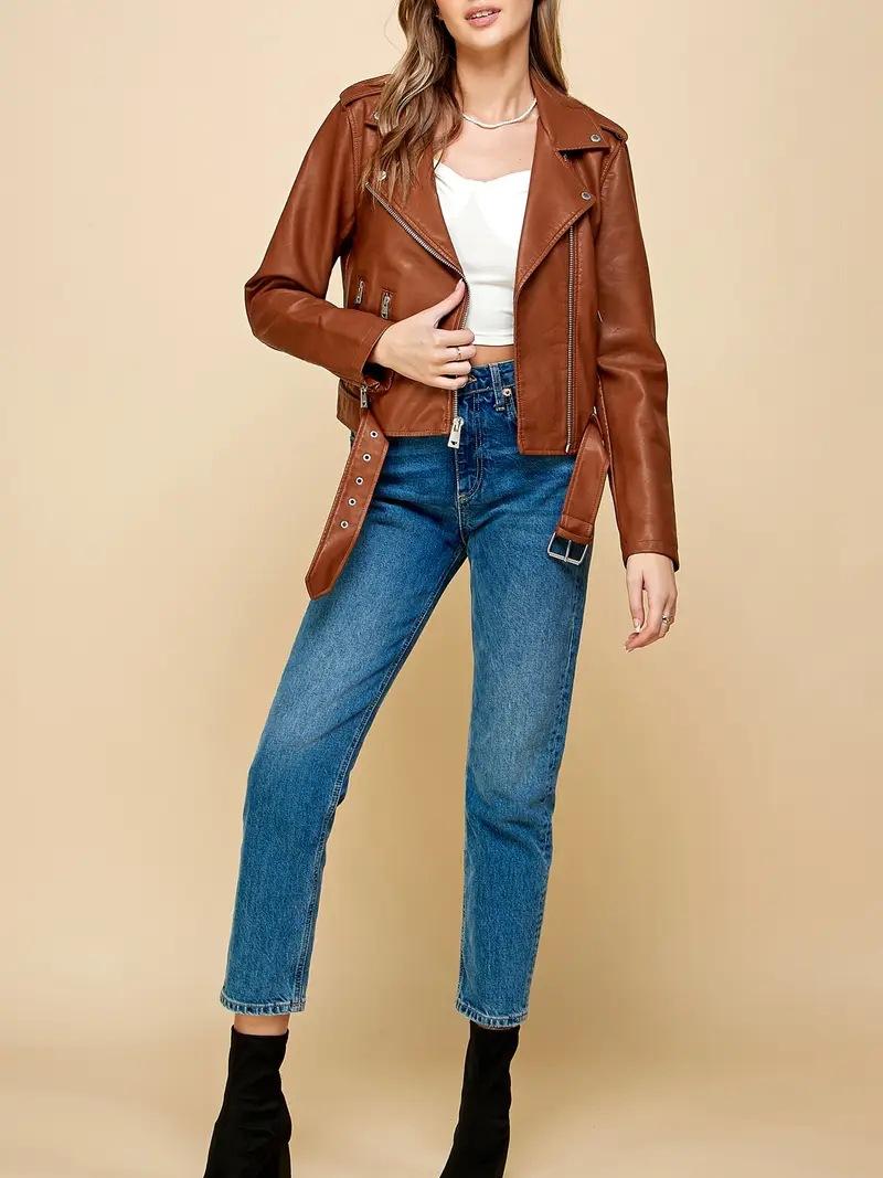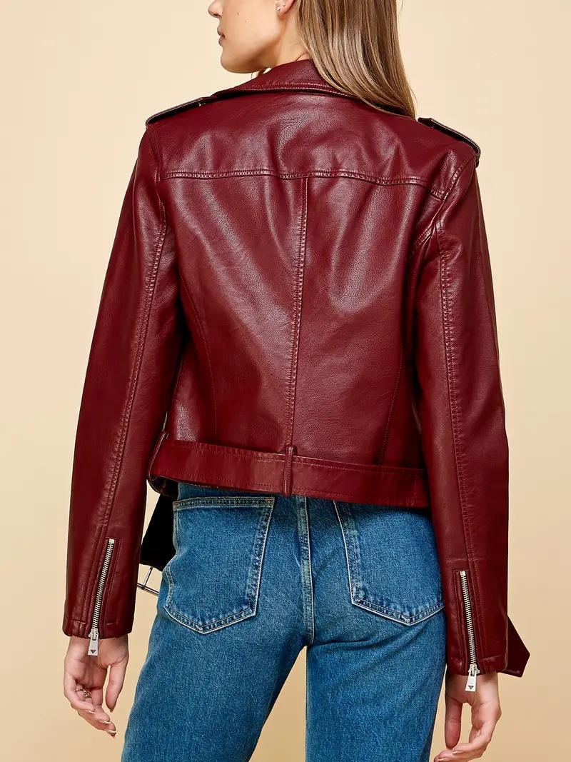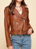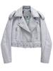 2024 Nuevo Transfronterizo Chaqueta Corta de Cuero PU para Mujer Europea y Americana Moda Retro Otoño Chaqueta de Cuero para Moto