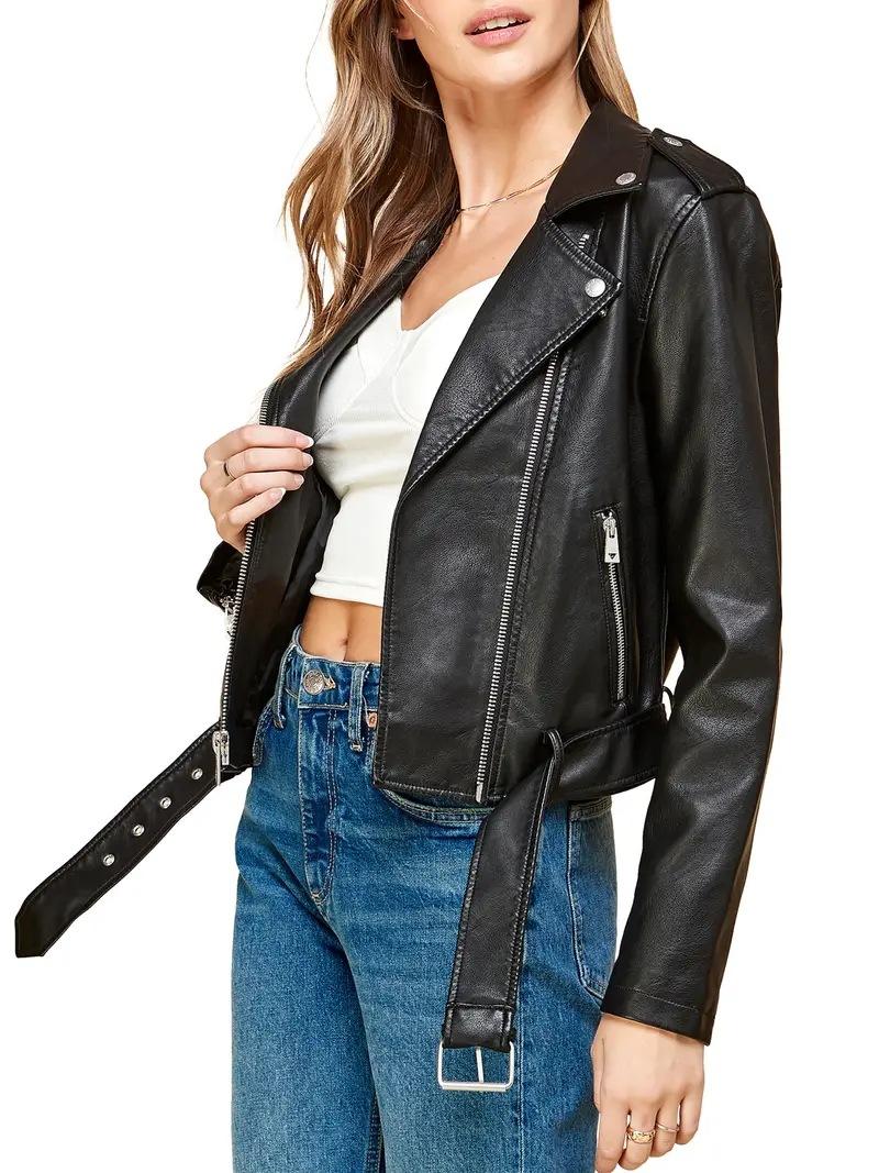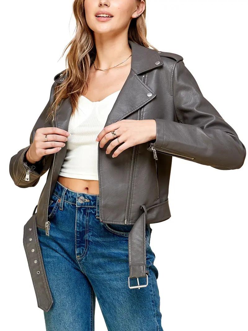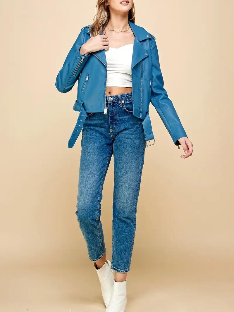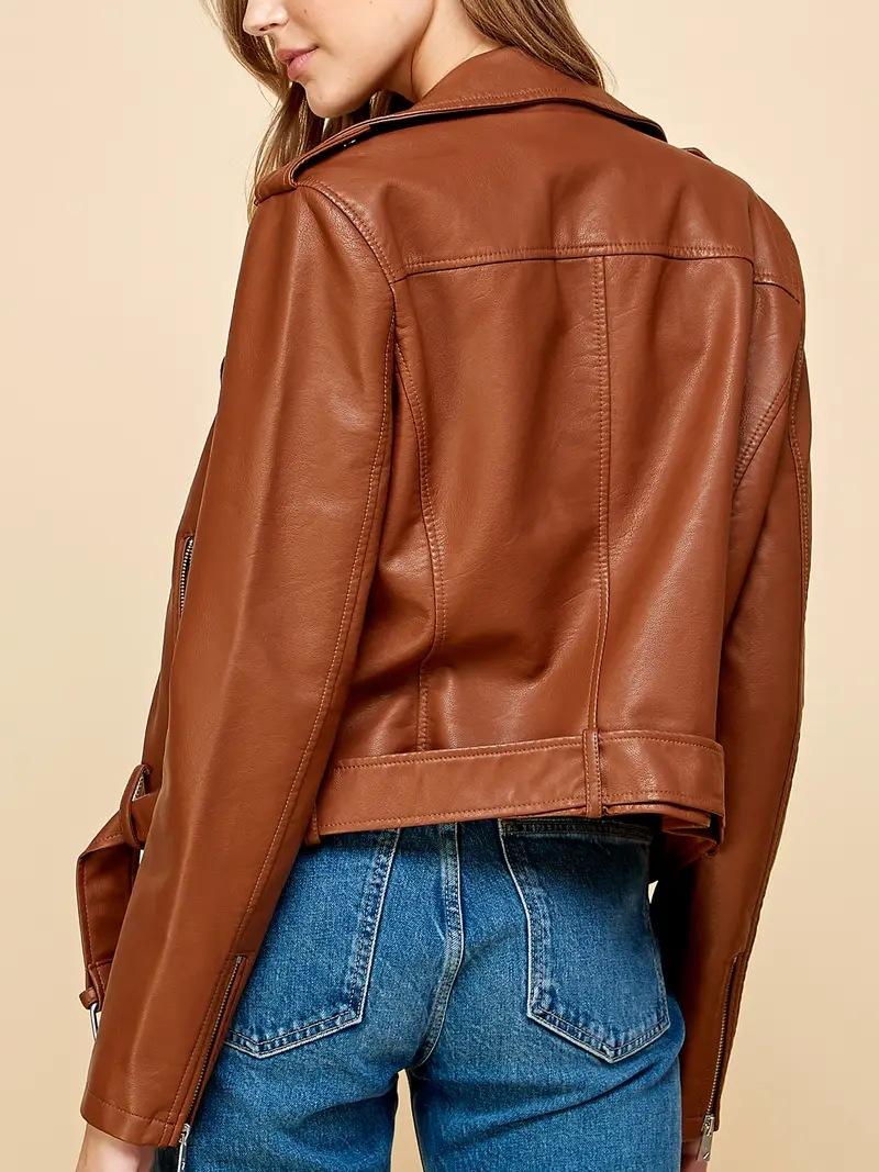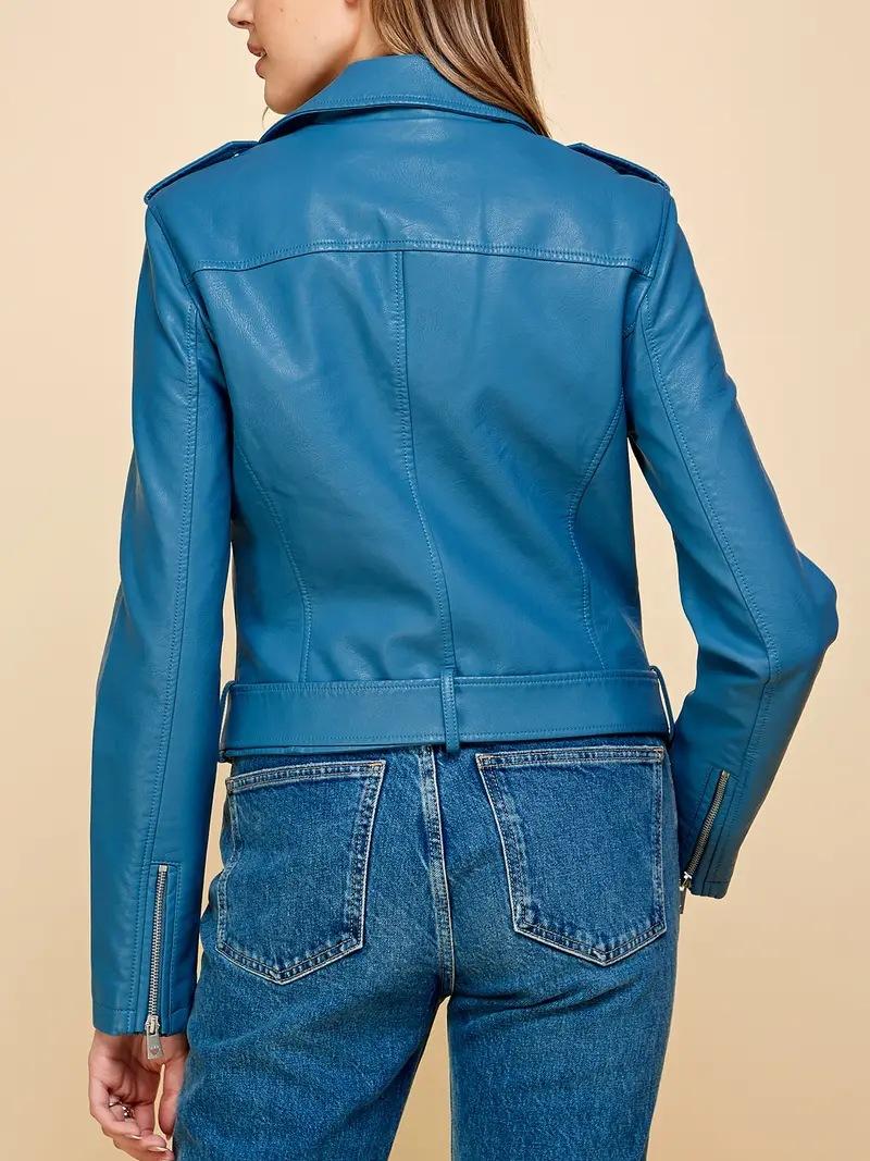 2024 Nuevo Transfronterizo Chaqueta Corta de Cuero PU para Mujer Europea y Americana Moda Retro Otoño Chaqueta de Cuero para Moto