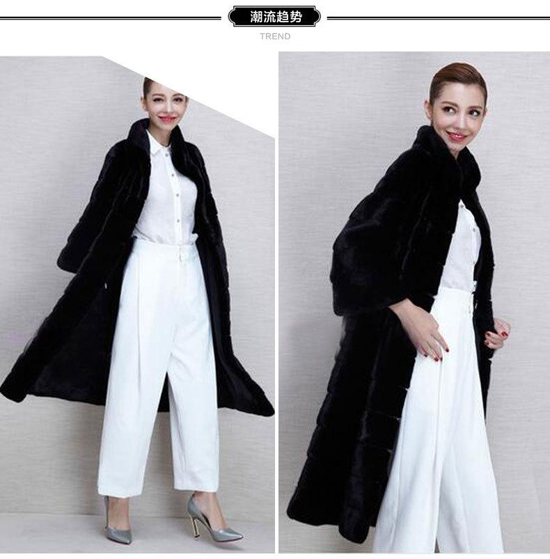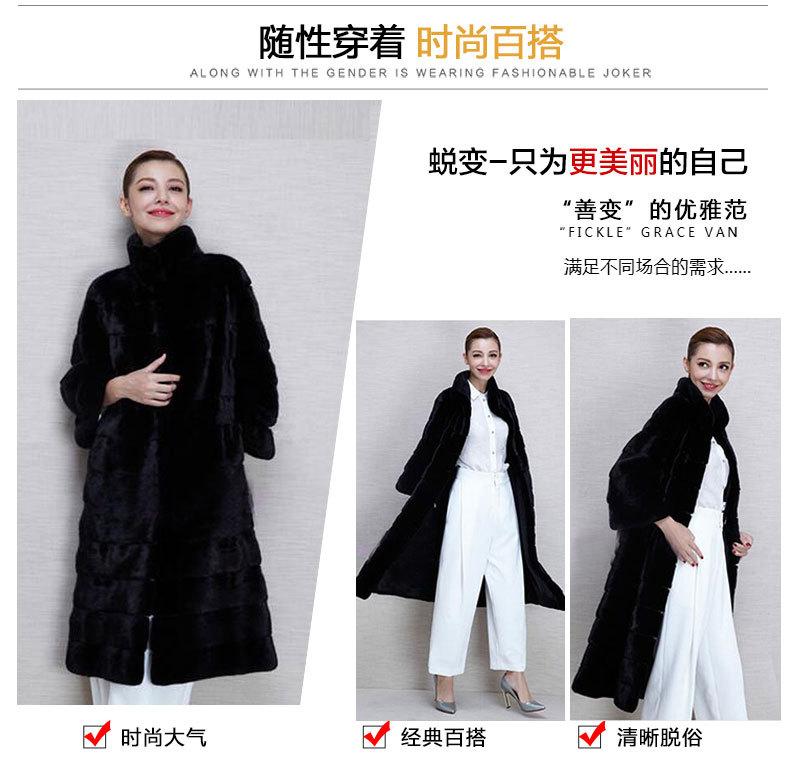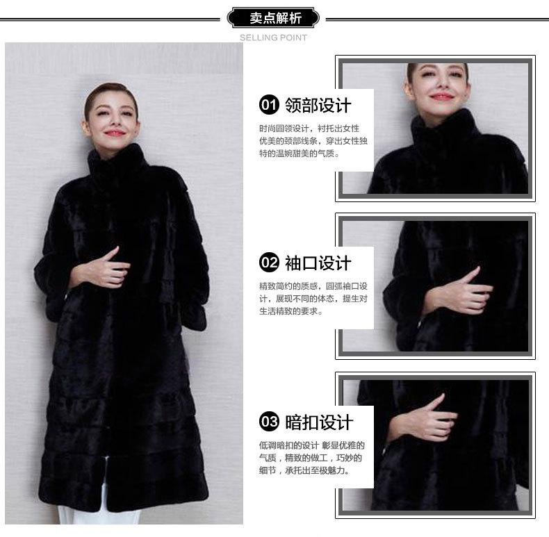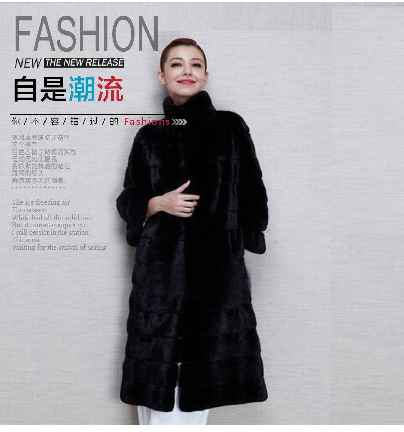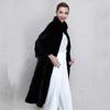 Abrigo de visón al por mayor de piel de Haining, abrigo de piel de visón negro de longitud media con cuello alto para mujer, abrigo de piel