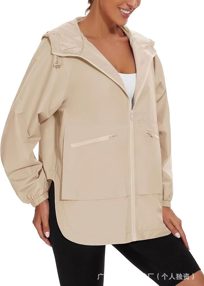 Chaqueta Cortavientos Casual de Manga Larga con Cierre y Capucha para Mujer, Superventas Transfronterizas de Primavera y Otoño 2024
