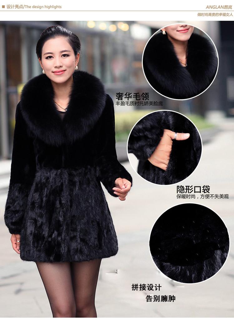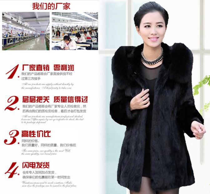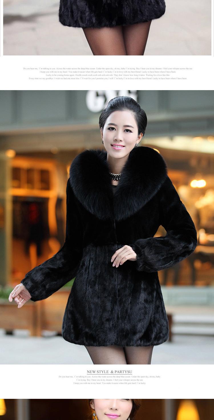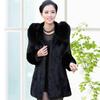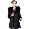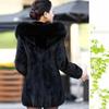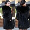 Abrigo de piel Haining para mujer, largo medio, con capucha, imitación de visón, corte entallado, cuello de piel a juego, abrigo de piel para mujer