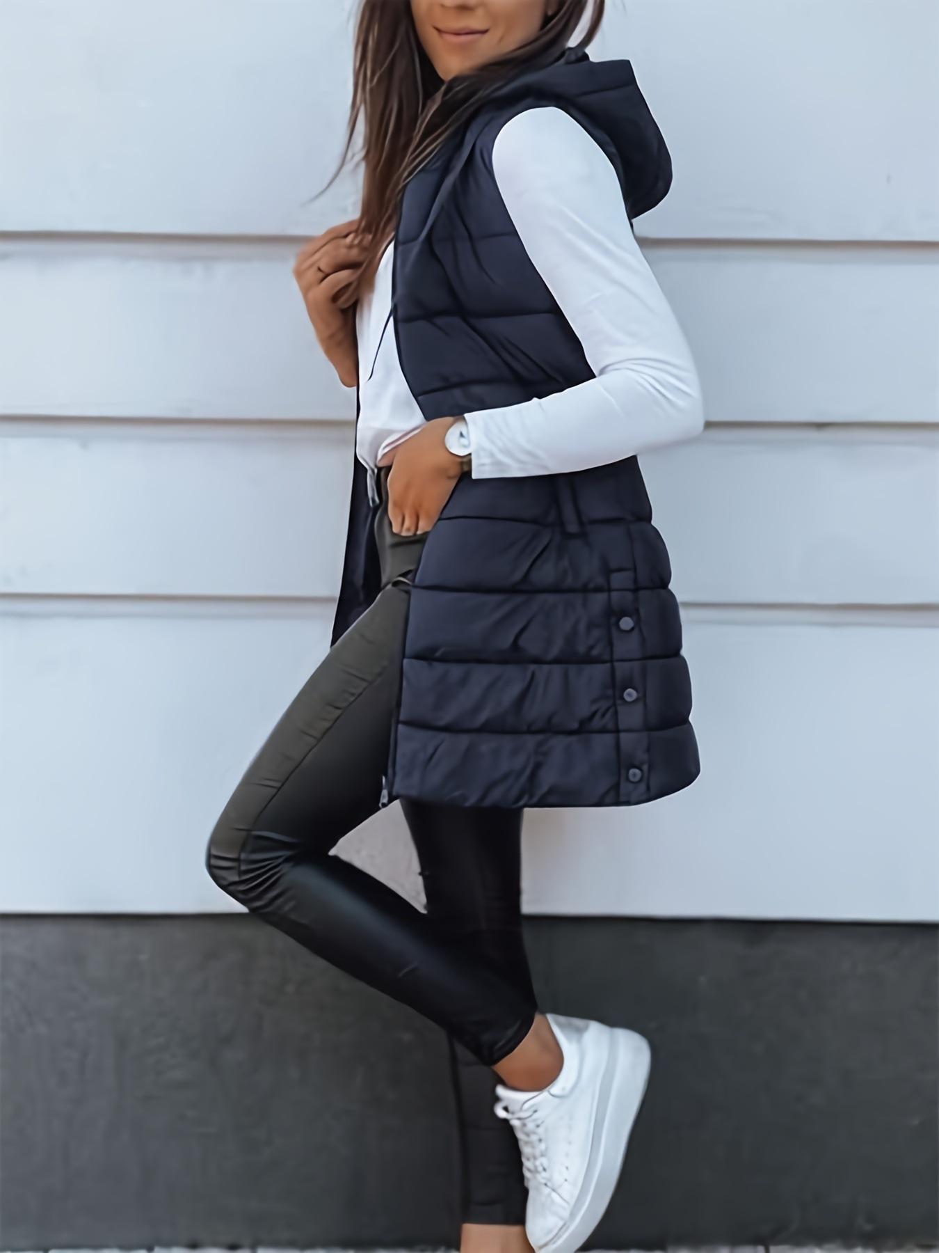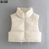 Exportación Transfronteriza Europa y Estados Unidos 2022 Amazon Chaqueta de Algodón de Color Puro con Capucha Acolchada de Algodón de Longitud Media Cremallera Chaleco de Algodón Chaqueta para Mujer
