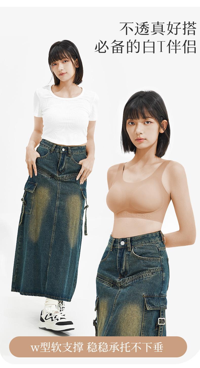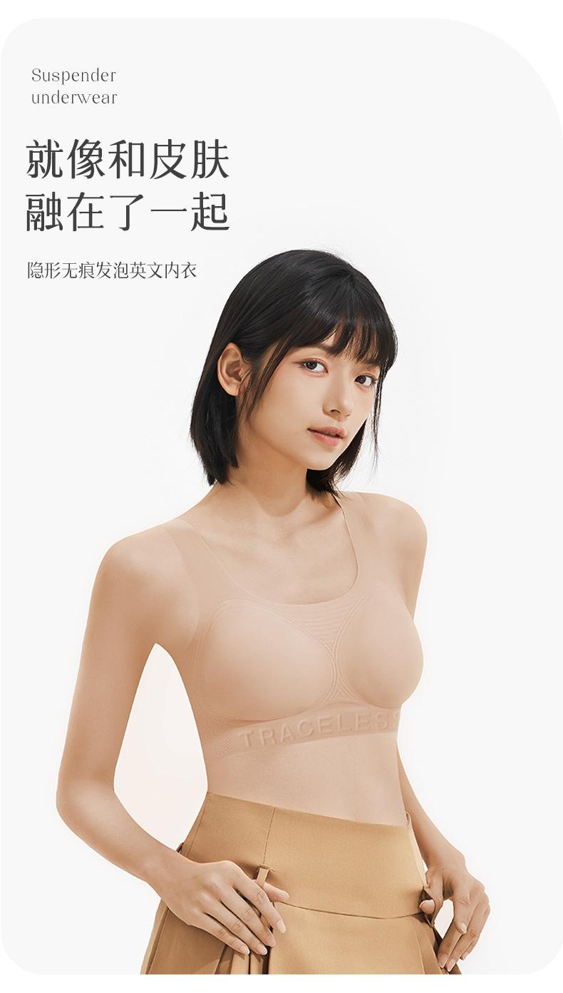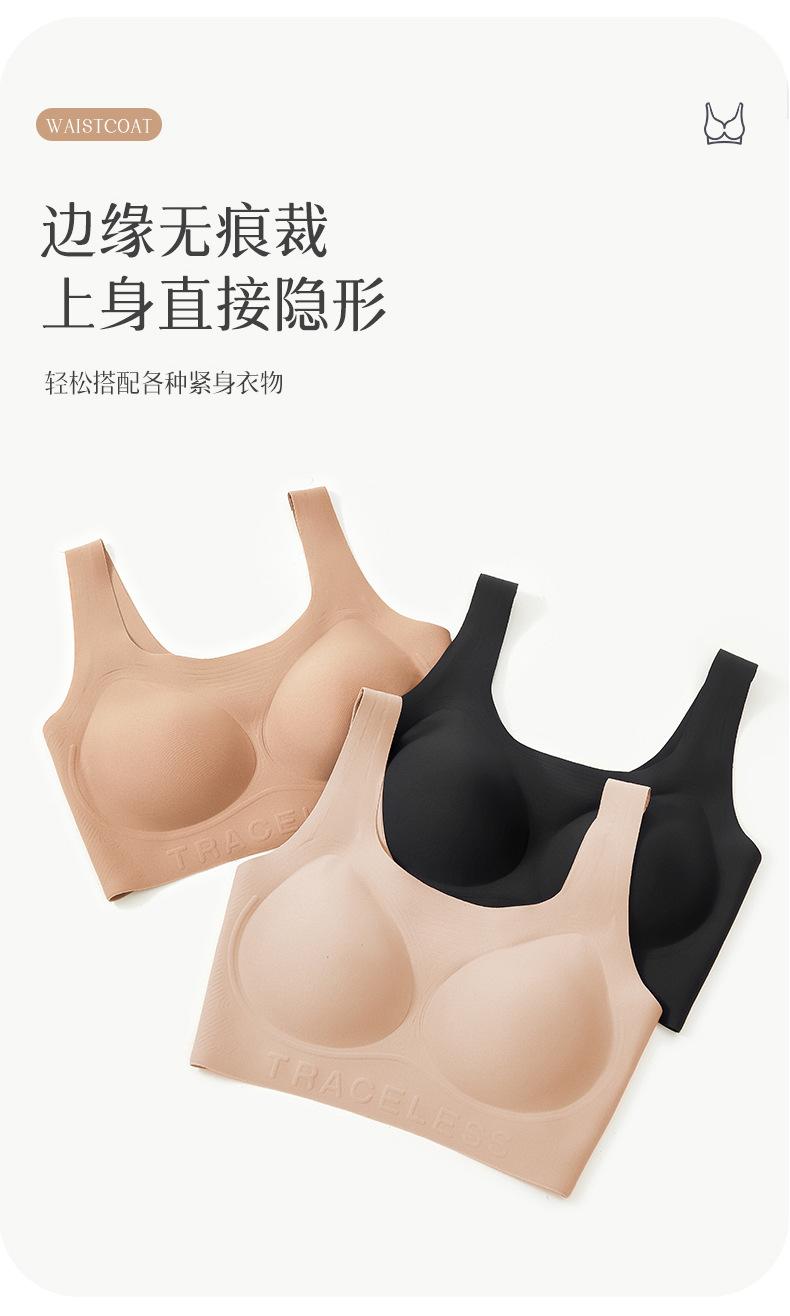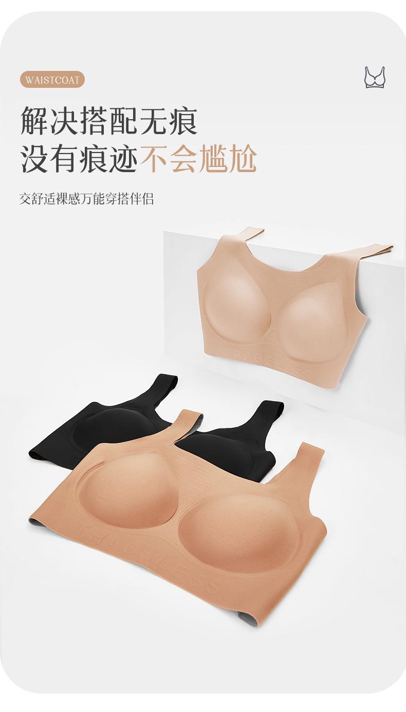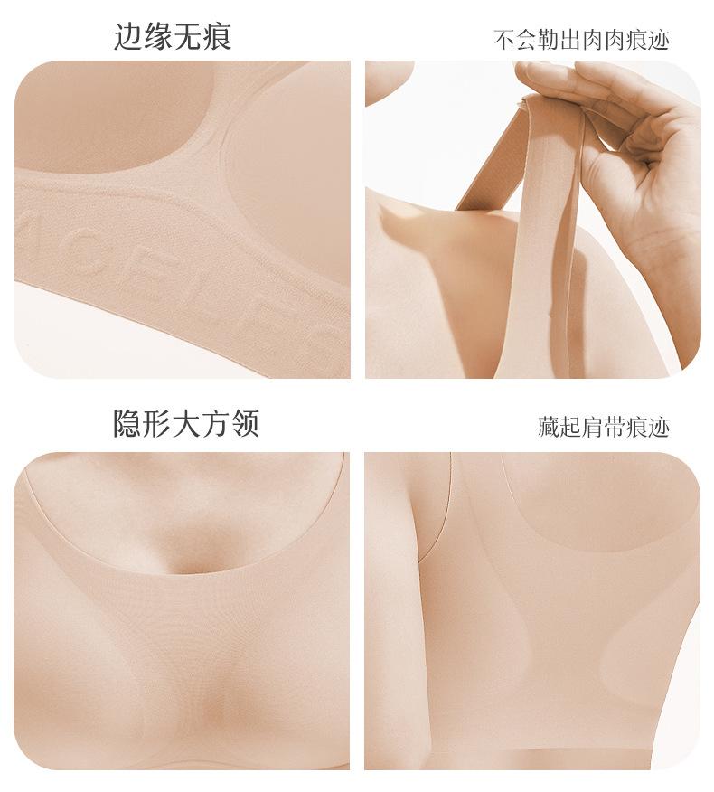 Ropa interior invisible con base líquida sin costuras para otoño e invierno, sujetador push-up integrado antiflacidez para mujer con letras pequeñas y pecho grande