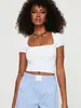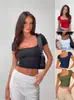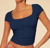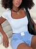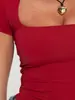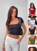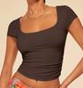 Camiseta informal de verano de manga corta con cuello cuadrado, ajustada, de color sólido, estilo europeo y americano, de Amazon y eBay, novedad de 2024