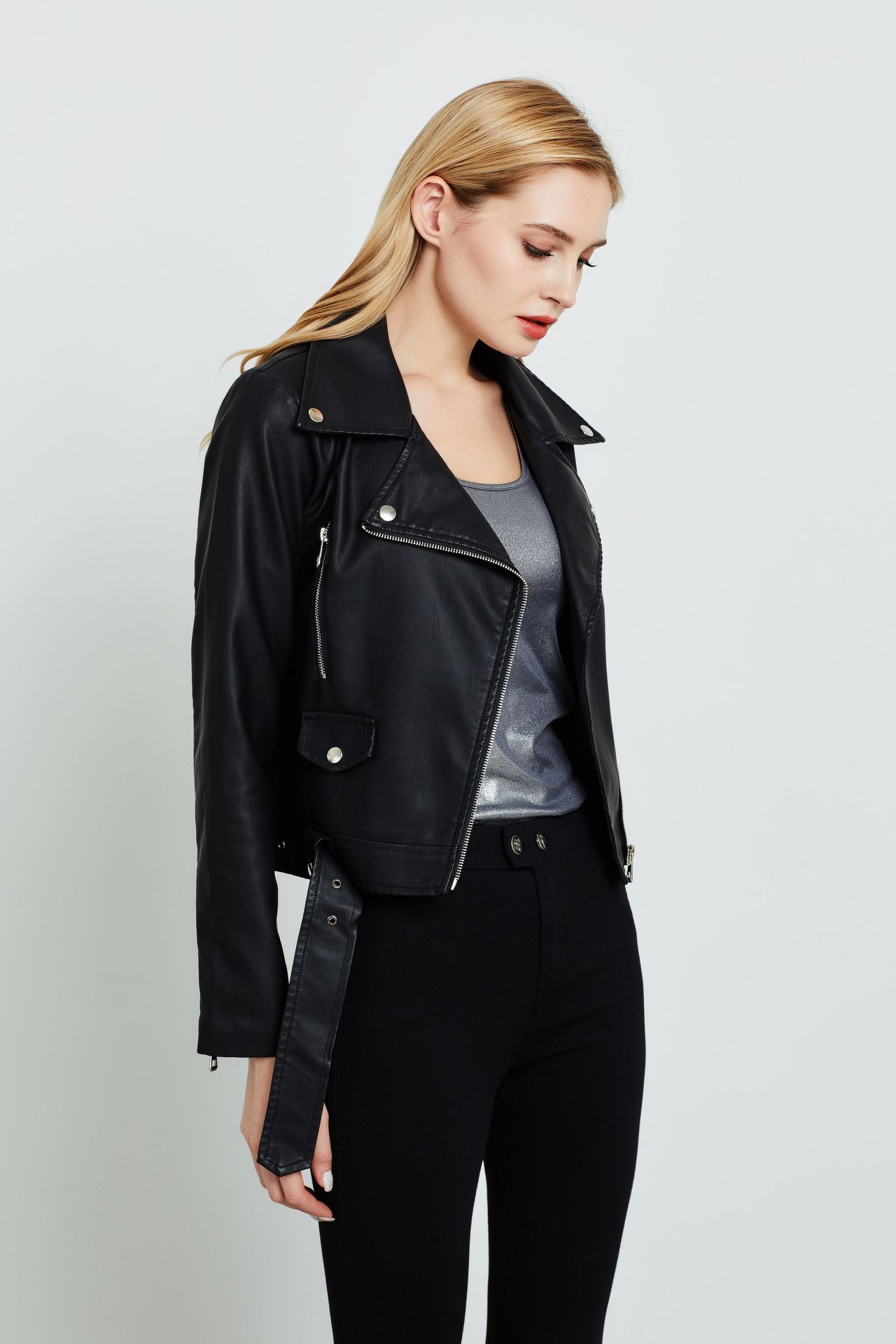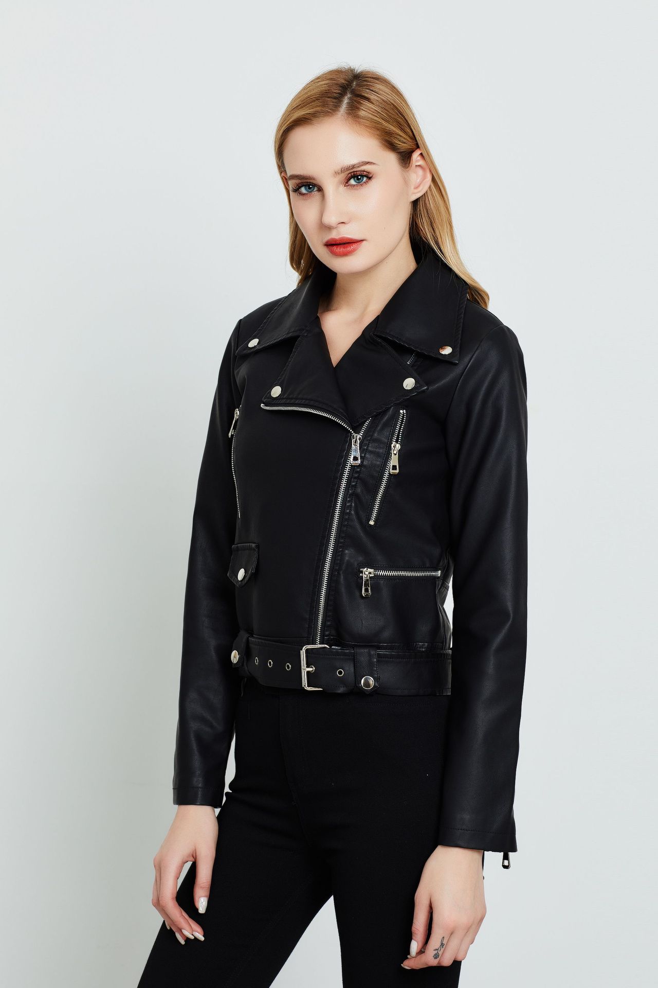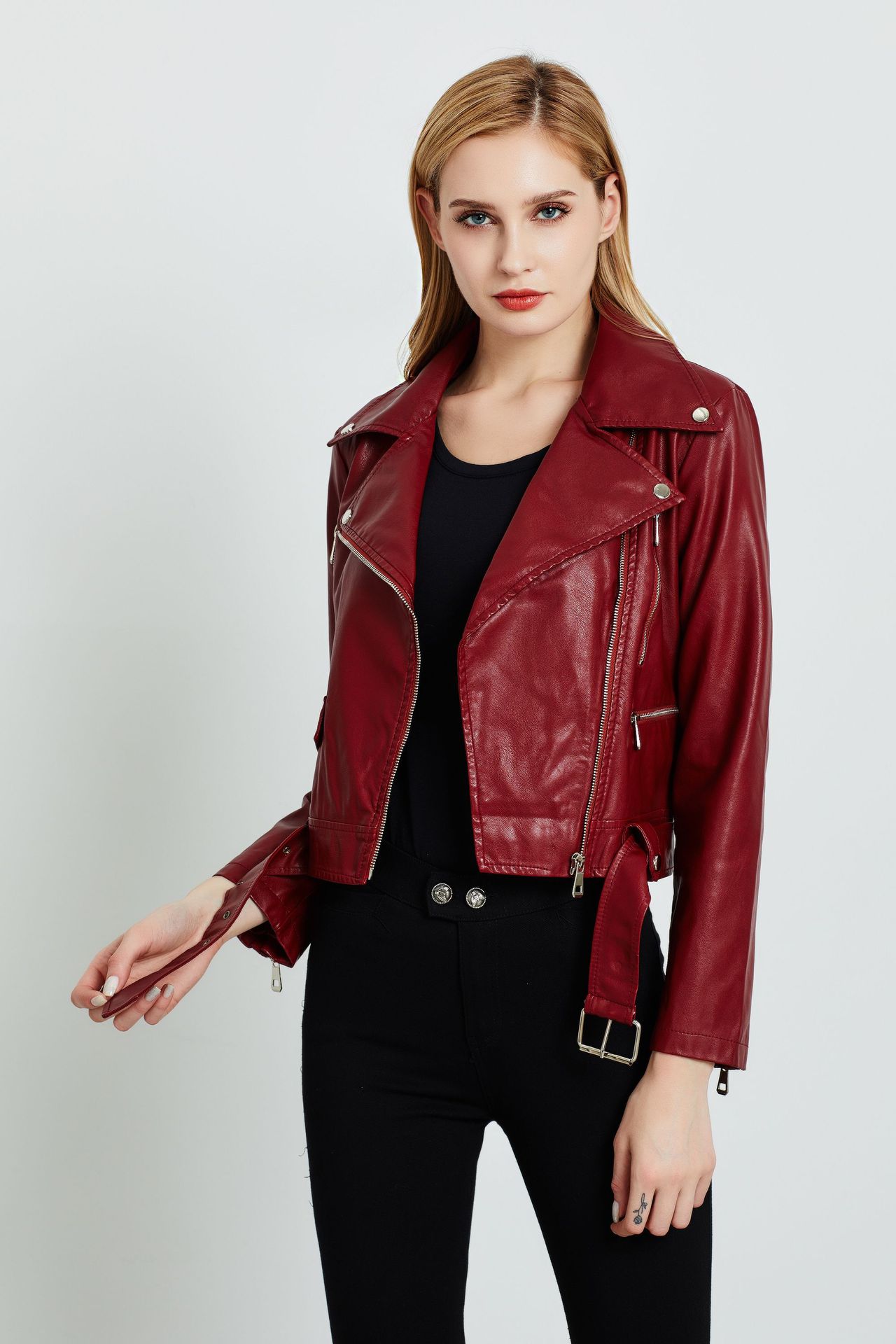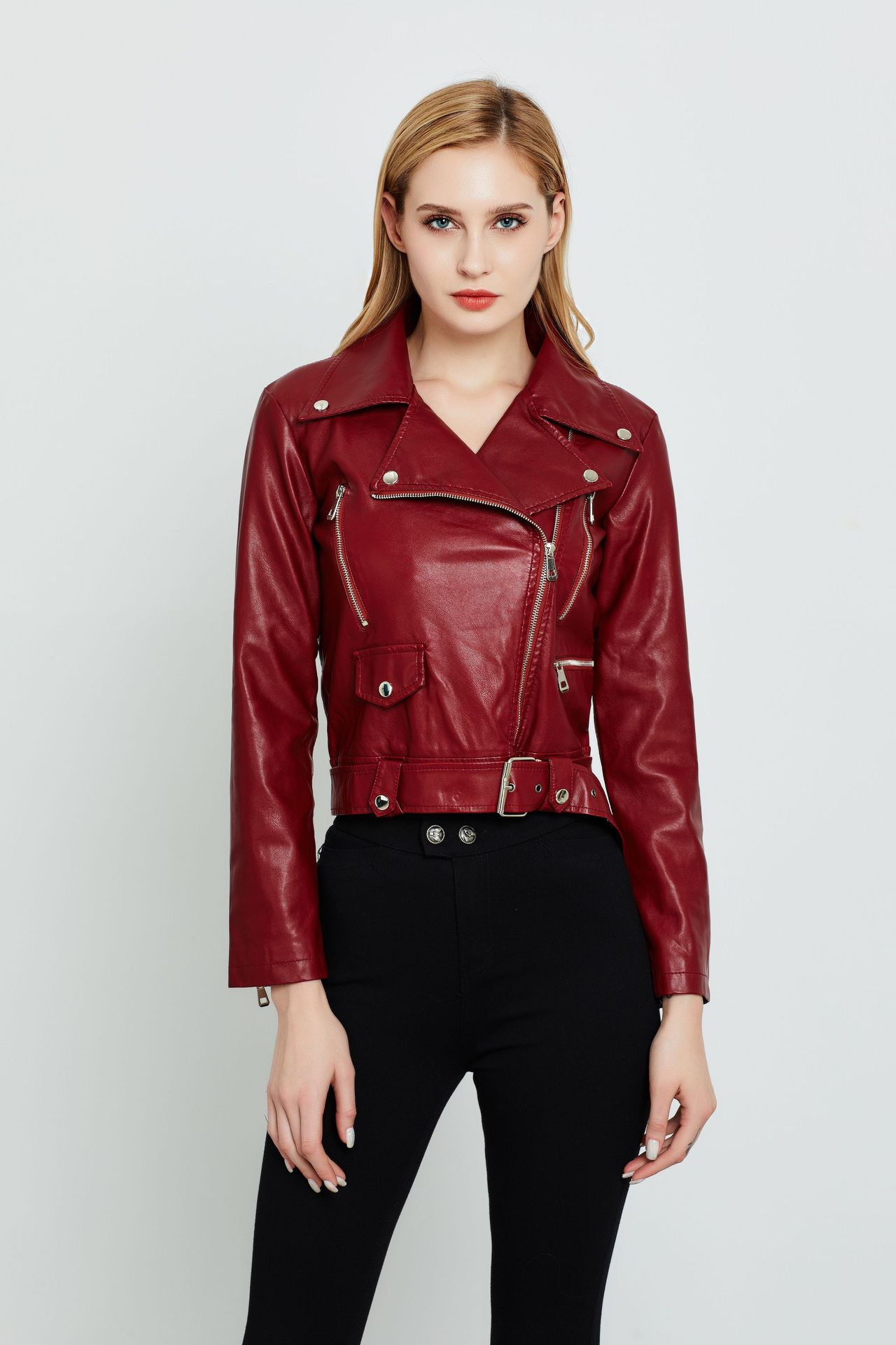 Pedido Mínimo de Una Pieza Chaqueta de Talla Grande Amazon Estilo Europeo y Americano Chaqueta Corta de Cuero para Mujer en Stock Moda de Estilo Europeo y Americano en Tendencia