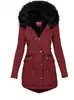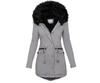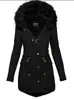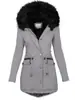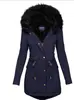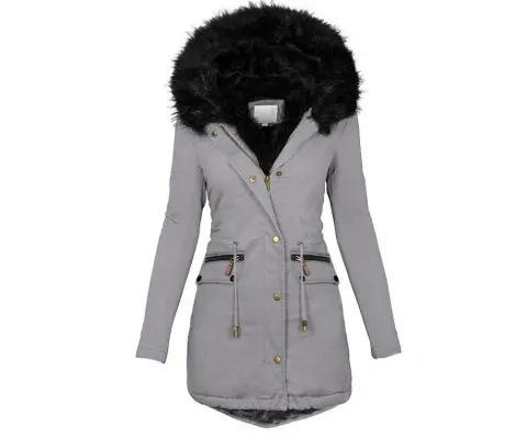 Deseo transfronterizo Amazon Ropa de mujer europea y americana de otoño e invierno de color sólido con cuello de piel con capucha de longitud media gruesa cálida con relleno de algodón