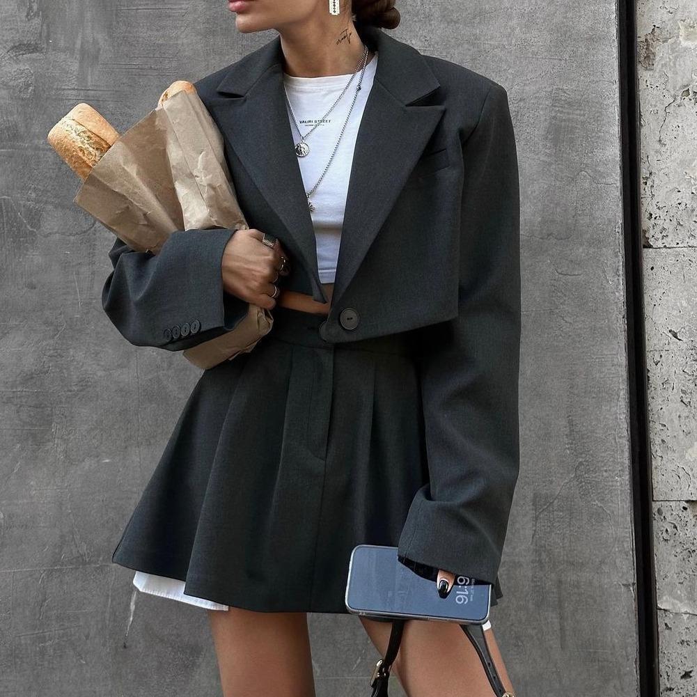 Traje falso de estilo ins de comercio exterior europeo y americano 2023, nuevo de otoño, moda, cintura alta, adelgazante, temperamento, traje de dos piezas