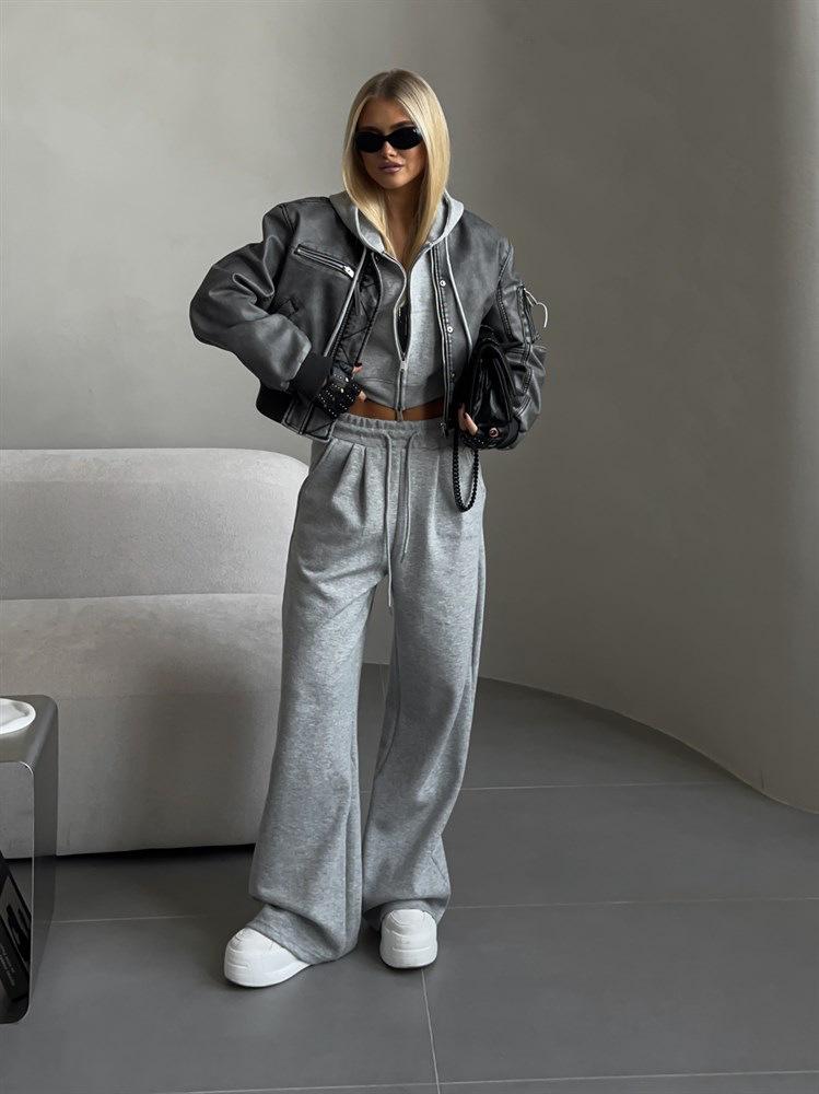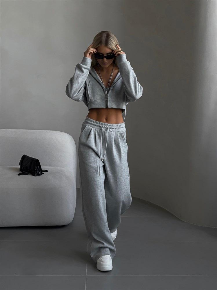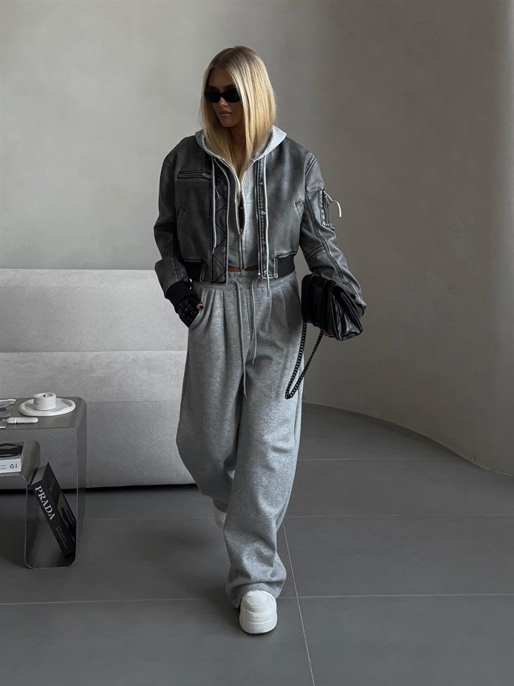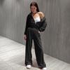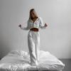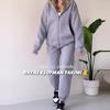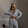 Traje Casual Nuevo Europeo y Americano para Mujer Color Sólido Cárdigan Corto sin Cintura con Capucha Pantalones Deportivos con Cordones Conjunto de Dos Piezas