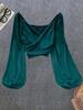 Camisa de manga larga con cuello en V, plisada y abullonada, estilo chic y elegante para mujer, estilo primaveral