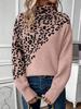 Otoño e invierno comercio exterior nuevo suéter de punto Amazon transfronterizo cuello alto estampado de leopardo manga larga suelto moda casual suéter