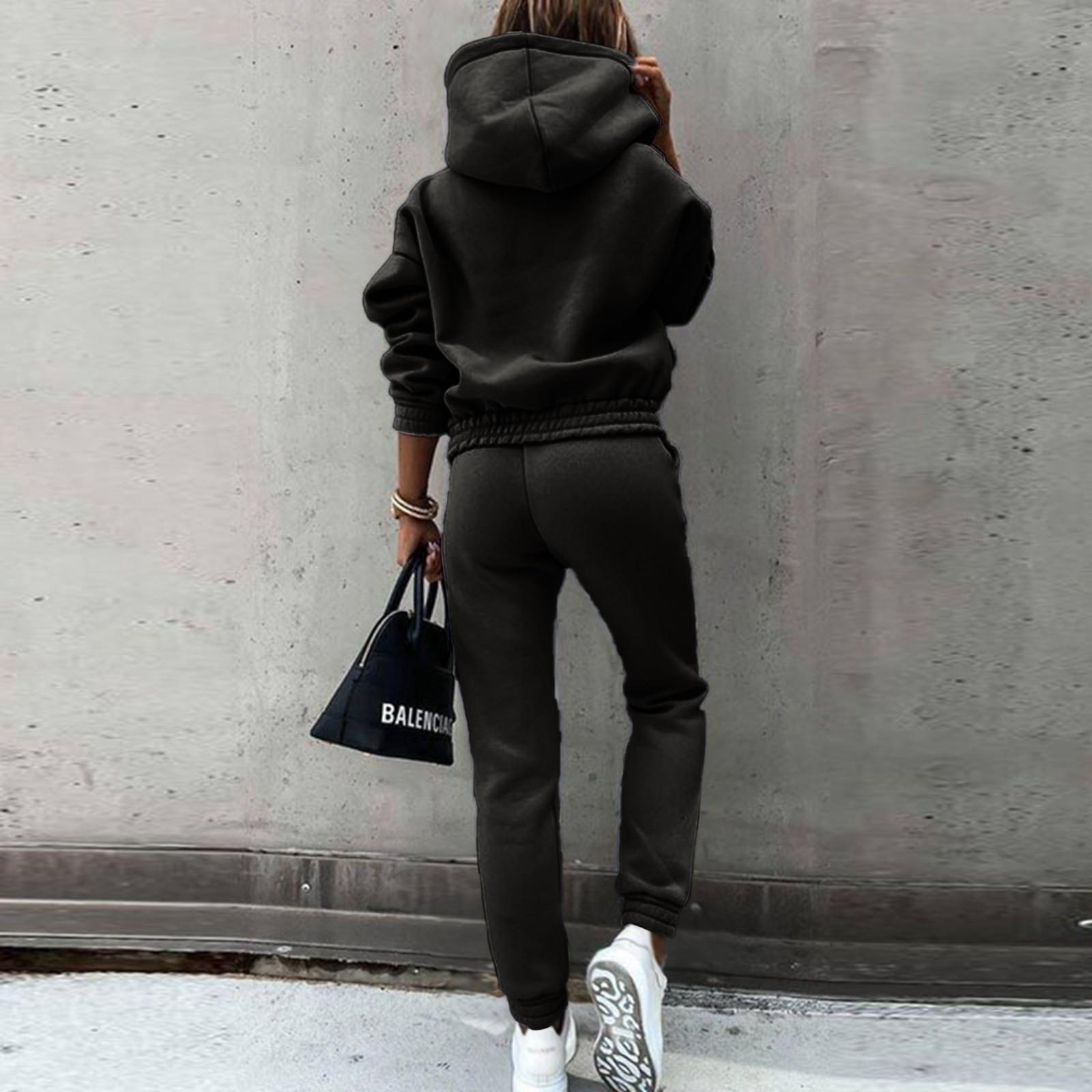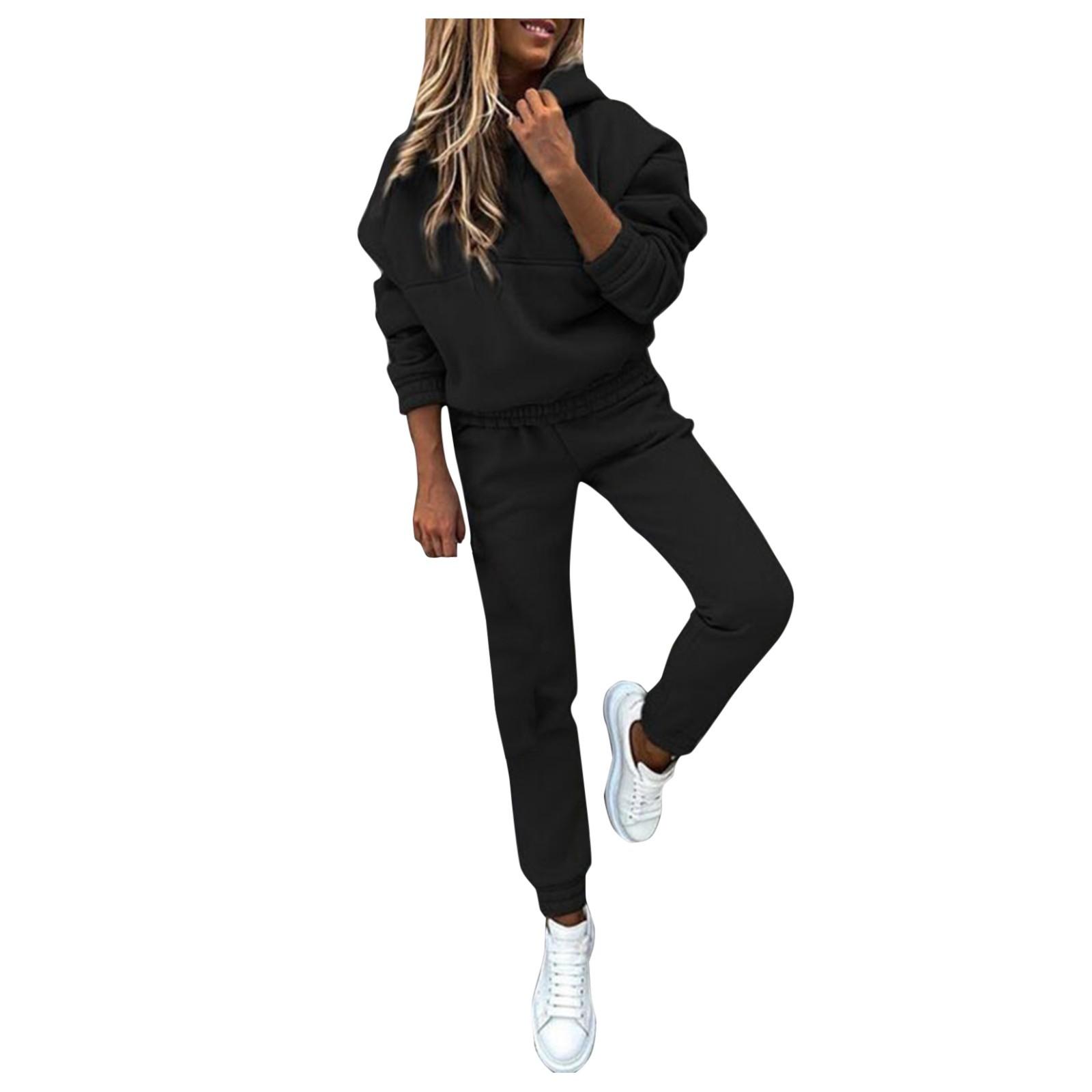 Comercio exterior europeo y americano 2021 otoño e invierno nuevo color sólido deportes con capucha suéter de manga larga pantalones deportivos conjunto de dos piezas